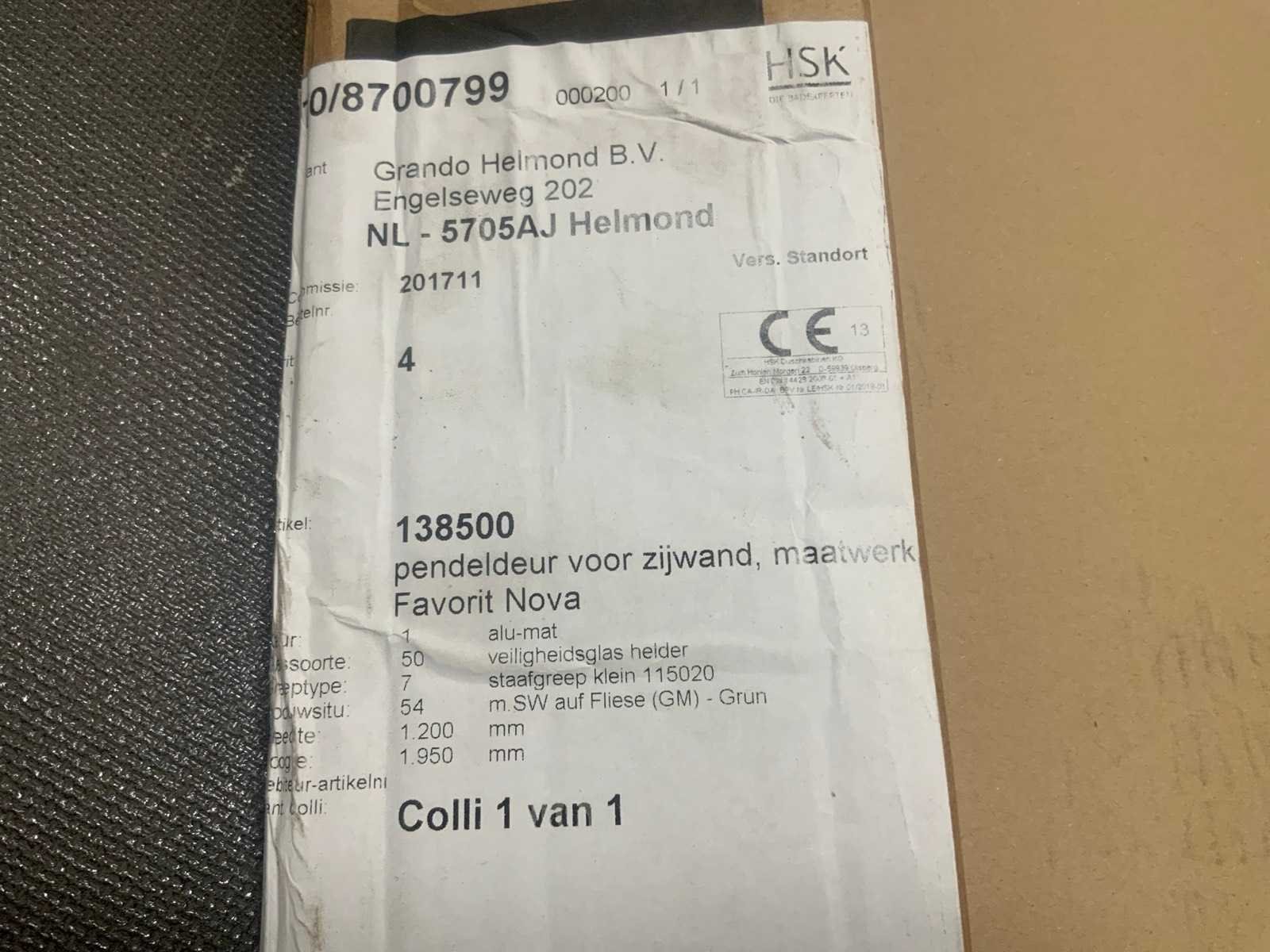 Hsk - favorit nova - pendeldeur voor zijwand 120 x 195 cm