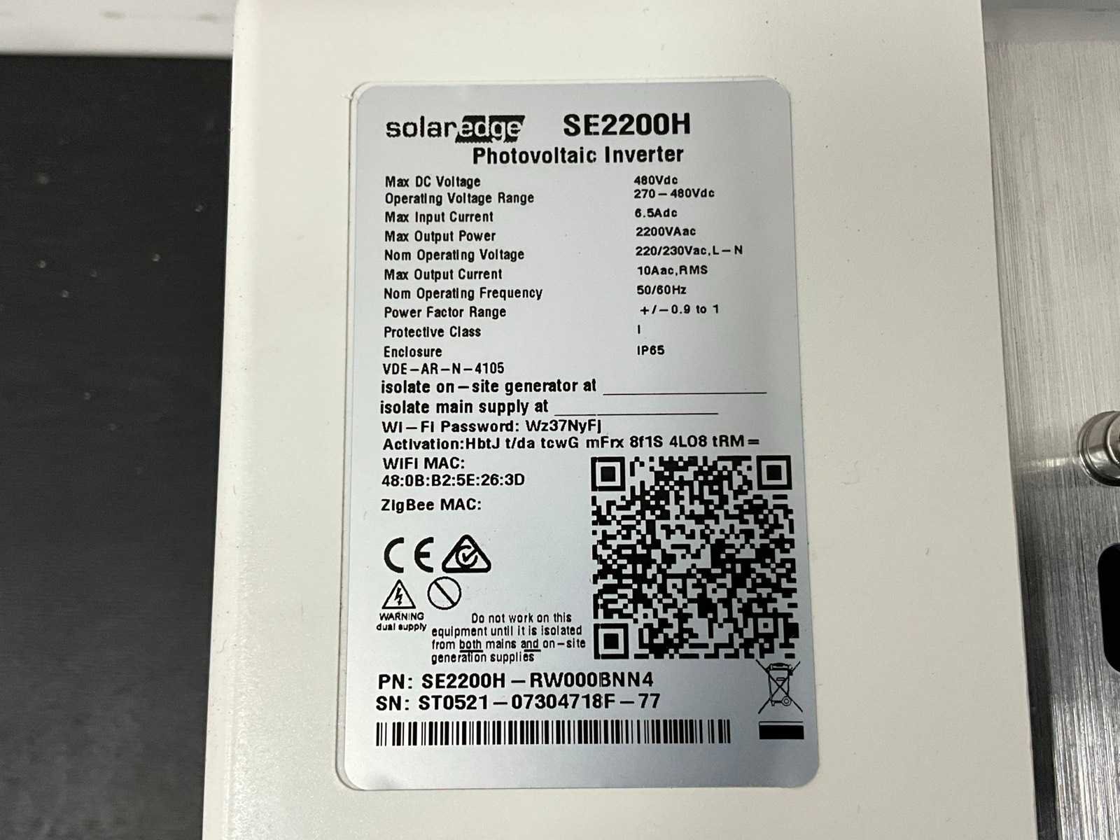 Merk: Solaredge Type: SE2200H Totale afmeting L: 370mm Totale afmeting Breedte: 290mm Totale afmeting Hoogte: 135mm