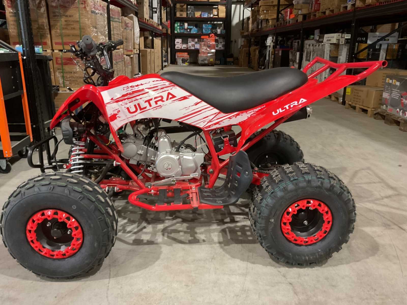Voorzien van elektrische start; 4 takt; 125 cc; hydraulische schijfremmen; bandenmaat 8” inch; LCD scherm; 2 sleutels; ongebruikt in krat (transport afmetingen 145x90x65 cm 120kg) Merk: Ultra Motocross Model: Miniraptor125 Product type: ATX 125 Raptor RD Gewicht: 105kg Transmissie: Semi automaat Bouwjaar: 2025 Vermogen (pk): 9hp Cilinderinhoud: 125cc Kleur: Rood