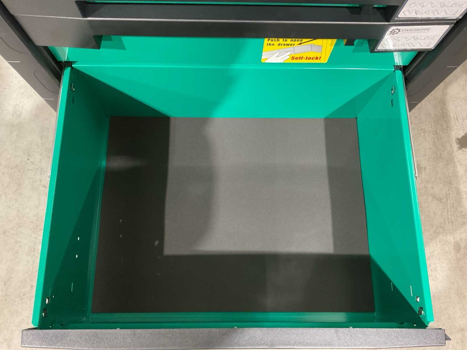 Voorzien van 7 lades waarvan 5 gevuld met gereedschap; professioneel chroom-vanadium gereedschap; heavy duty gereedschapswagen; stevig werkblad; 4 wielen; stevig handvat; ongebruikt in doos (transport afmetingen 80x50x105 cm) Merk: Stahlgruppe Type: SG9 Bouwjaar: 2025 Aantal laden: 7 Met inhoud: true Eigen gewicht: 78kg Totale afmeting L: 800mm Totale afmeting Breedte: 500mm Totale afmeting Hoogte: 1050mm