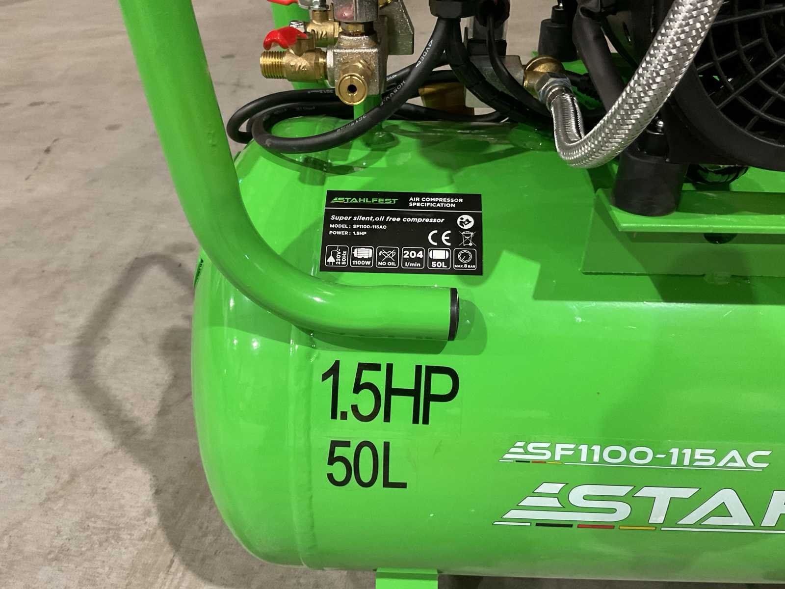 Voorzien van 1400R/min; 68db; ongebruikt in doos Merk: Stahlfest Type: 50L Bouwjaar: 2025 Capaciteit.: 8bar Luchtstroom: 204l/min Buffertank inhoud: 50l Aansluiting: 230V Eigen gewicht: 35kg Totale afmeting L: 700mm Totale afmeting Breedte: 350mm Totale afmeting Hoogte: 600mm