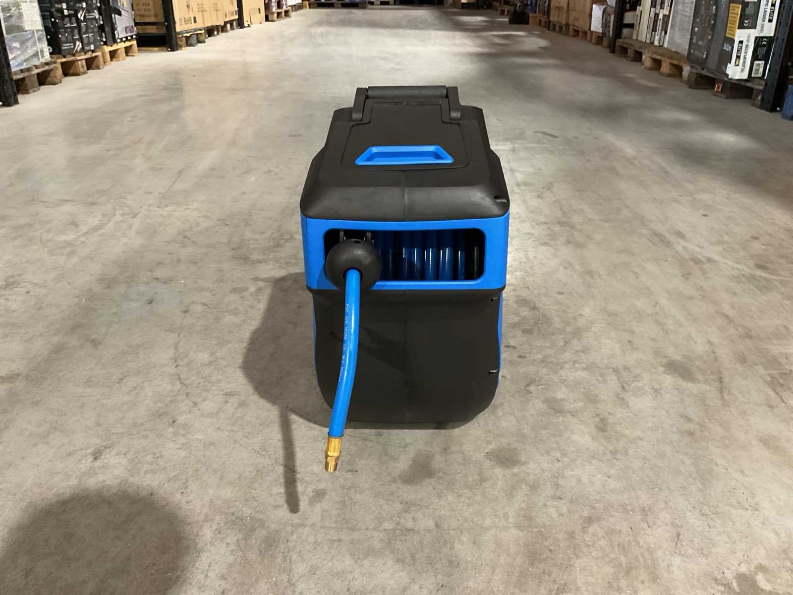 Voorzien van 30meter + 2meter slang / slang maat 3/8” / Fitting 1/4” bspt / werkdruk 250psi Merk: Schwartzmann Model: Automatische slang haspel Gewicht: 15.3kg Lengte: 54cm Breedte: 29cm Hoogte: 50.5cm Materiaal: PVC