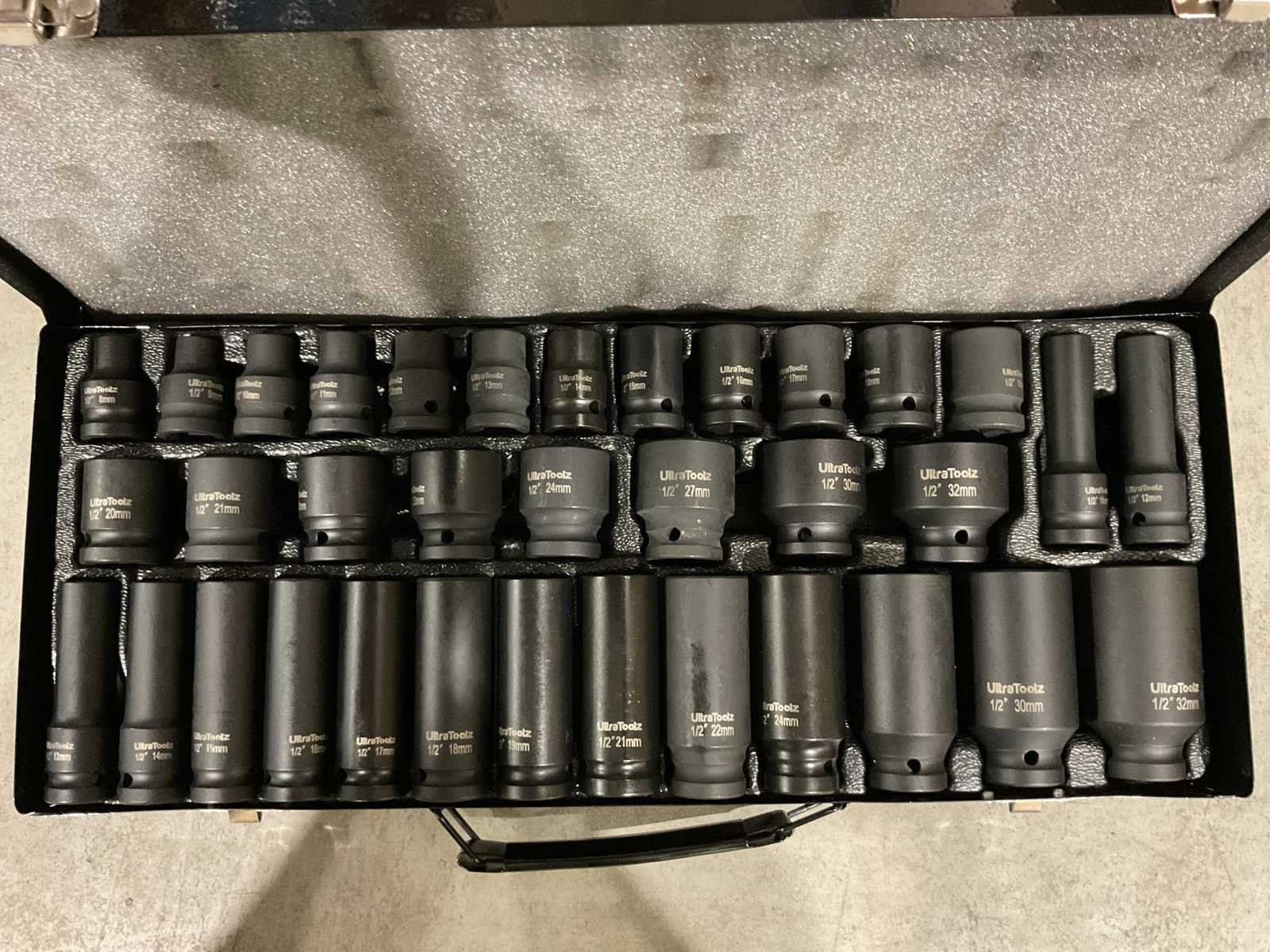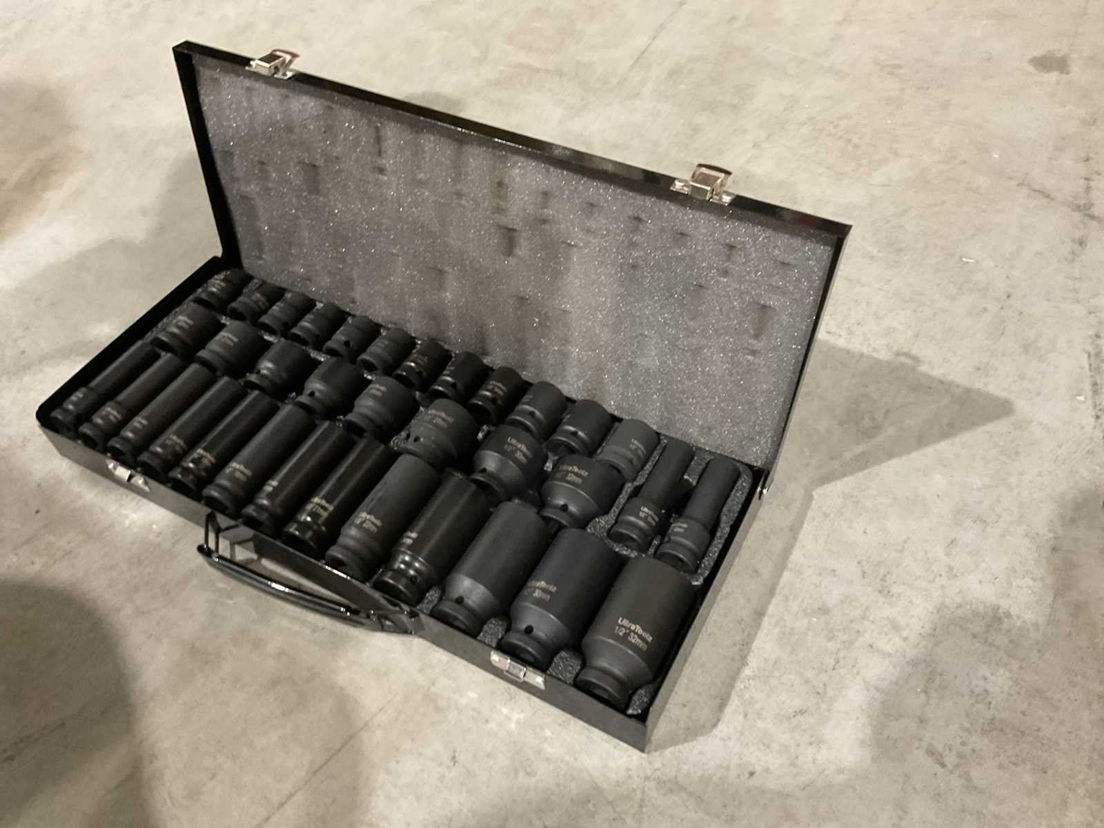 Voorzien van 20 korte doppen 8-9-10-11-12-13-14-15-16-17-18-19-20-21-22-23-24-27-30-32 mm; 15 lange doppen 10-12-13-14-15-16-17-18-19-21-22-24-27-30-32 mm; ongebruikt in doos (transport afmetingen 45x20x10 cm, gewicht 7 kg) Merk: UltraToolz Delig: 35 Opname “: 1/2'' Type: 35 pcs Bouwjaar: 2025