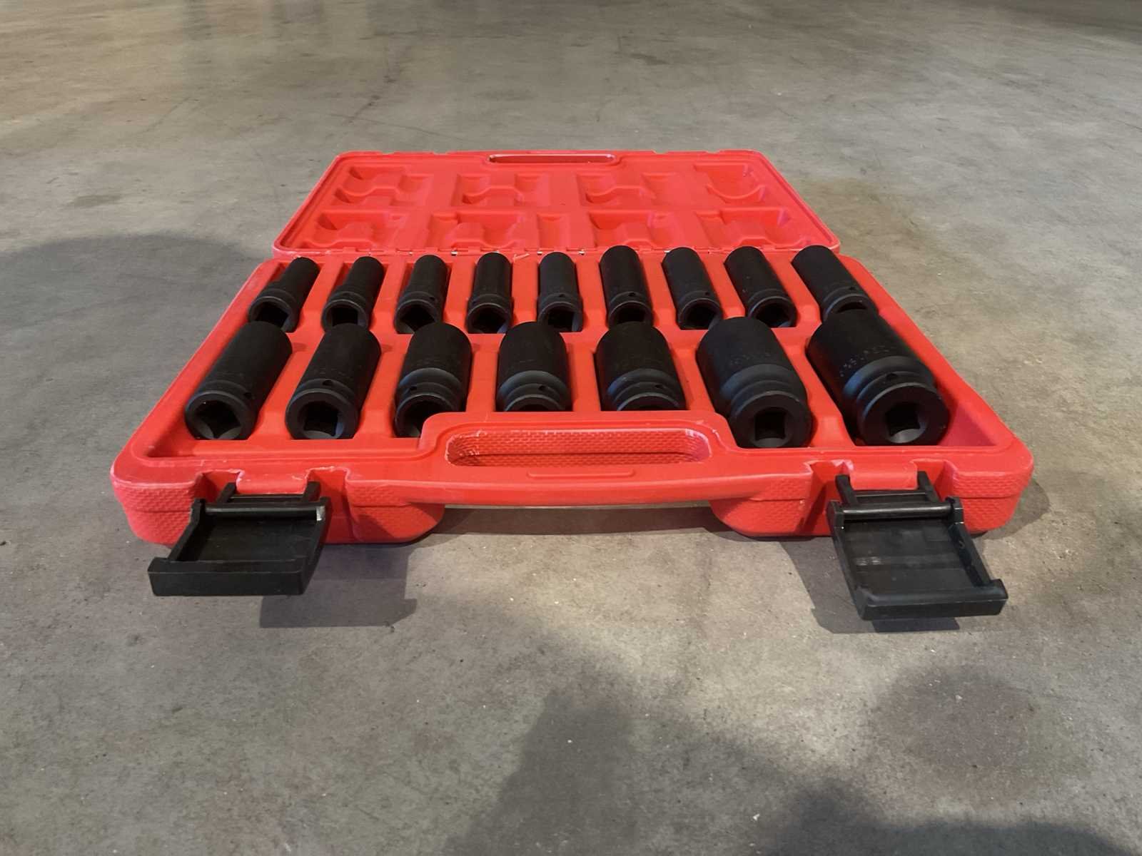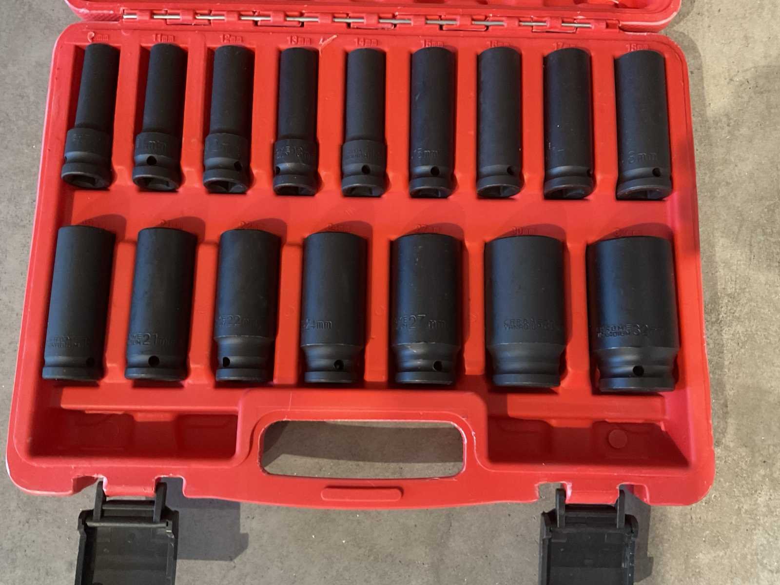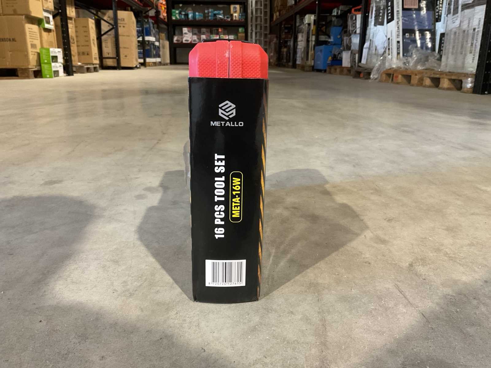 Voorzien van kunststof opbergkoffer; 16-delig; Maten: 10-11-12-13-14-15-16-17-18-19-21-22-24-27-30-32 mm; Ongebruikt in verpakking (Transport Afmetingen 350 x 75 x 270, Gewicht 44 kg ) Merk: Metallo Met koffer: true Delig: 16 Krachtdop uitvoering: true Type: META-16W Bouwjaar: 2025