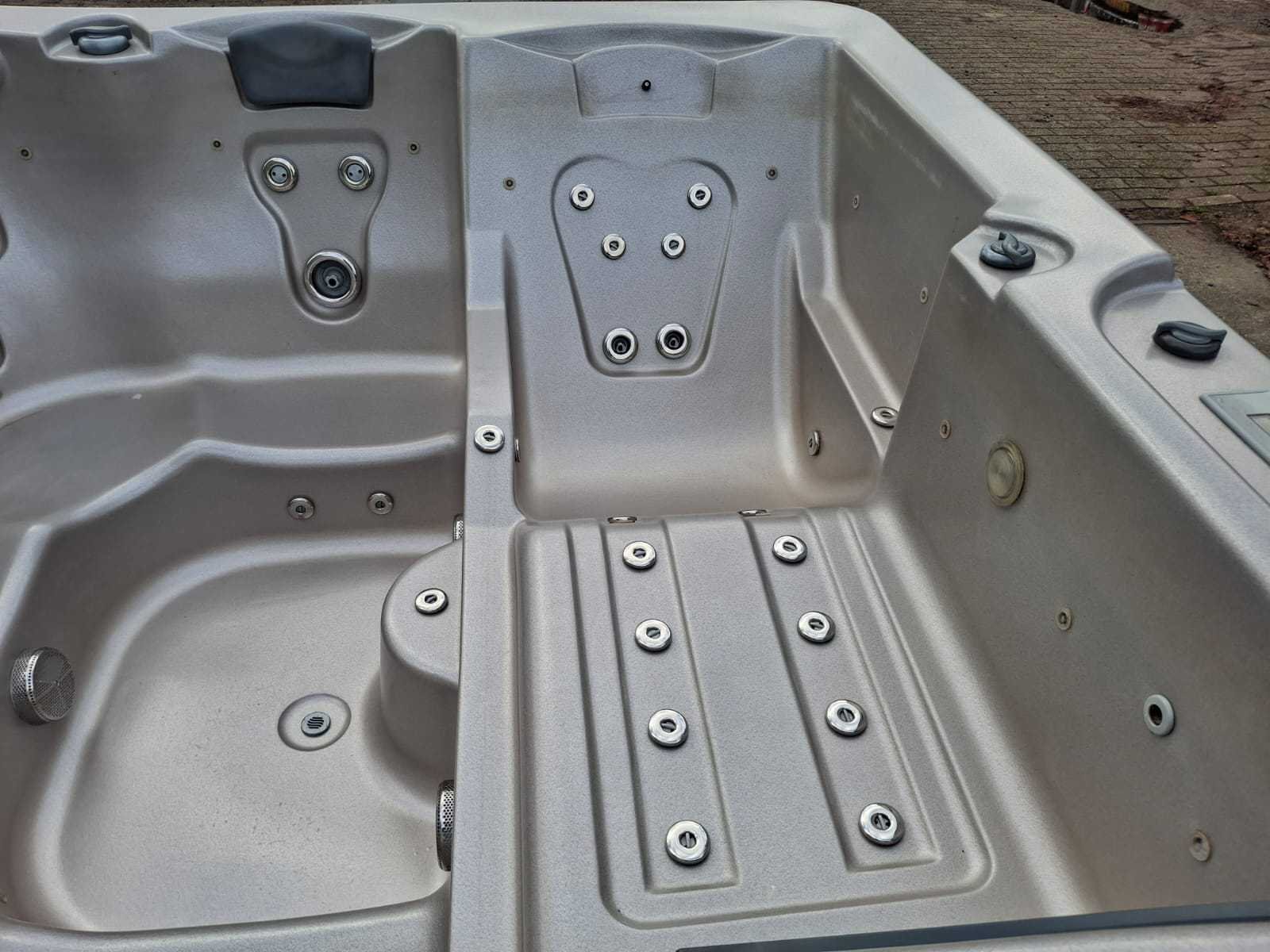 Voorzien van 5 zitplaatsen; 1 ligplaats; nek/schouder massage; Amerikaanse jacuzzi; Niet getest op functioneren (Marge, geen BTW) Merk: 4 season Model: 6 persoons Verlichting: Ja Jets: 55 Aantal personen: 6 Lengte: 240cm Breedte: 240cm Hoogte: 103cm