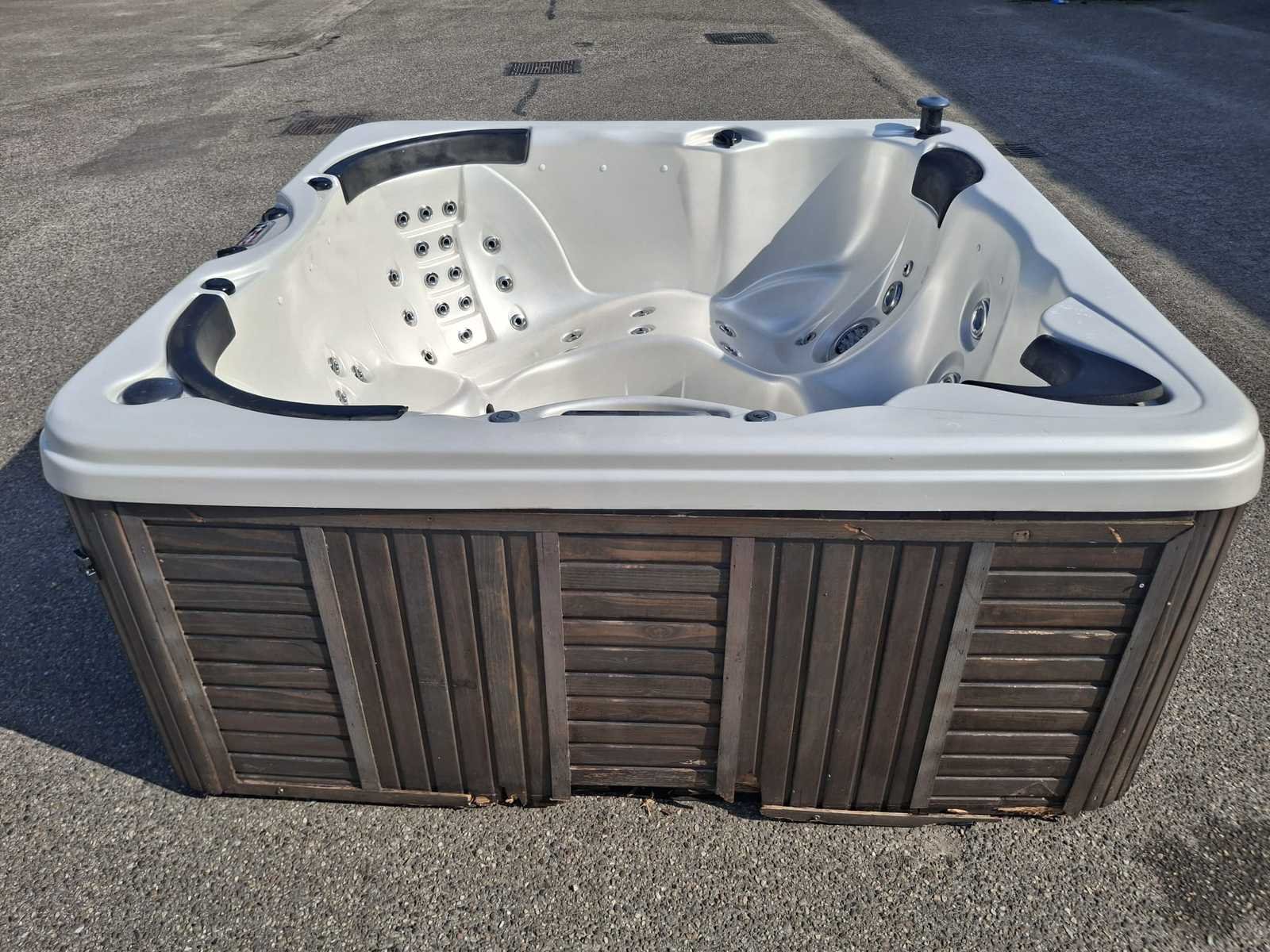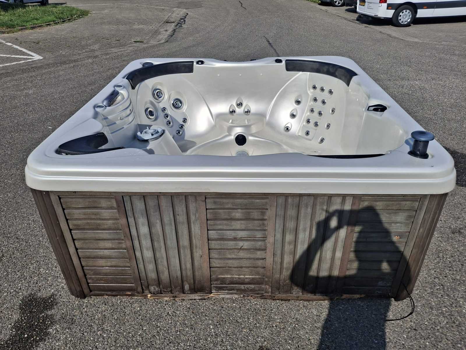 Voorzien van 57 massage jets; speakers; waterval; led verlichting in alle kleuren; automatisch filtersysteem; hoofdkussens; niet getest op functioneren (Marge, geen BTW) Merk: Platinum Spa USA Model: 5 persoons Product type: Amerikaans Verlichting: Ja Jets: 57 Aantal personen: 5 Lengte: 210cm Breedte: 210cm Hoogte: 93cm