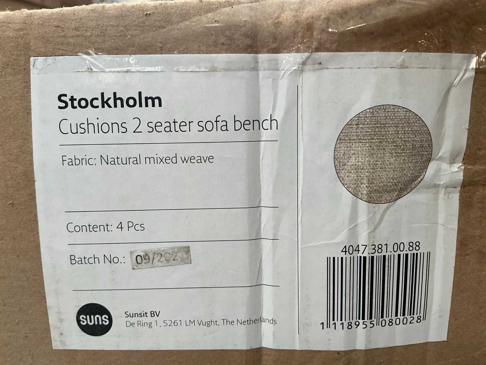 LET OP: het gaat alleen om de kussens 2 zitkussens 2 rugkussens Merk: Suns Model: Stockholm Kleur: Natural mixed weave