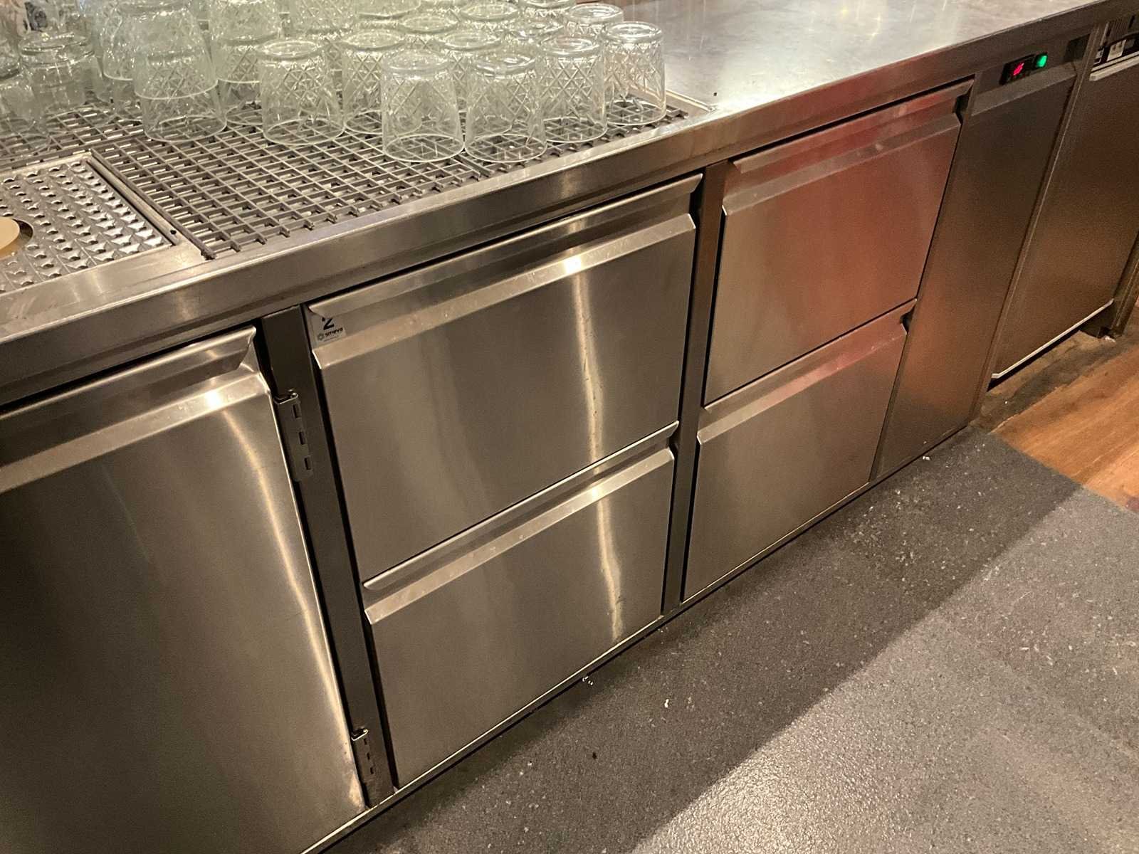 Incl. kassaschermen en bonnenprinter. Verdere inhoud behoort NIET tot de kavel. LET OP! Deze kavel maakt onderdeel uit van een combinatiekavel (kavelnummer 10) deze kavel blijft onder gunning totdat de combinatiekavel gesloten is. LET OP! Kavel betreft een apparaat wat aangesloten is op een centraal koelsysteem. Kavel heeft geen eigen koelcompressor. Het centrale koelsysteem is reeds professioneel leeg gepompt. Hiervoor zijn additionele kosten van toepassing. De koper is zelf verantwoordelijk voor het professioneel demonteren van de kavel. Kavel kan aangesloten zijn op het elektra-, water- en/of gasleidingnetwerk. Bekabeling en/of leidingen dienen netjes afgedopt en ordelijk achter gelaten te worden. Schade aan het pand of andere zaken zal op de koper worden verhaald. Wij adviseren u gebruik te maken van de kijkdag om een plan voor demontage op te stellen. Totale afmeting L: 4190mm Totale afmeting Breedte: 1050mm Totale afmeting Hoogte: 1650mm