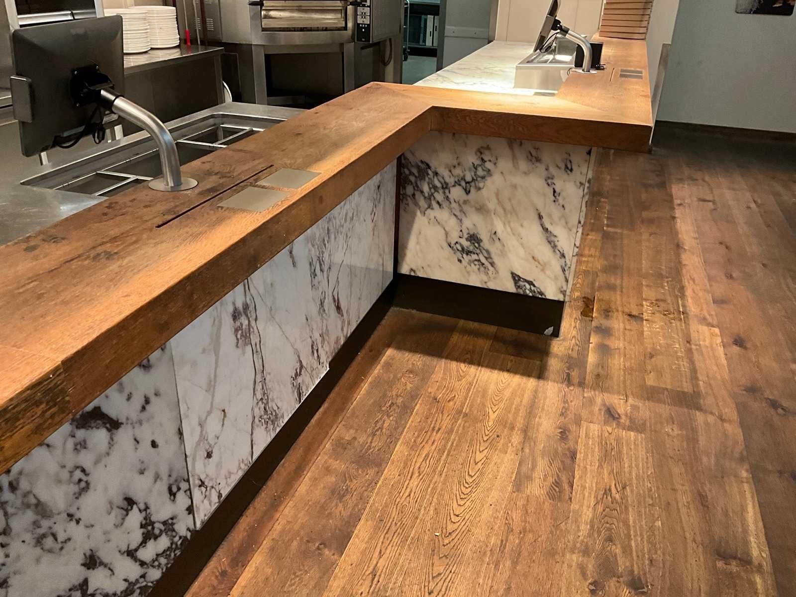 Deze kavel betreft een combinatiekavel van kavels 14 t/m 30; Voor beschrijvingen zie informatie bij desbetreffende kavelnummers. Complete frontcooking counter met barombouw, afzuiging en apparatuur. LET OP! Kavel betreft een apparaat wat aangesloten is op een centraal koelsysteem. Kavel heeft geen eigen koelcompressor. Het centrale koelsysteem is reeds professioneel leeg gepompt. Hiervoor zijn additionele kosten van toepassing. De koper is zelf verantwoordelijk voor het professioneel demonteren van de kavel. Kavel kan aangesloten zijn op het elektra-, water- en/of gasleidingnetwerk. Bekabeling en/of leidingen dienen netjes afgedopt en ordelijk achter gelaten te worden. Schade aan het pand of andere zaken zal op de koper worden verhaald. Wij adviseren u gebruik te maken van de kijkdag om een plan voor demontage op te stellen. Totale afmeting Breedte: 6780mm Totale afmeting L: 4130mm Totale afmeting Hoogte: 1040mm