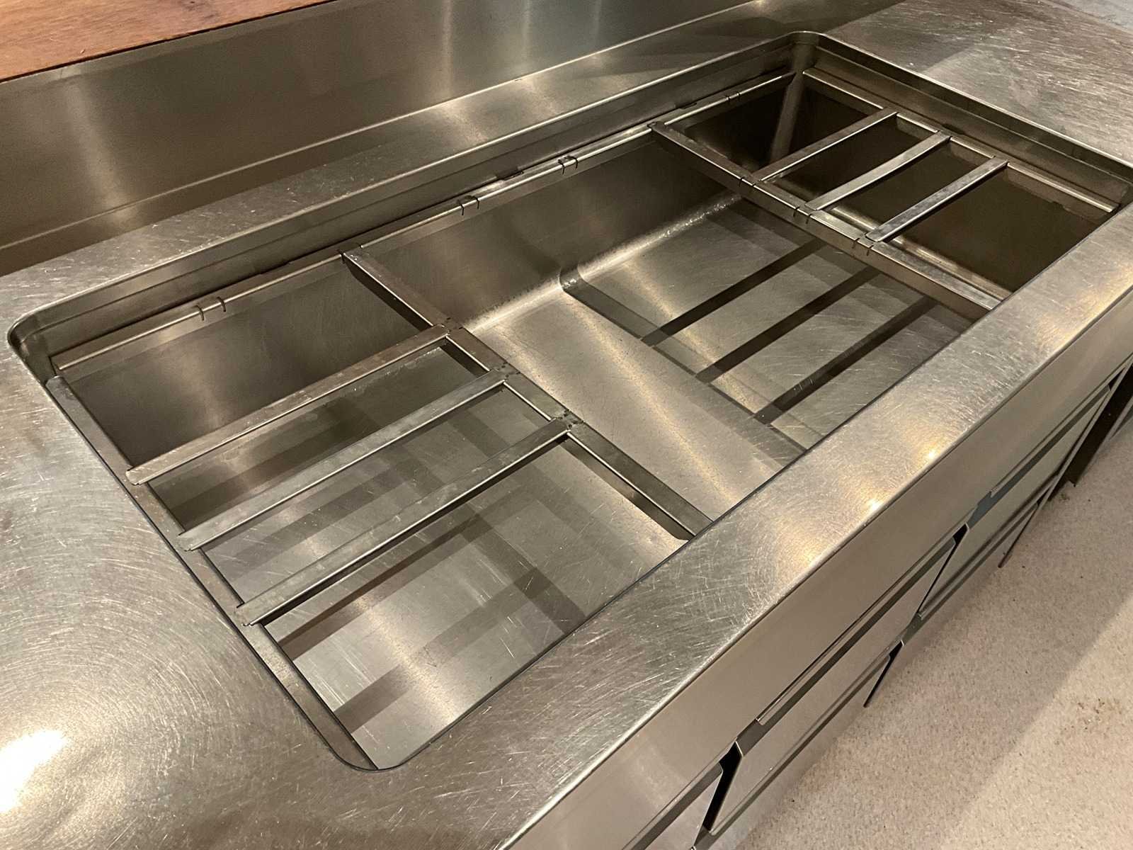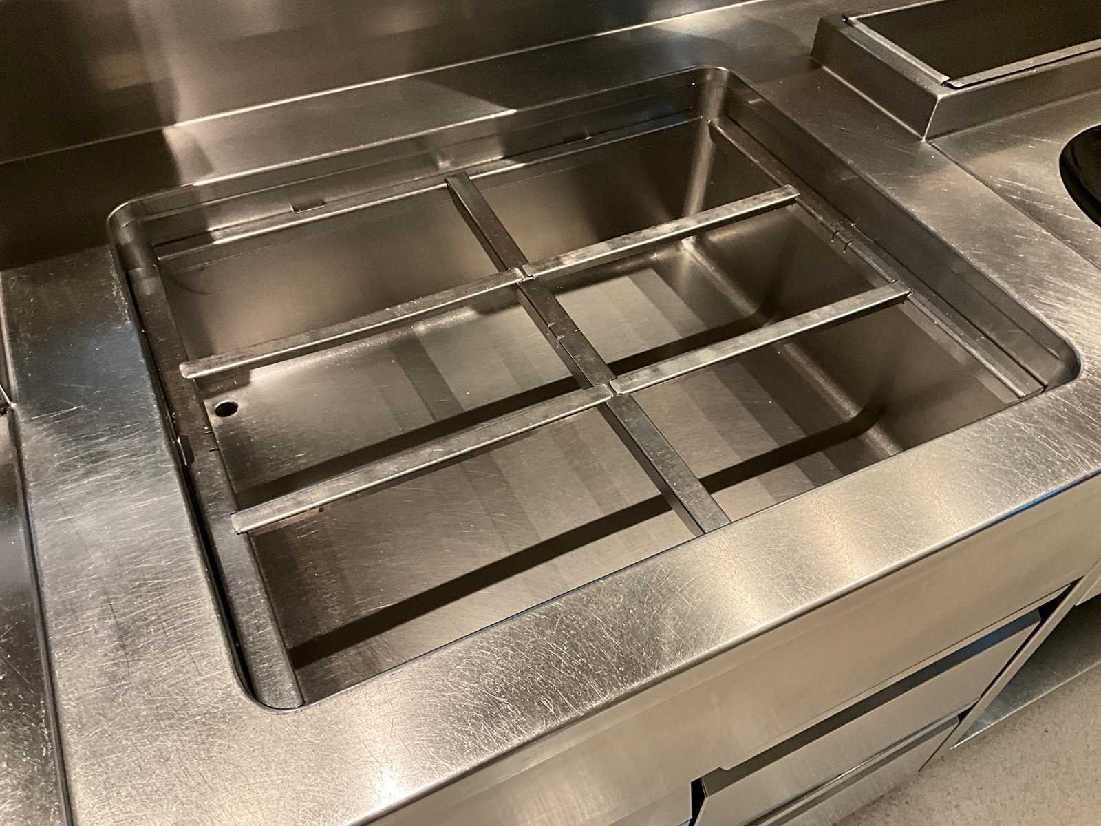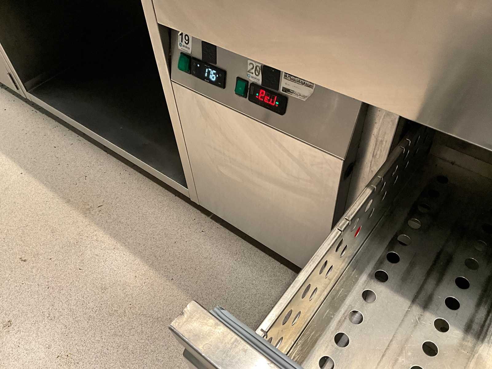 Koelwerkbanklijn met saladettes en gekoelde lades. LET OP! Pastakokers, inductiewokken en bakplaten behoren NIET tot de kavel. LET OP! Deze kavel maakt onderdeel uit van een combinatie kavel (kavelnummer 13) deze kavel blijft onder gunning totdat de combinatie kavel gesloten is. LET OP! Kavel betreft een apparaat wat aangesloten is op een centraal koelsysteem. Kavel heeft geen eigen koelcompressor. Het centrale koelsysteem is reeds professioneel leeg gepompt. Hiervoor zijn additionele kosten van toepassing. De koper is zelf verantwoordelijk voor het professioneel demonteren van de kavel. Kavel kan aangesloten zijn op het elektra-, water- en/of gasleidingnetwerk. Bekabeling en/of leidingen dienen netjes afgedopt en ordelijk achter gelaten te worden. Schade aan het pand of andere zaken zal op de koper worden verhaald. Wij adviseren u gebruik te maken van de kijkdag om een plan voor demontage op te stellen. Merk: AKE-Ideal Totale afmeting L: 1165cm Totale afmeting Breedte: 75cm Totale afmeting Hoogte: 105cm Digitale uitlezing: true Rvs: true Aantal laden: 10pcs Breedte: 75cm Hoogte: 105cm