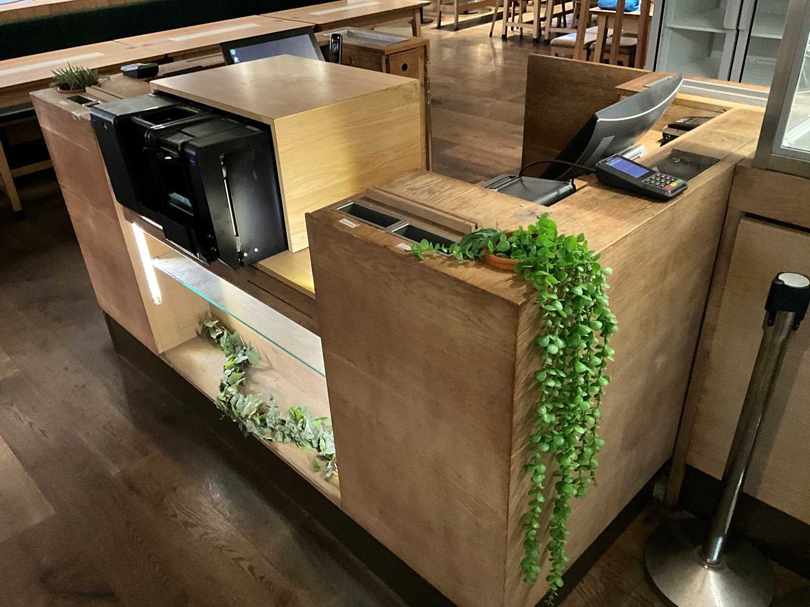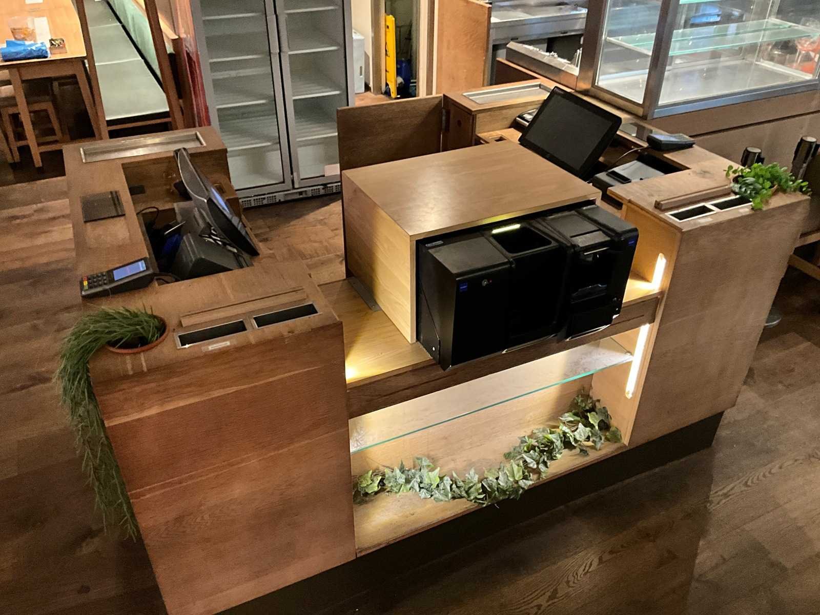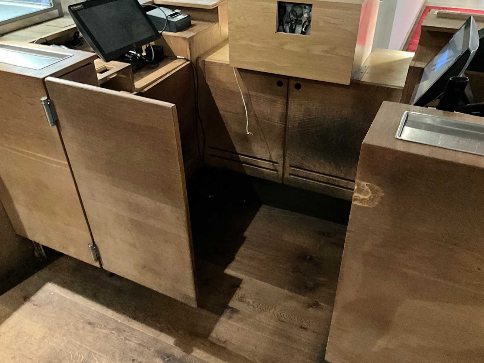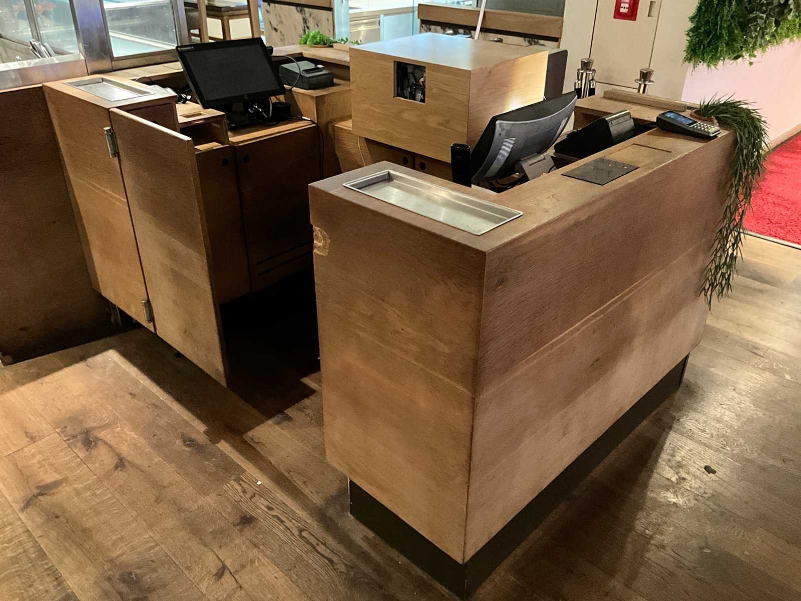 Incl. apparatuur. LET OP! het cash verwerkingsysteem en pinterminals behoren NIET tot de kavel. De koper is zelf verantwoordelijk voor het professioneel demonteren van de kavel. Kavel kan aangesloten zijn op het elektra-, water- en/of gasleidingnetwerk. Bekabeling en/of leidingen dienen netjes afgedopt en ordelijk achter gelaten te worden. Schade aan het pand of andere zaken zal op de koper worden verhaald. Wij adviseren u gebruik te maken van de kijkdag om een plan voor demontage op te stellen. Totale afmeting L: 2000mm Totale afmeting Breedte: 1400mm Totale afmeting Hoogte: 1050mm Hout: true