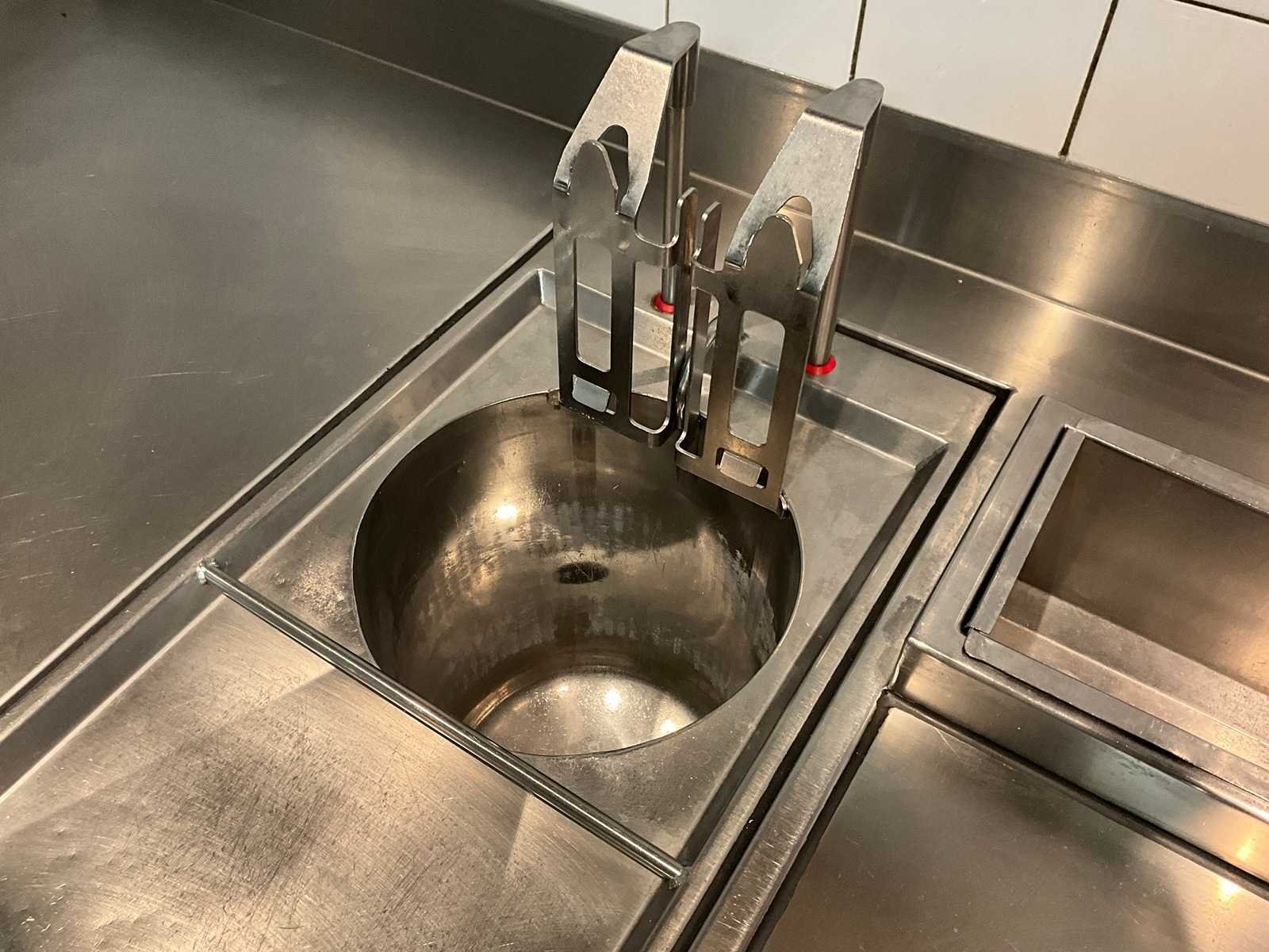 Aansluitwaarde 400V. V.v. elektronisch liftsysteem. LET OP! Deze kavel maakt onderdeel uit van een combinatie kavel (kavel 123). De kavel blijft onder gunning totdat de combinatie kavel gesloten is. De koper is zelf verantwoordelijk voor het professioneel demonteren van de kavel. Kavel kan aangesloten zijn op het elektra-, water- en/of gasleidingnetwerk. Bekabeling en/of leidingen dienen netjes afgedopt en ordelijk achter gelaten te worden. Schade aan het pand of andere zaken zal op de koper worden verhaald. Wij adviseren u gebruik te maken van de kijkdag om een plan voor demontage op te stellen. Merk: Franke Model: Frontline Totale afmeting Breedte: 650mm Totale afmeting L: 350mm Totale afmeting Hoogte: 850mm