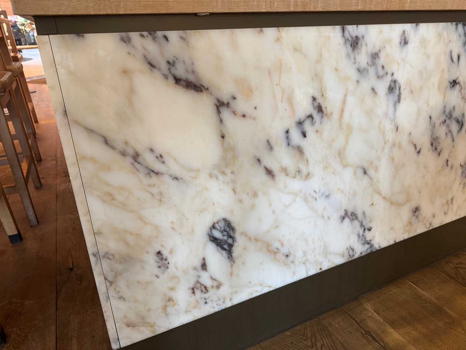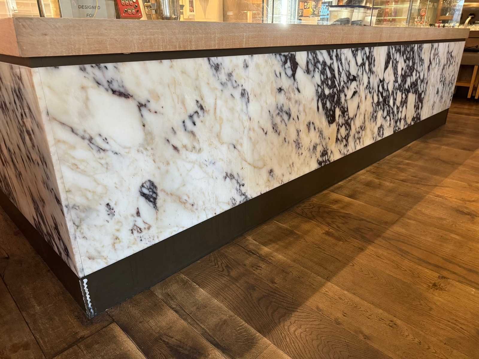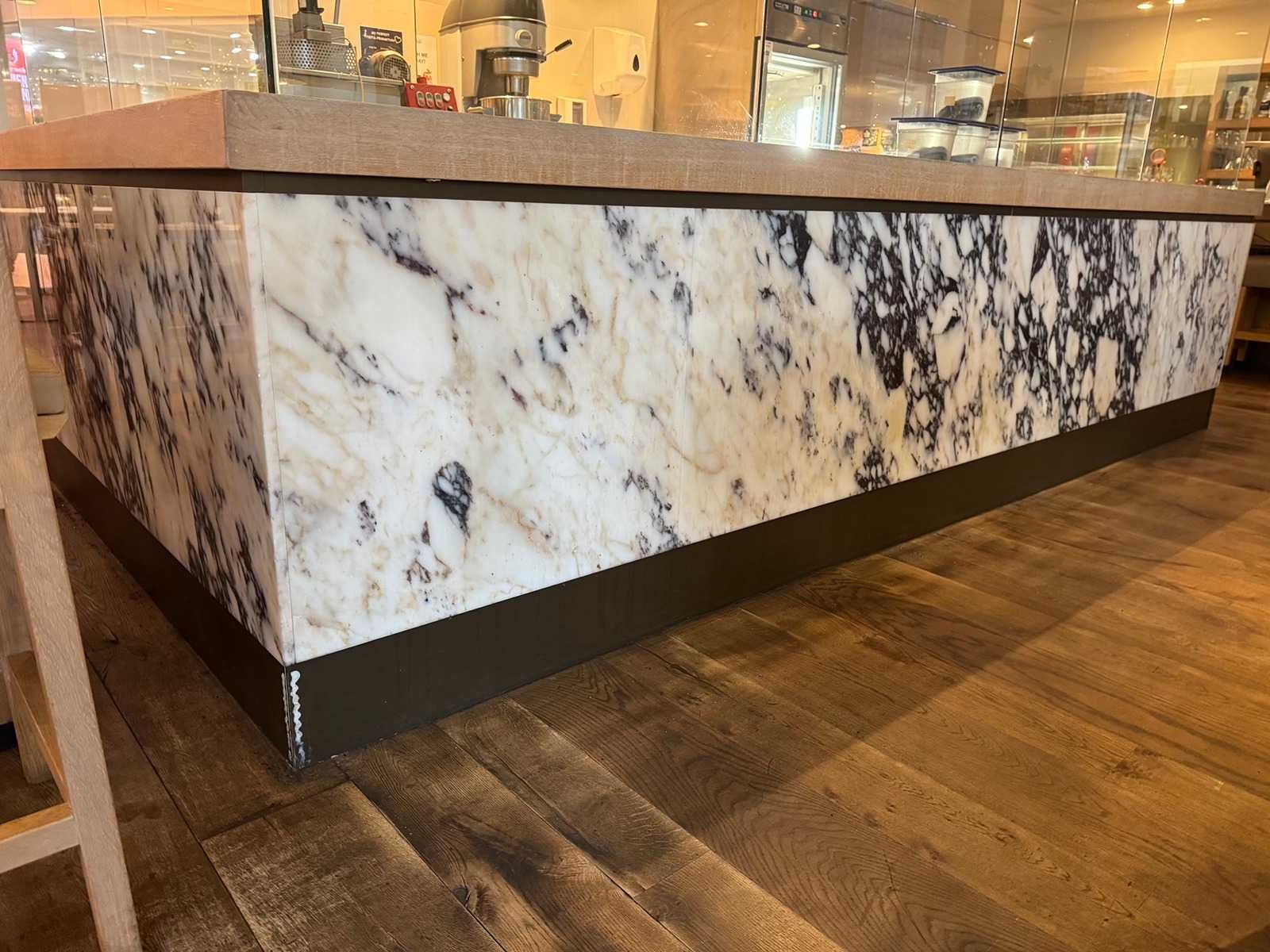 - 5x 86x73,5 cm - 2x 55x73,5 cm - 1x 91x73,5 cm - 3x 90,5x73,5 cm De marmeren tegels zijn 2 cm dik. De koper is zelf verantwoordelijk voor het professioneel demonteren van de kavel. Kavel kan aangesloten zijn op het elektra-, water- en/of gasleidingnetwerk. Bekabeling en/of leidingen dienen netjes afgedopt en ordelijk achter gelaten te worden. Schade aan het pand of andere zaken zal op de koper worden verhaald. Wij adviseren u gebruik te maken van de kijkdag om een plan voor demontage op te stellen.