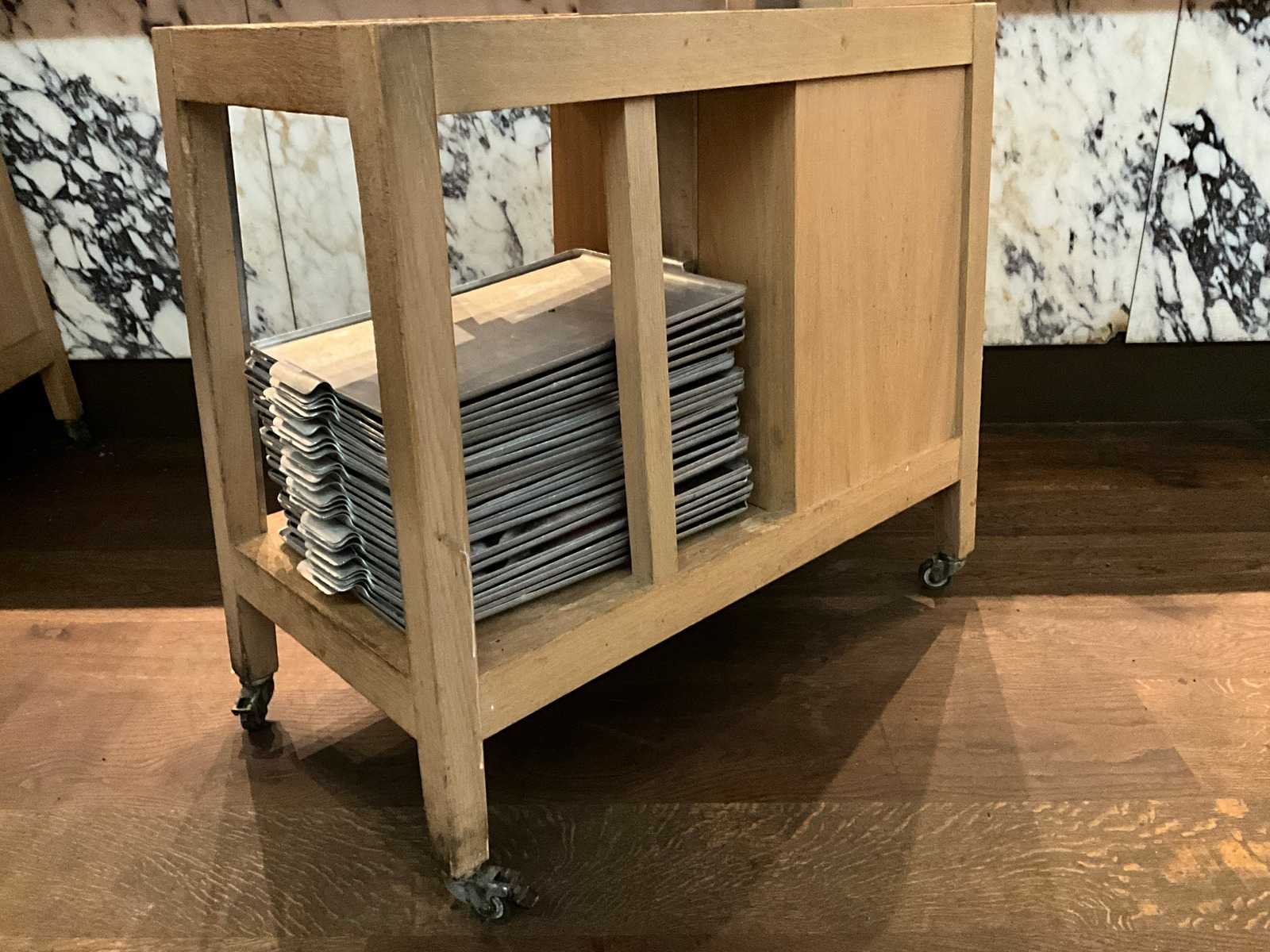 Incl. partij aluminium dienbladen. Merk: Hutten Totale afmeting L: 410mm Totale afmeting Breedte: 850mm Totale afmeting Hoogte: 800mm Hout: true