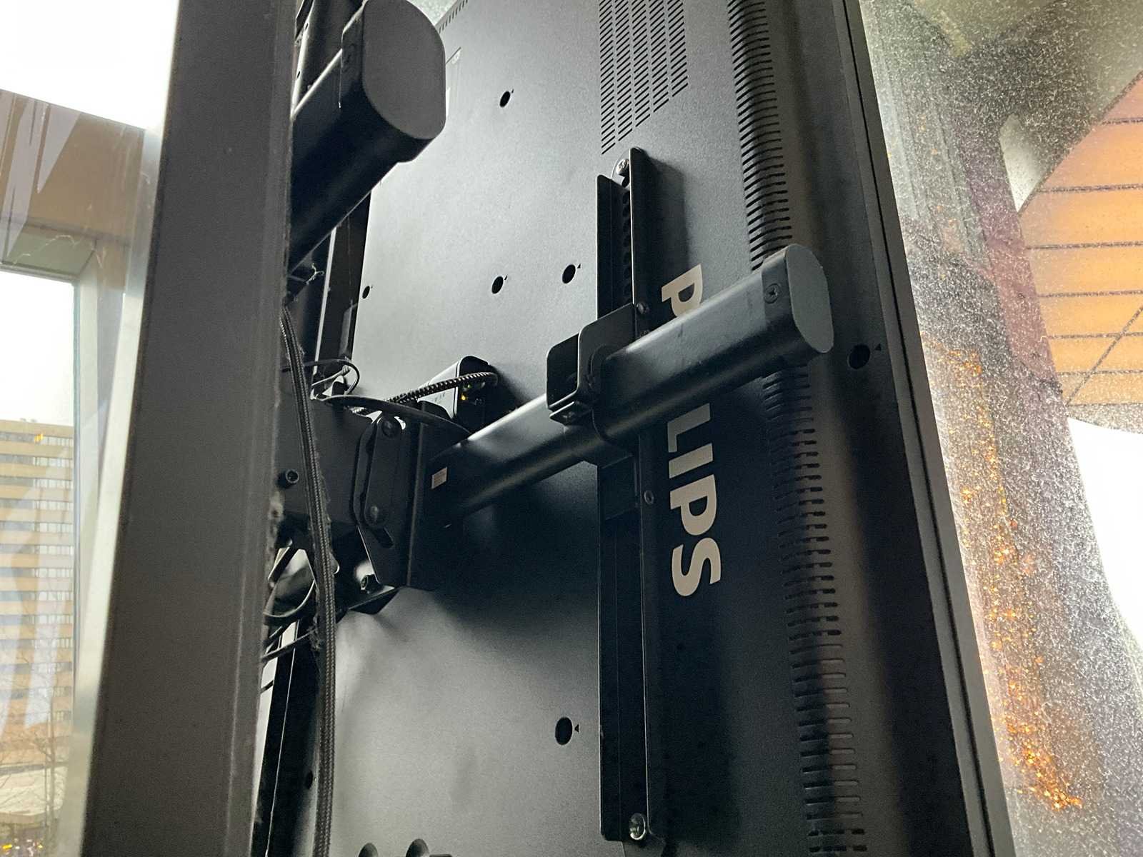 V.v. dubbelzijde plafond ophangbeugel. De koper is zelf verantwoordelijk voor het professioneel demonteren van de kavel. Wij adviseren u gebruikt te maken van de kijkdag om een plan voor demontage op te stellen. Schade aan het pand of andere zaken zal op de koper worden verhaald. Merk: Philips Model: 55BDL4031D