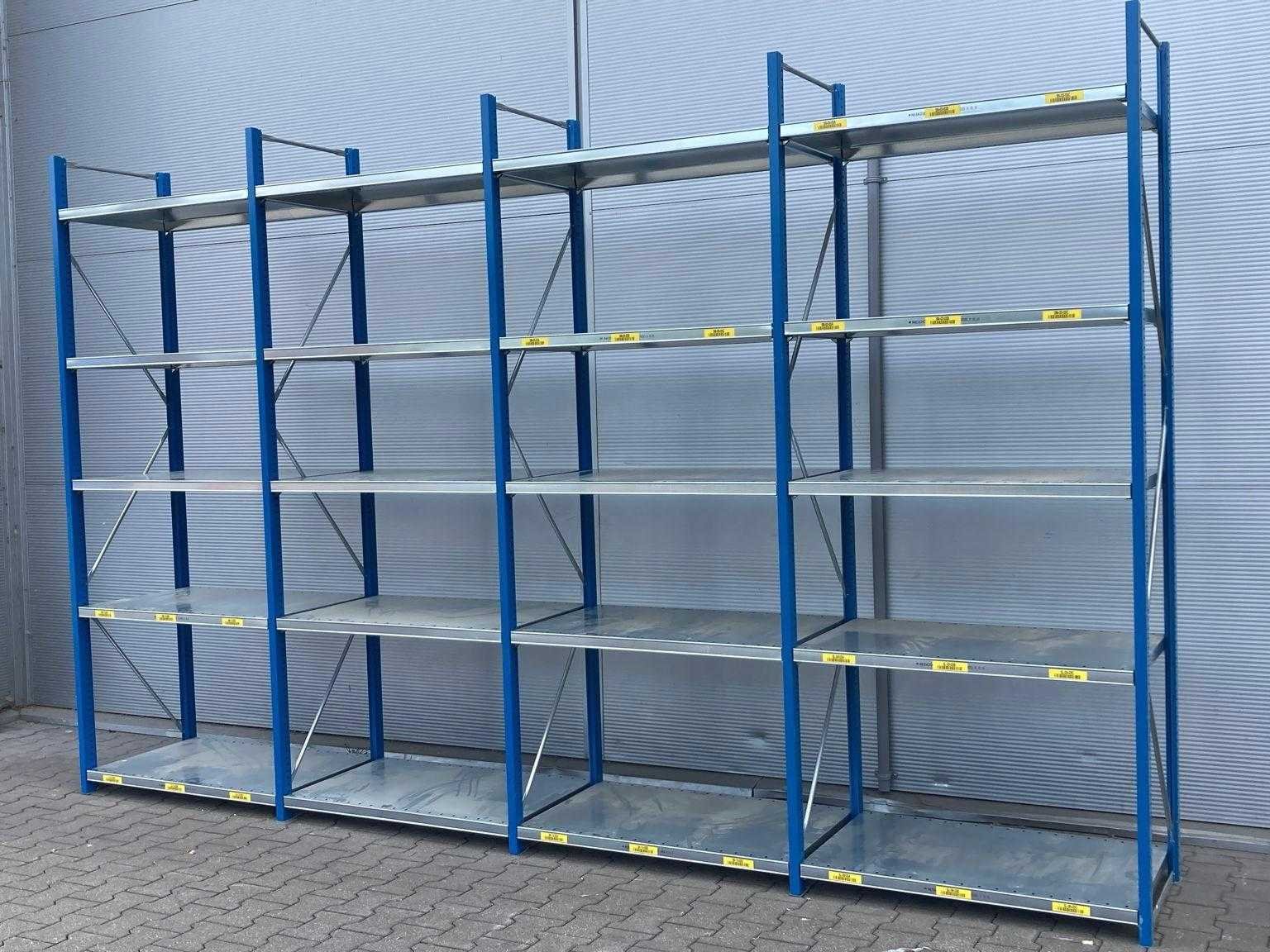 10x staander 2500x500mm; 60x legbord 970x500mm; gebundeld; gebruikt; Merk: Nedcon Aantal secties: 9 Sectie afm. b: 970mm Sectie diepte: 500mm Sectie afm. h: 2500mm Aantal staanders: 10 Aantal legborden: 60 Demontabel: true