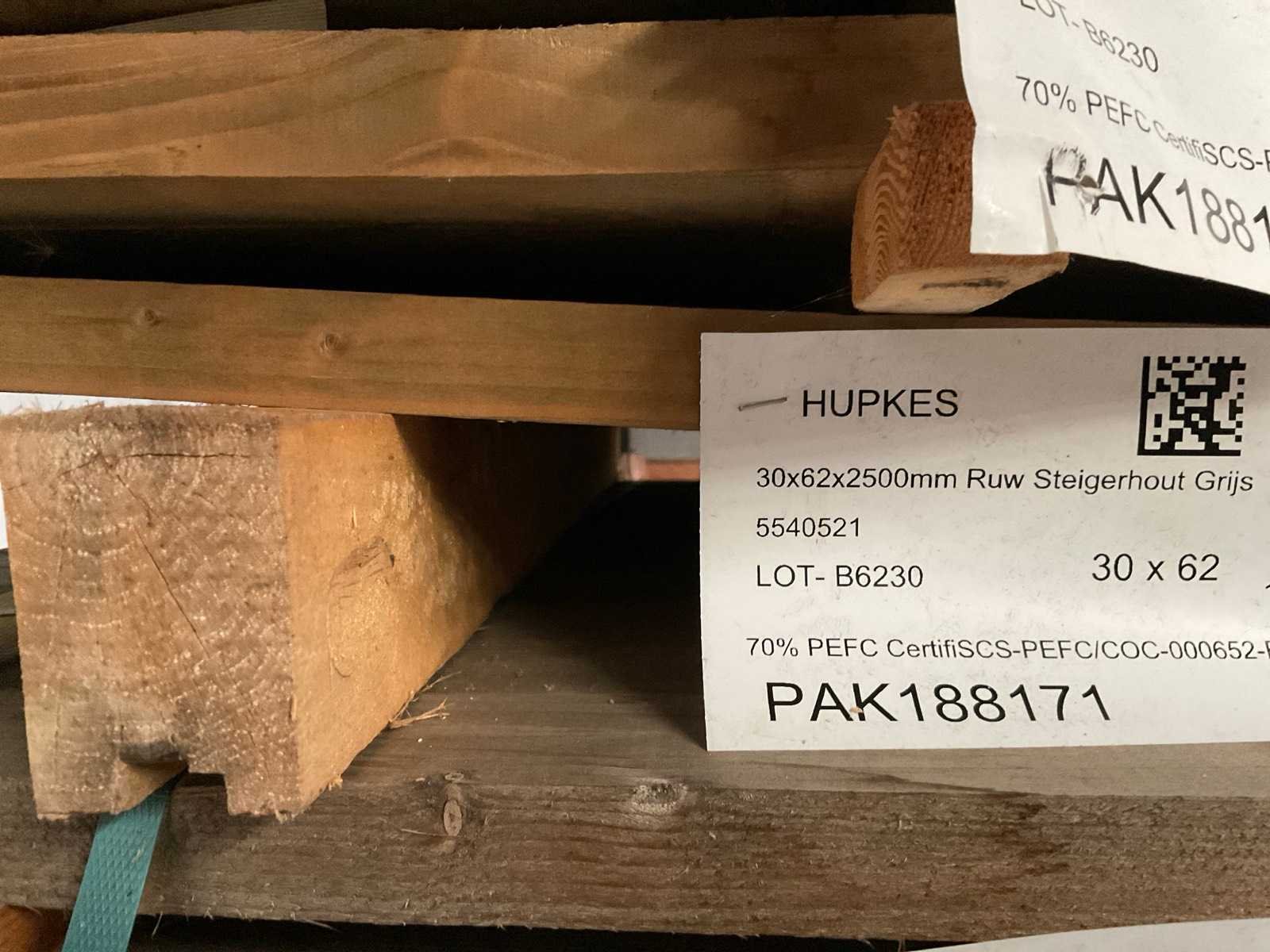 Partij Vuren geïmpregneerde balken 250x3x6 cm (40x). Zie de foto's voor details. Houtsoort: Vuren geimpregneerd Lengte: 250cm Kopmaat: 30x60mm Gewicht: 1kg