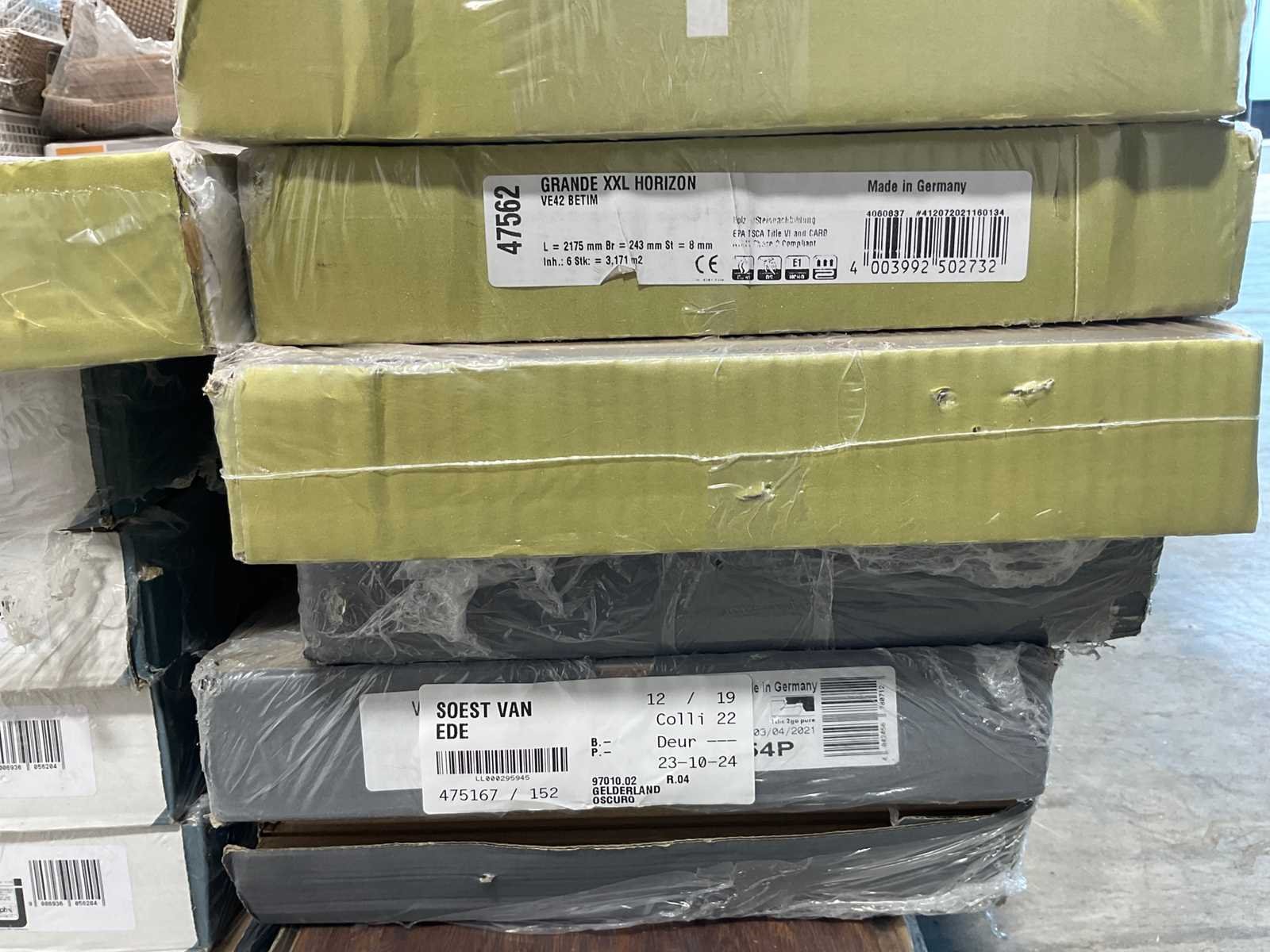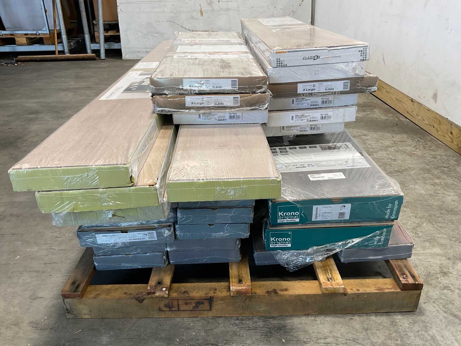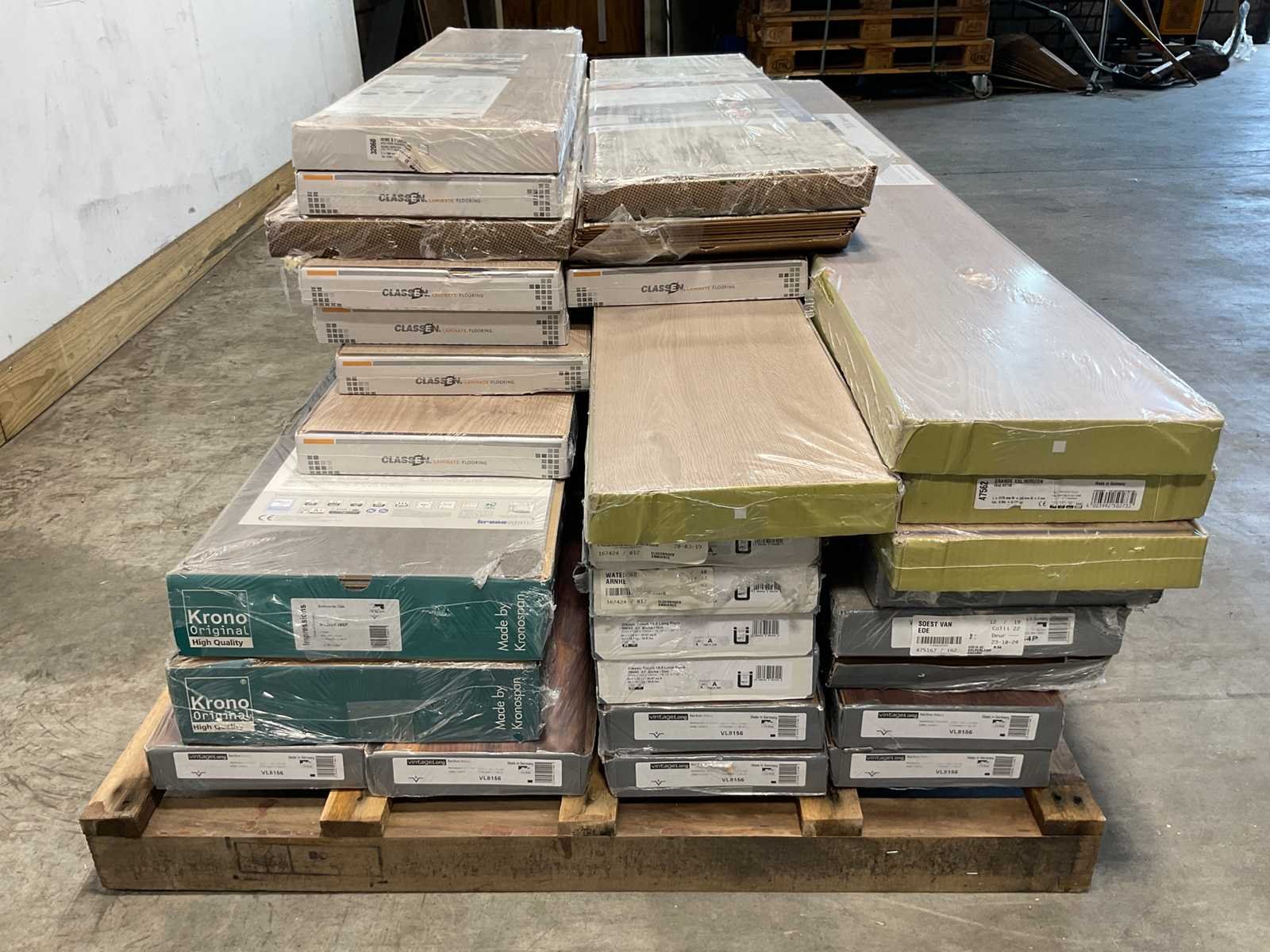 Mixpallet met diverse soorten laminaat – ongeveer 33 pakken, goed voor circa 75m². Bekijk de foto’s voor specificaties en details.