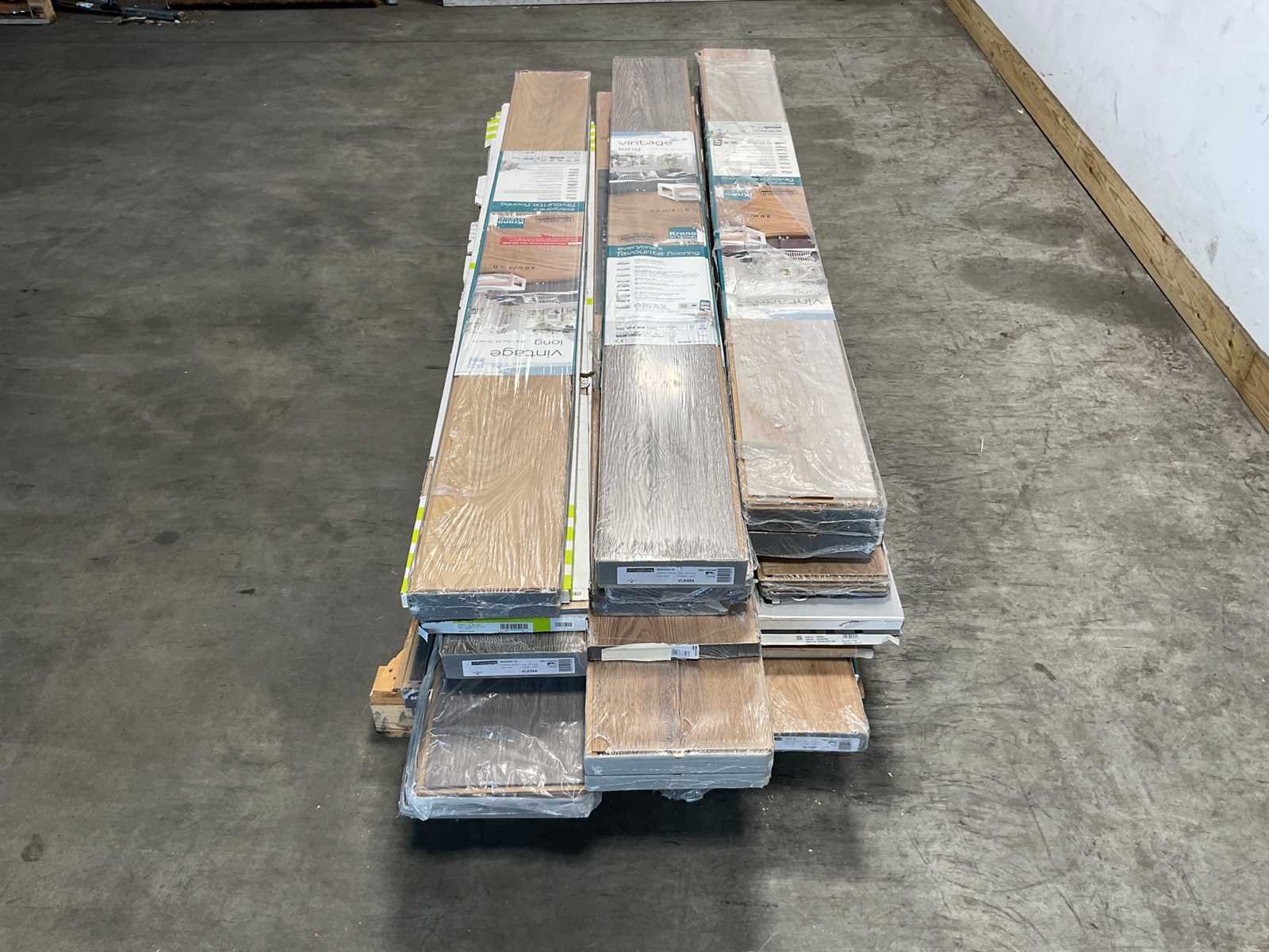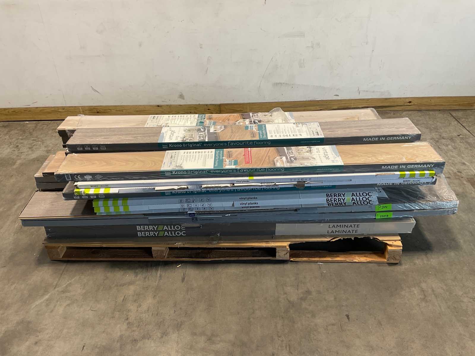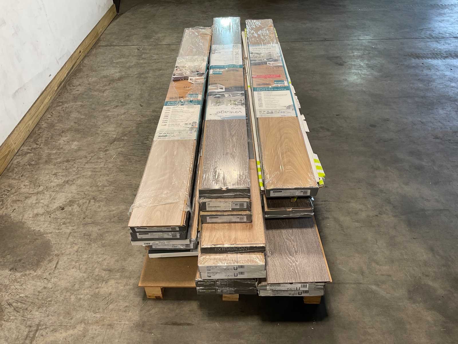 Mixpallet met diverse soorten laminaat – ongeveer 35 pakken, goed voor circa 80m². Bekijk de foto’s voor specificaties en details.