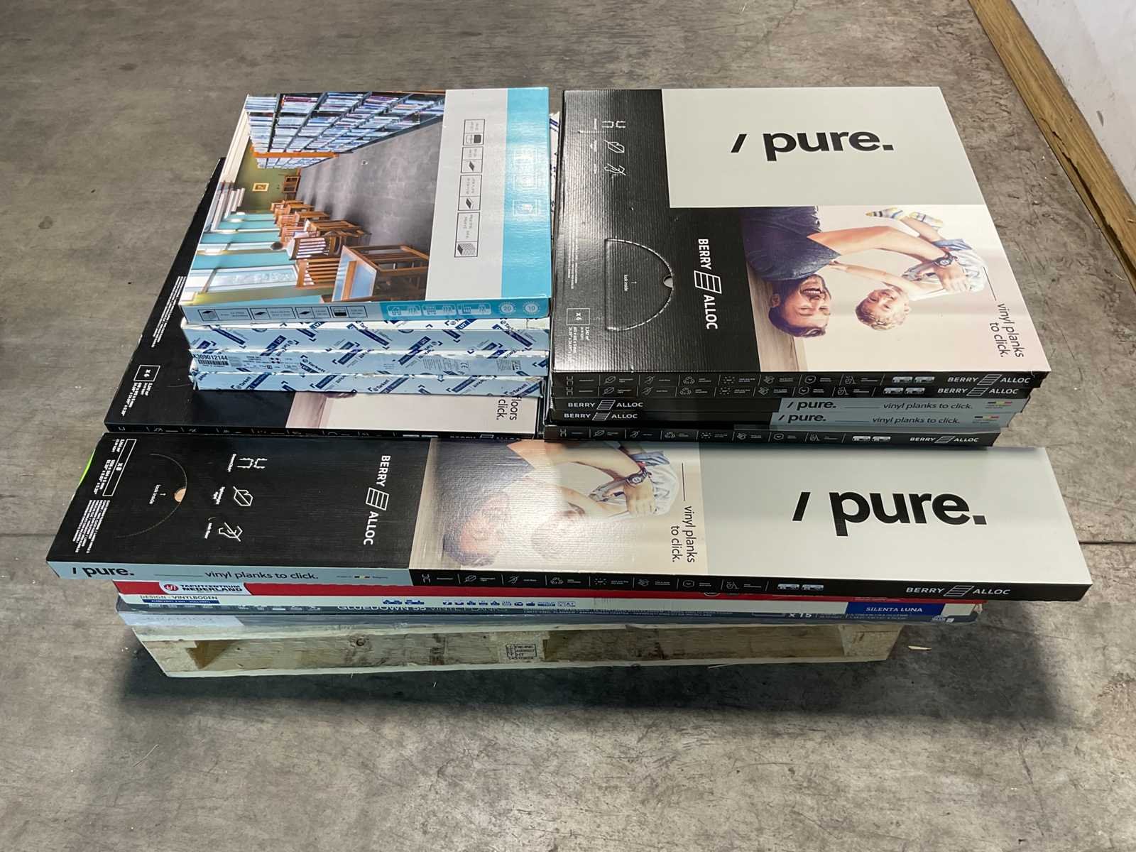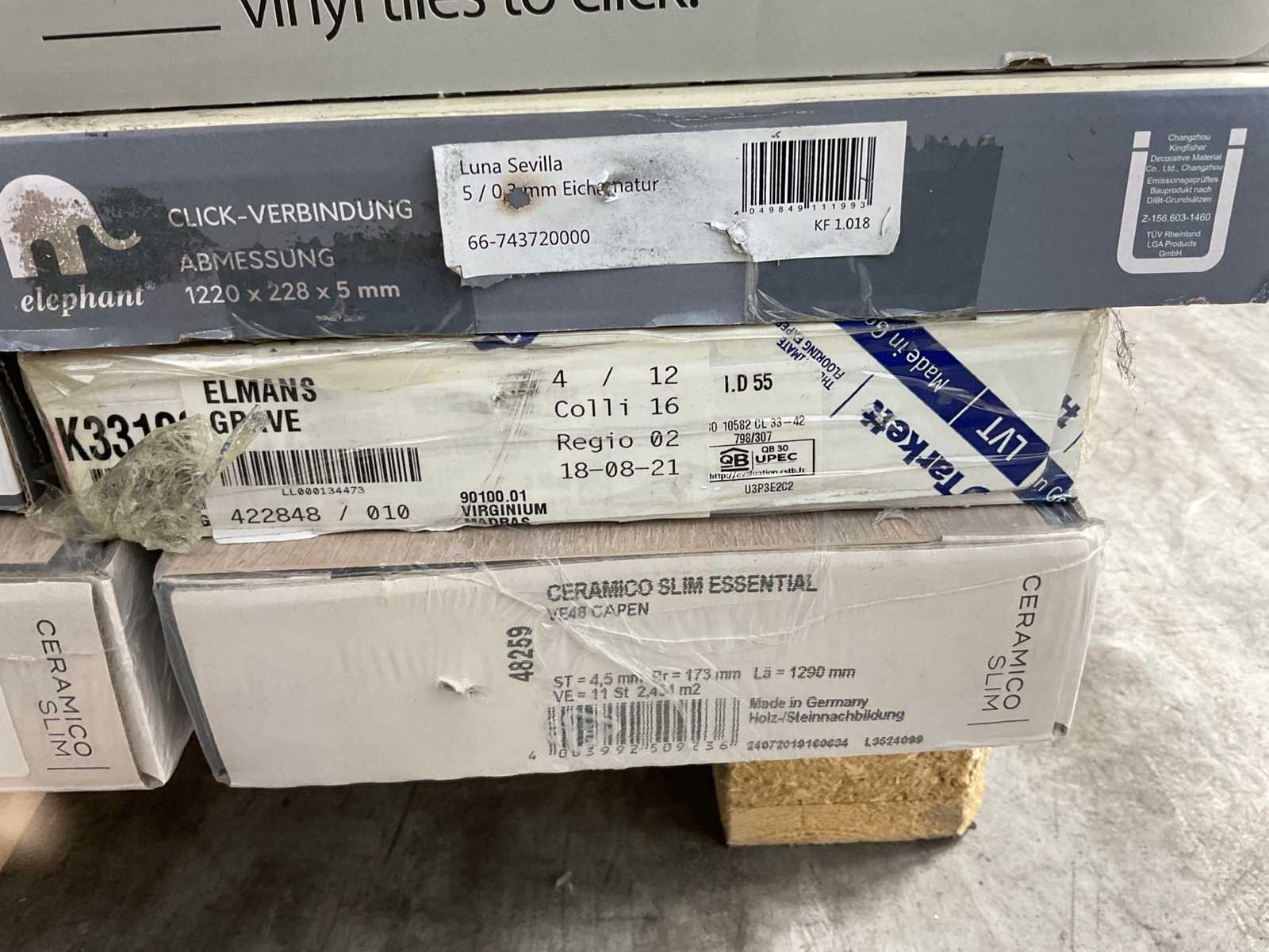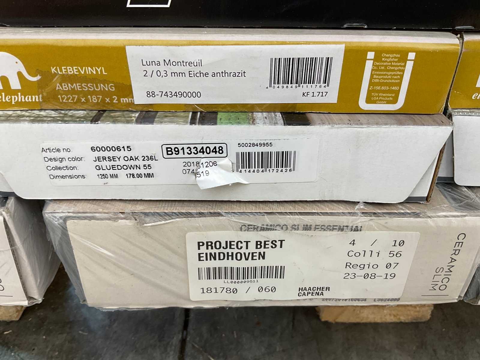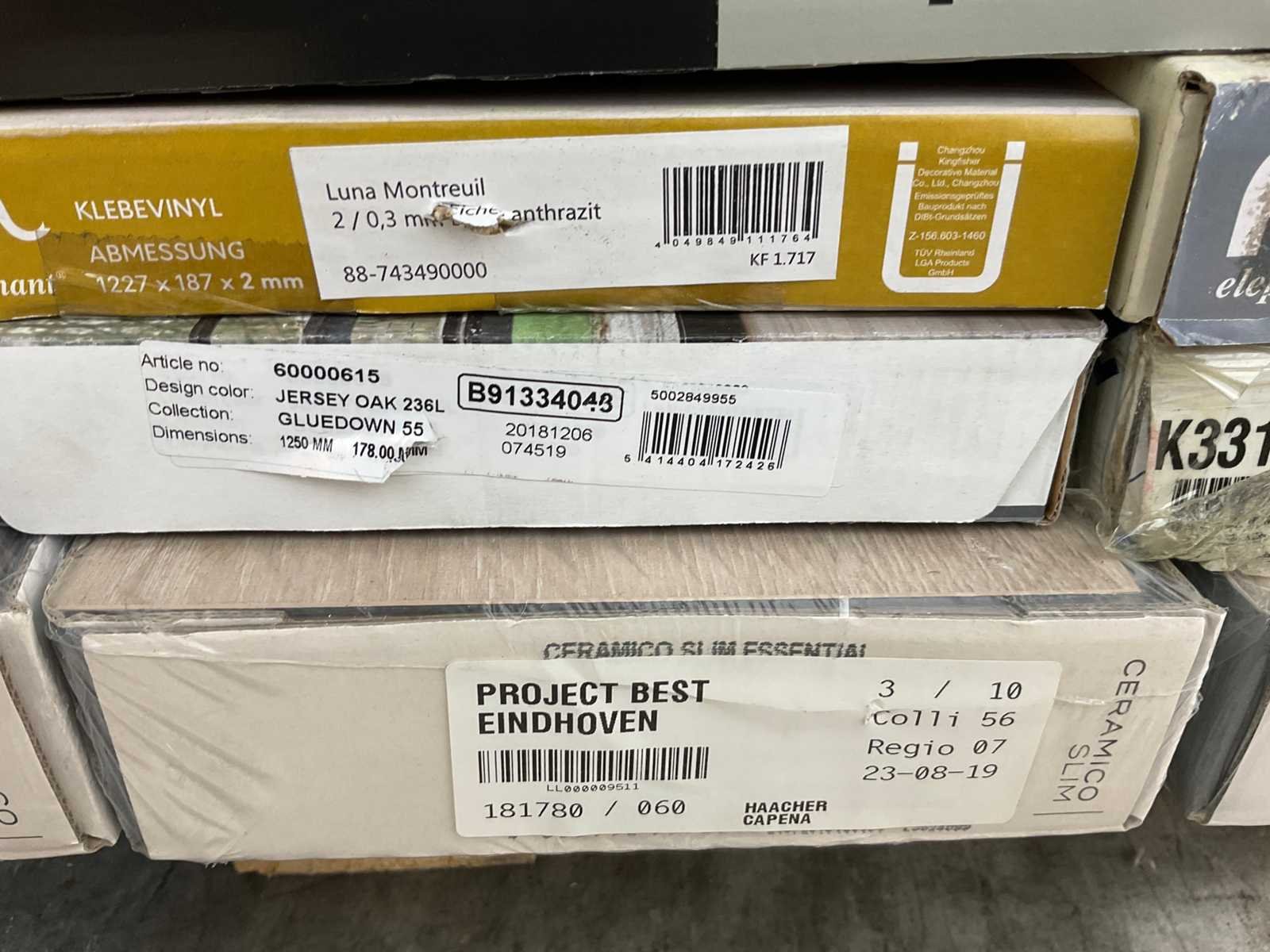 Mixpallet met diverse soorten laminaat – ongeveer 34 pakken, goed voor circa 75m². Bekijk de foto’s voor specificaties en details.