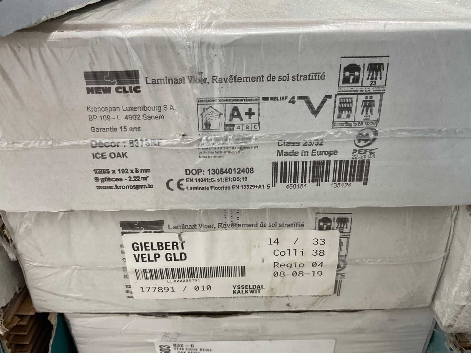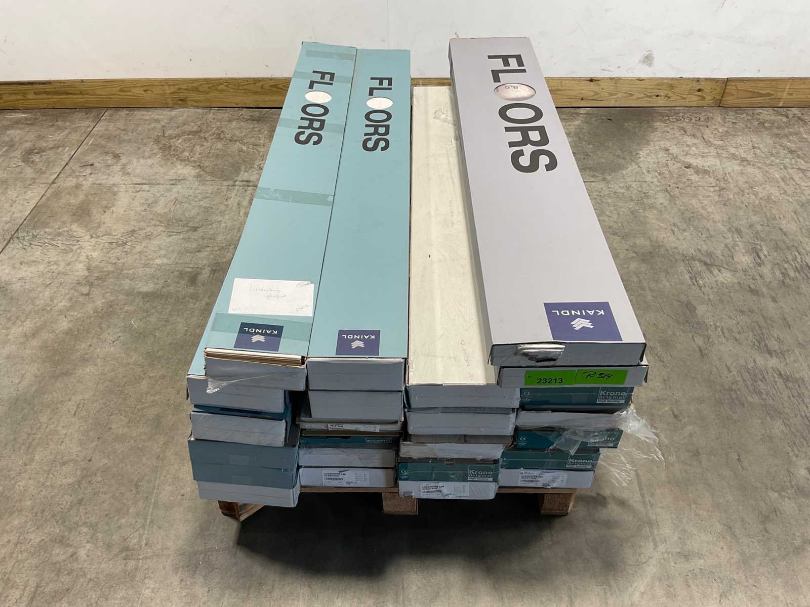 Mixpallet met diverse soorten laminaat – ongeveer 24 pakken, goed voor circa 49m². Bekijk de foto’s voor specificaties en details.