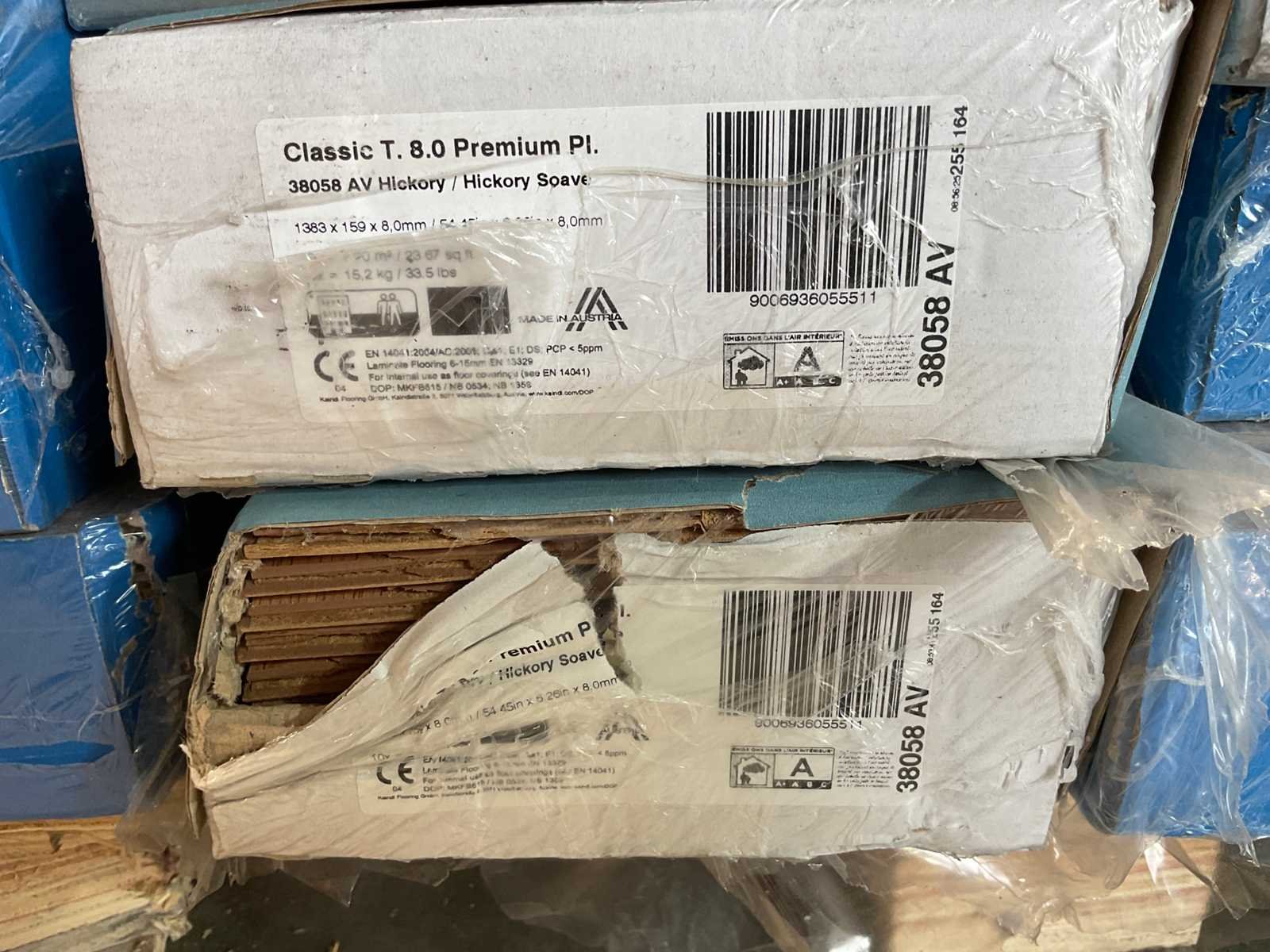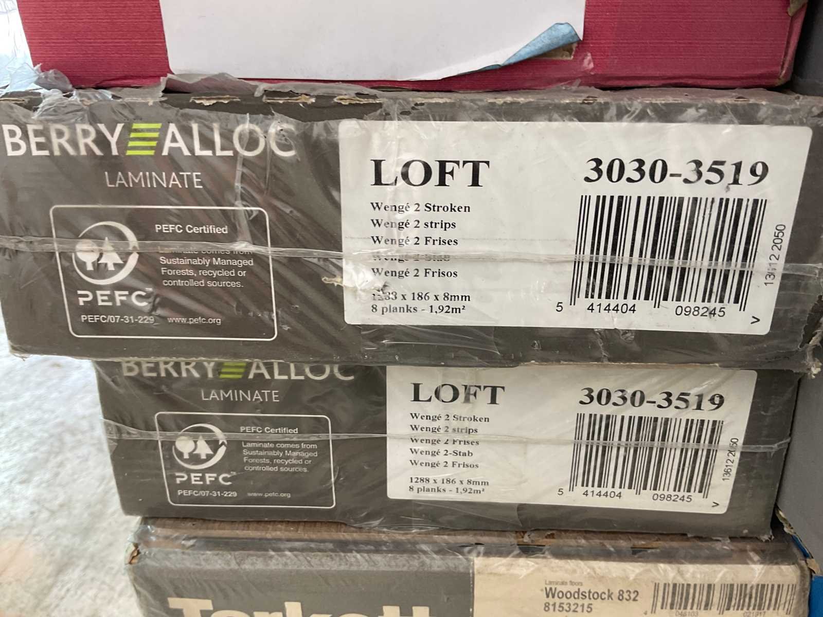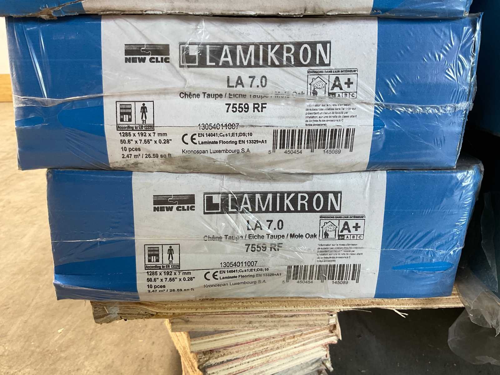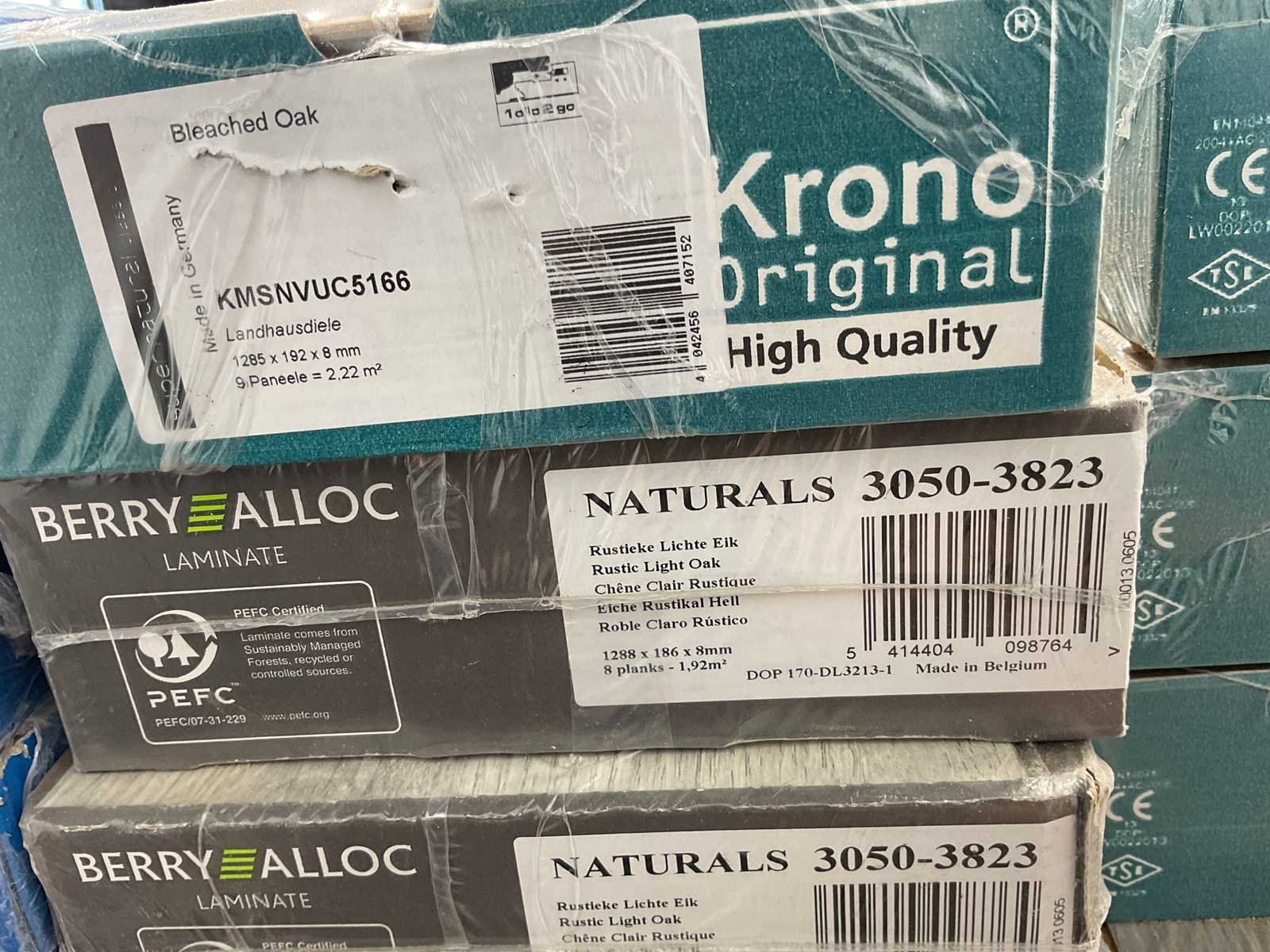 Mixpallet met diverse soorten laminaat – ongeveer 28 pakken, goed voor circa 62m². Bekijk de foto’s voor specificaties en details.