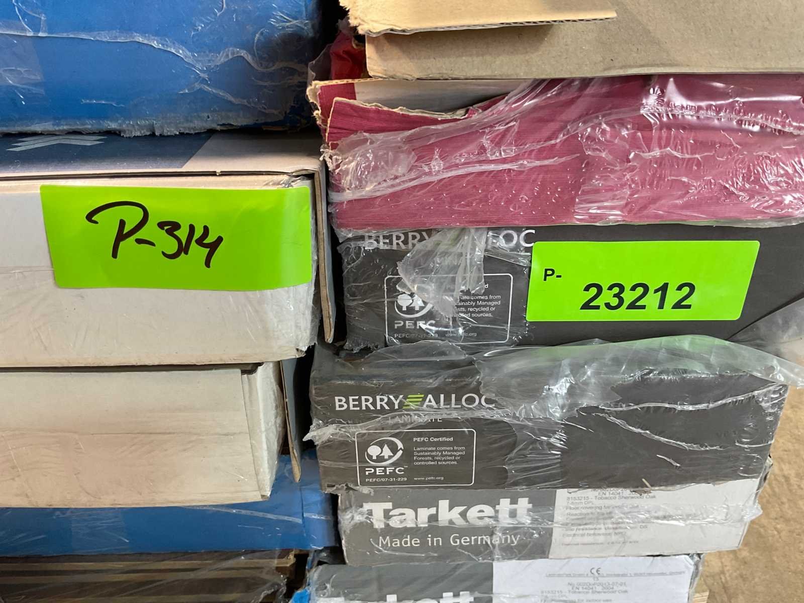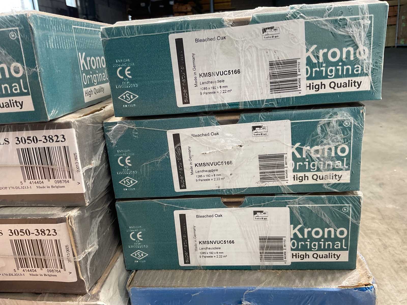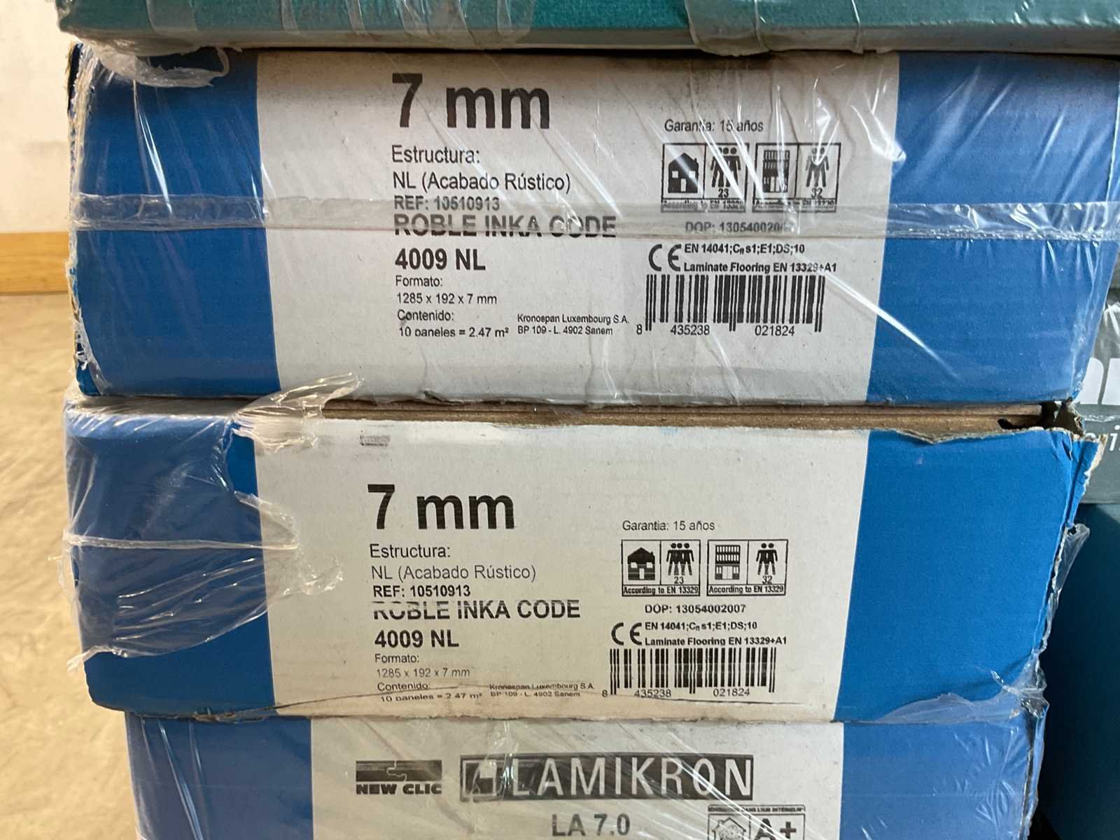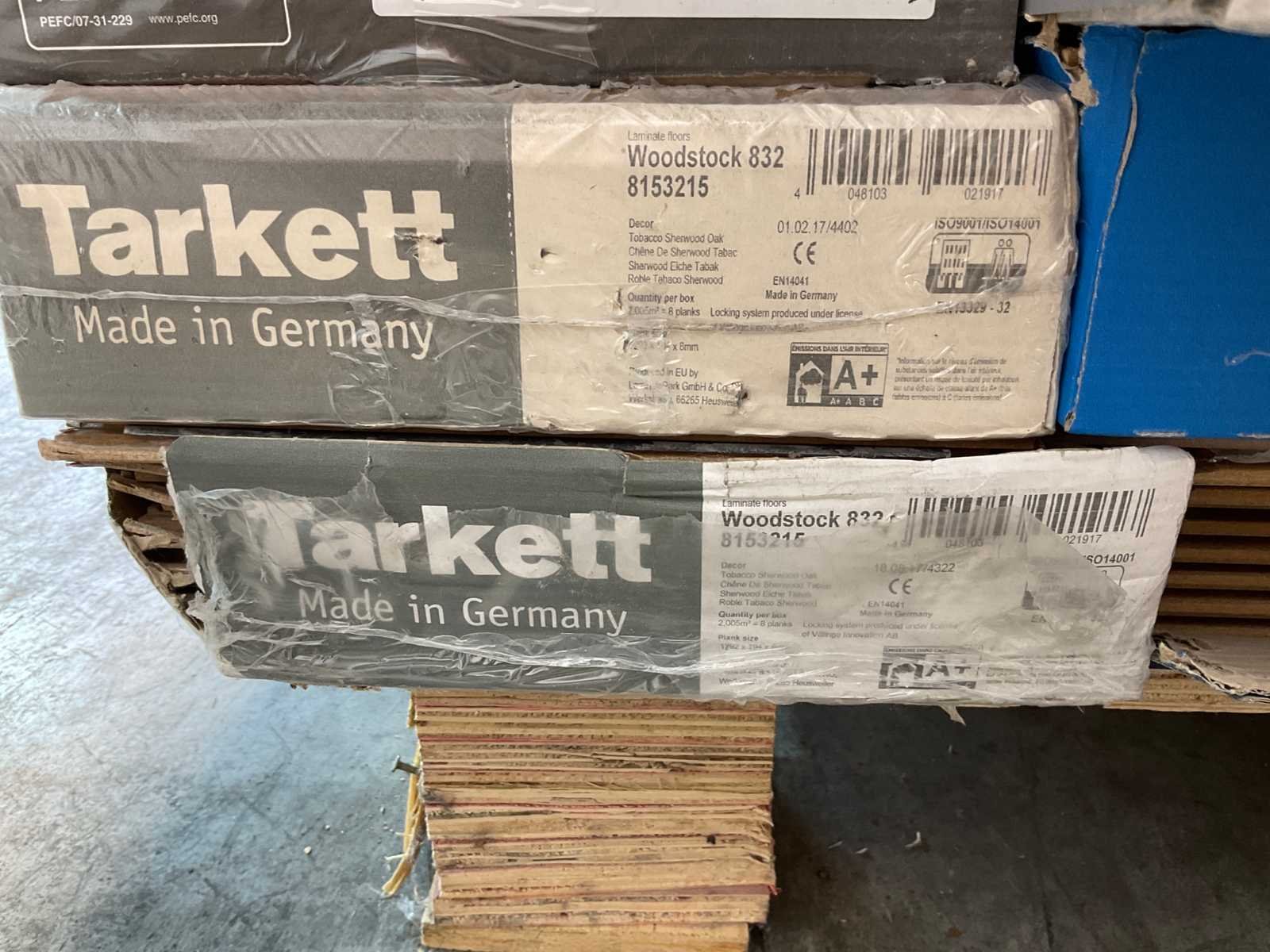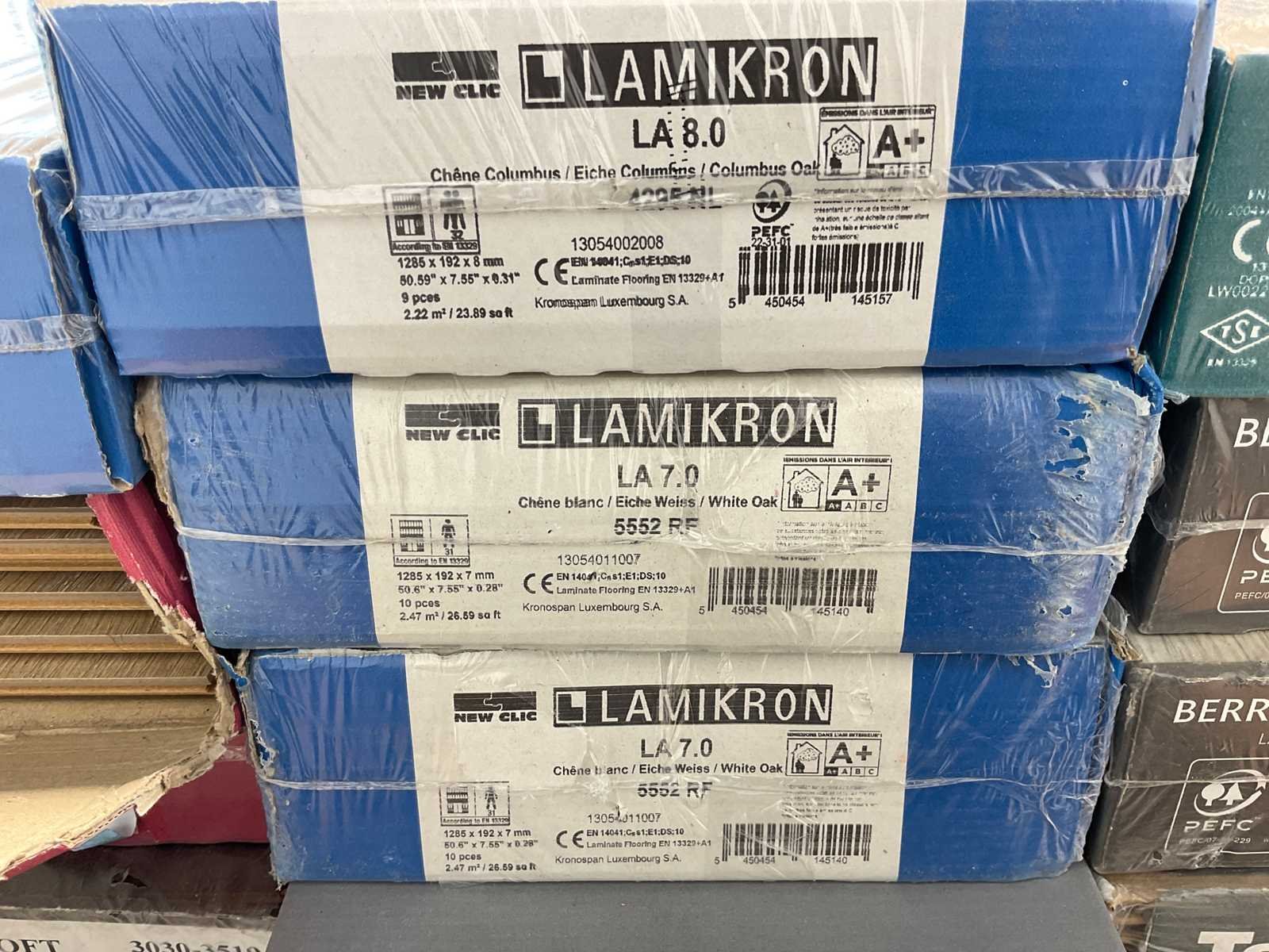 Mixpallet met diverse soorten laminaat – ongeveer 28 pakken, goed voor circa 62m². Bekijk de foto’s voor specificaties en details.