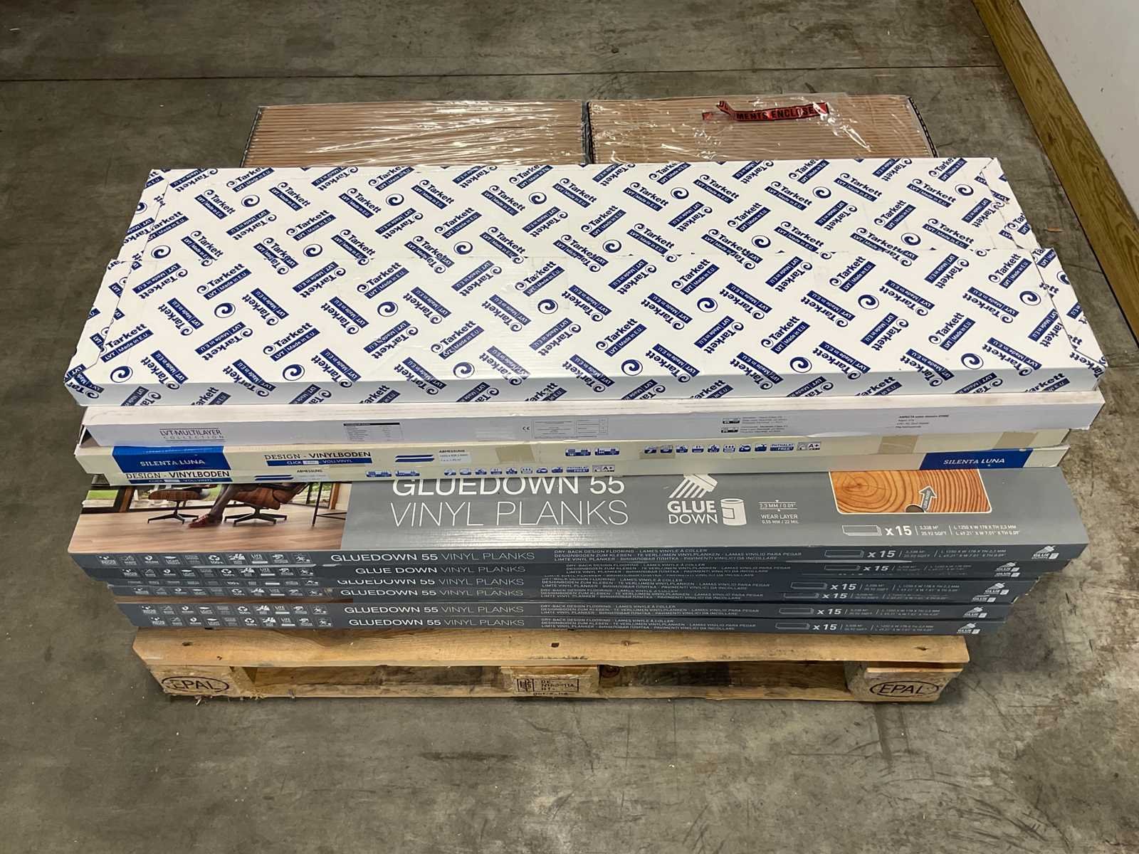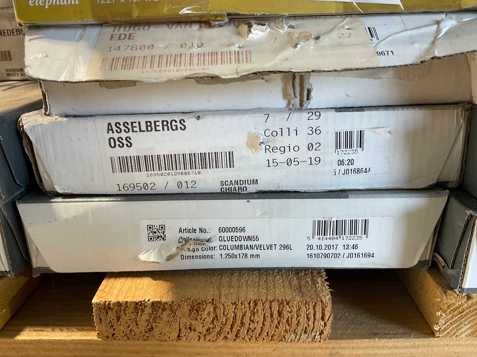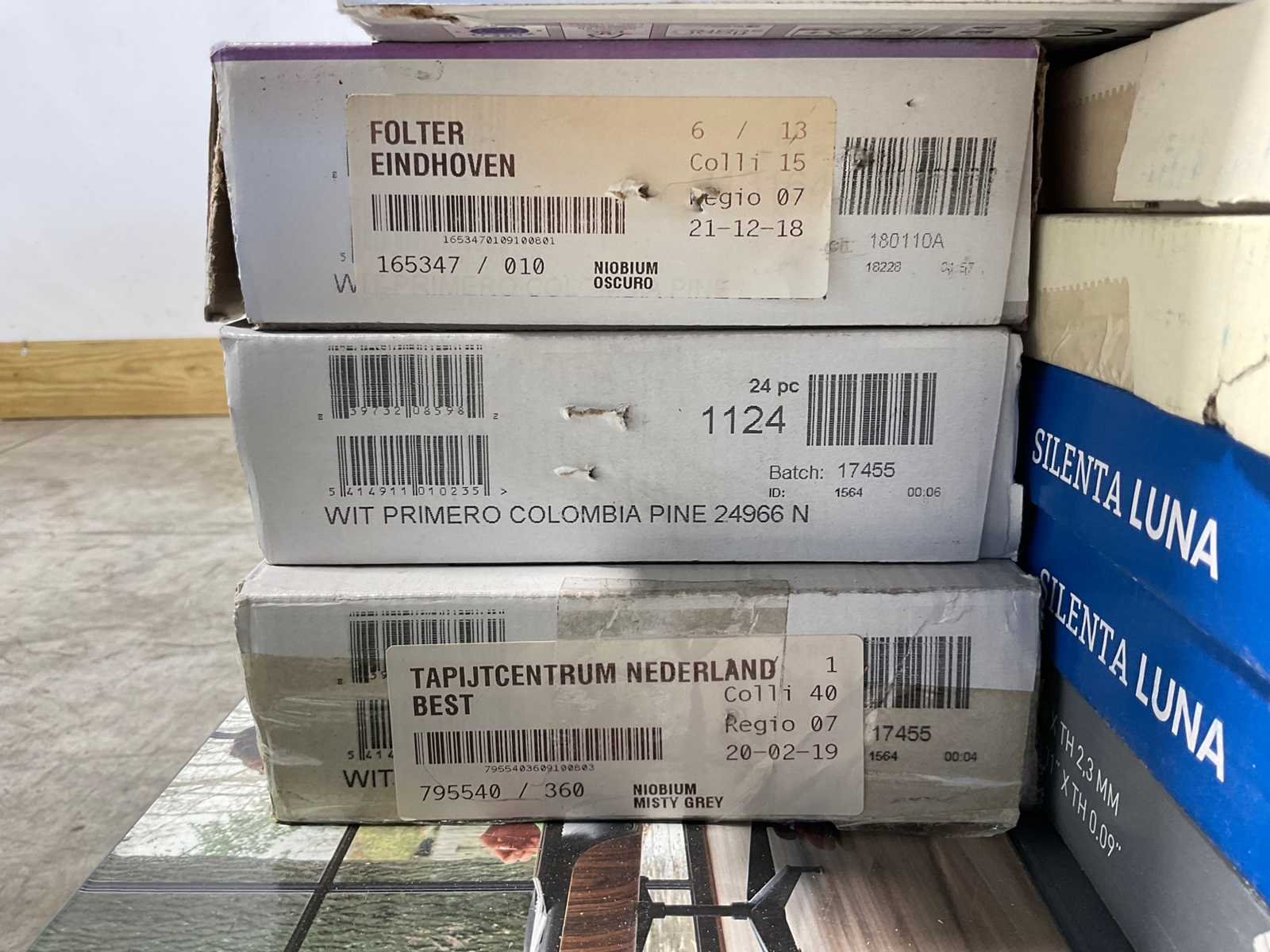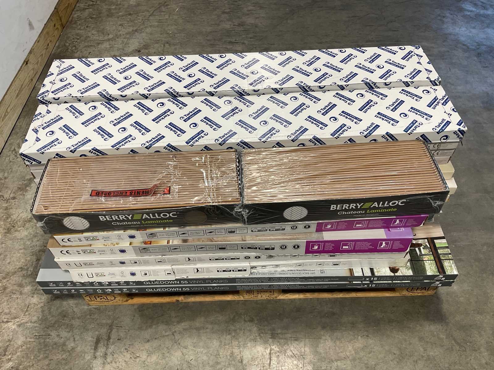 Mixpallet met diverse soorten laminaat – ongeveer 37 pakken, goed voor circa 82m². Bekijk de foto’s voor specificaties en details.