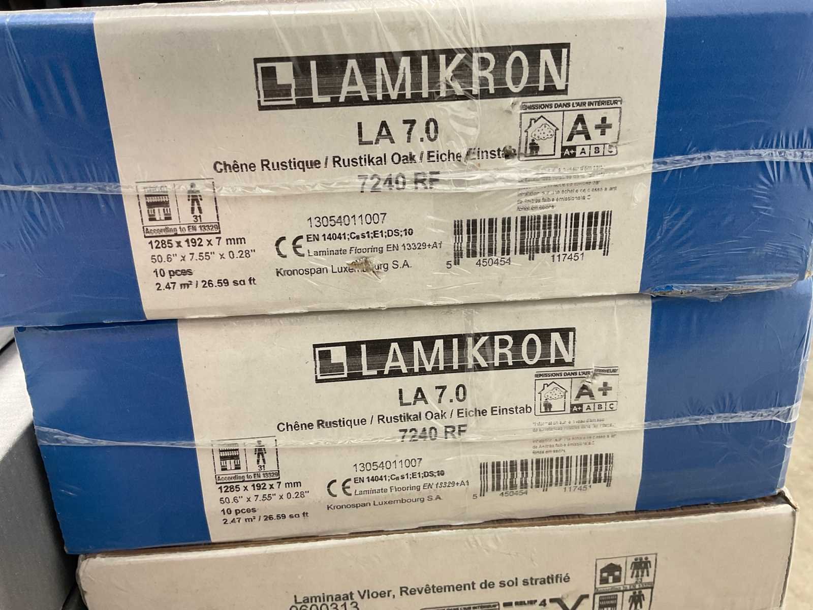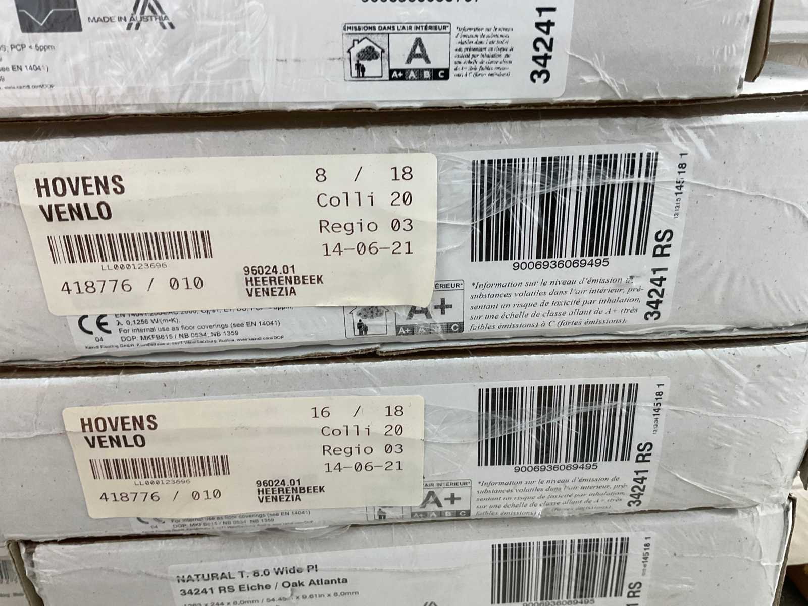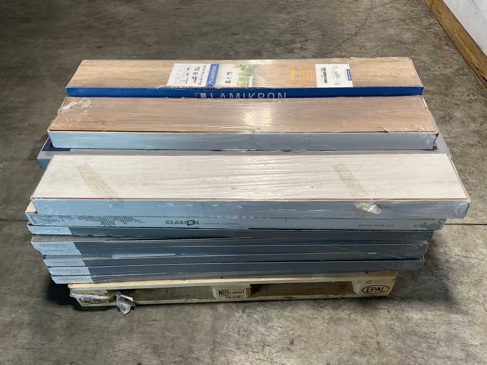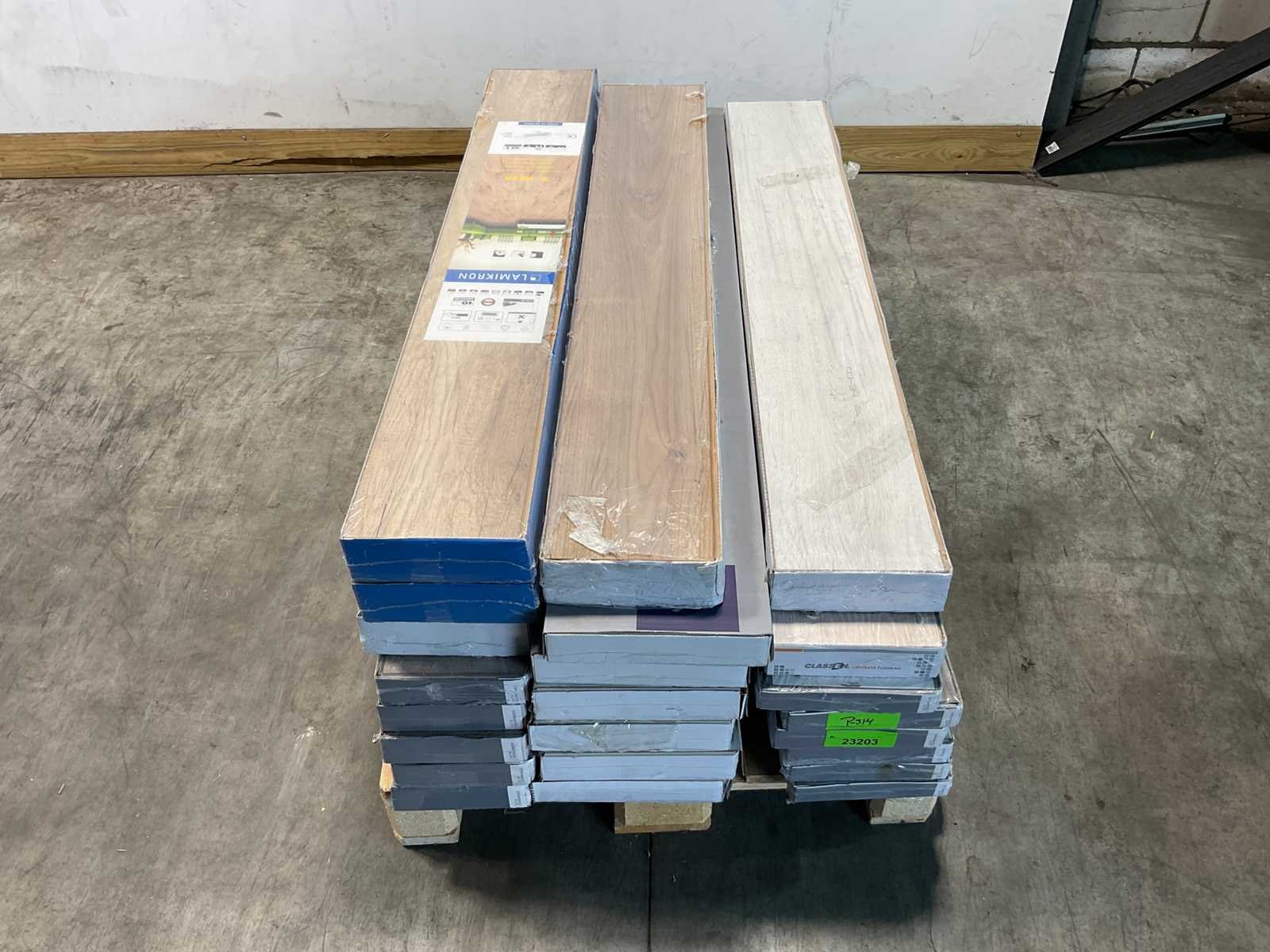 Mixpallet met diverse soorten laminaat – ongeveer 23 pakken, goed voor circa 51m². Bekijk de foto’s voor specificaties en details.