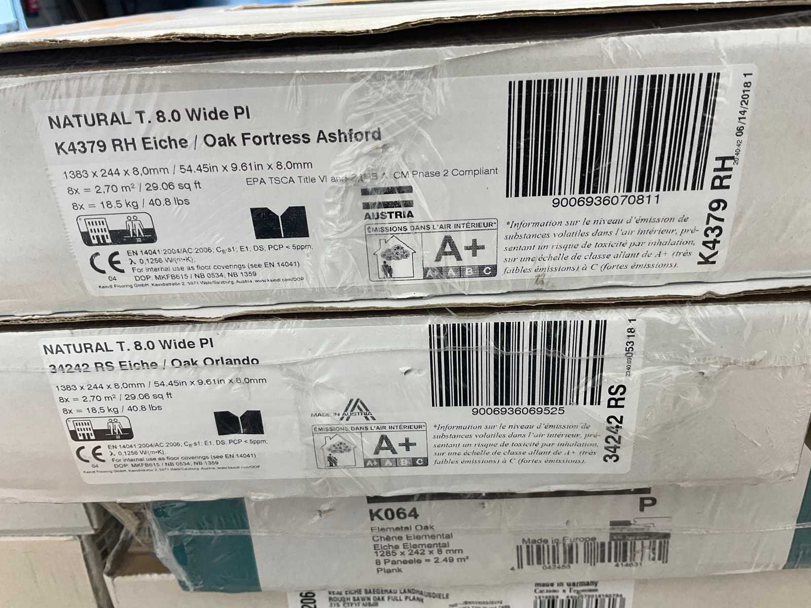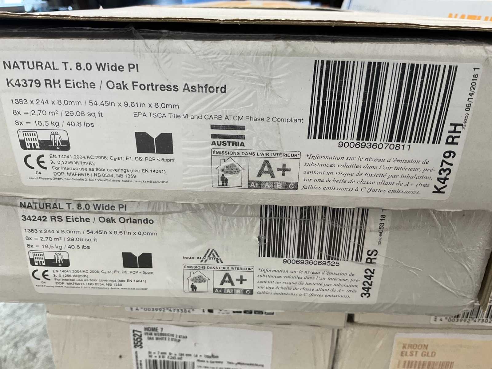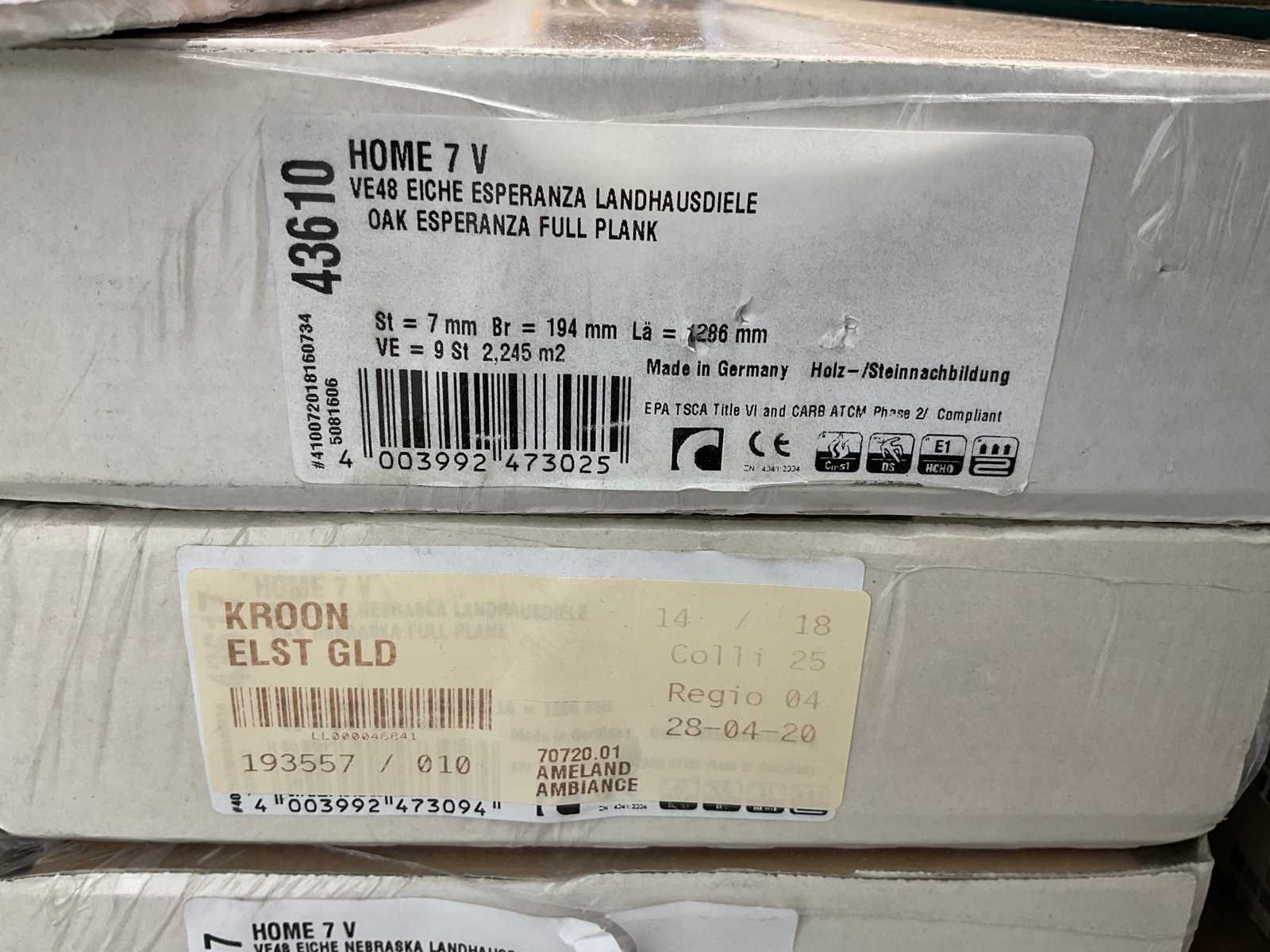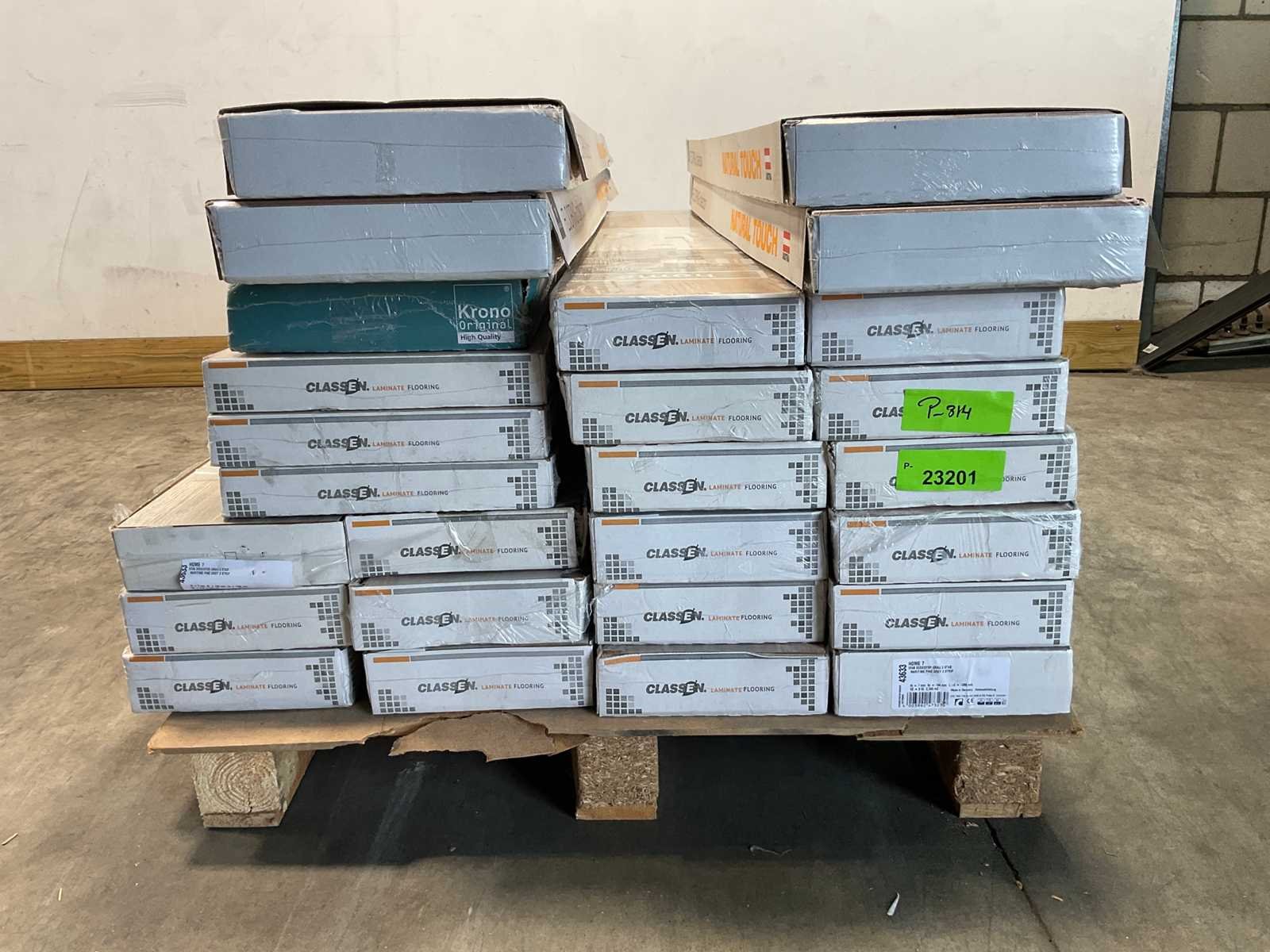 Mixpallet met diverse soorten laminaat – ongeveer 26 pakken, goed voor circa 57 m². Bekijk de foto’s voor specificaties en details.