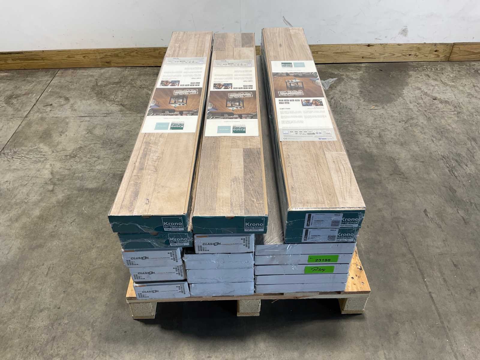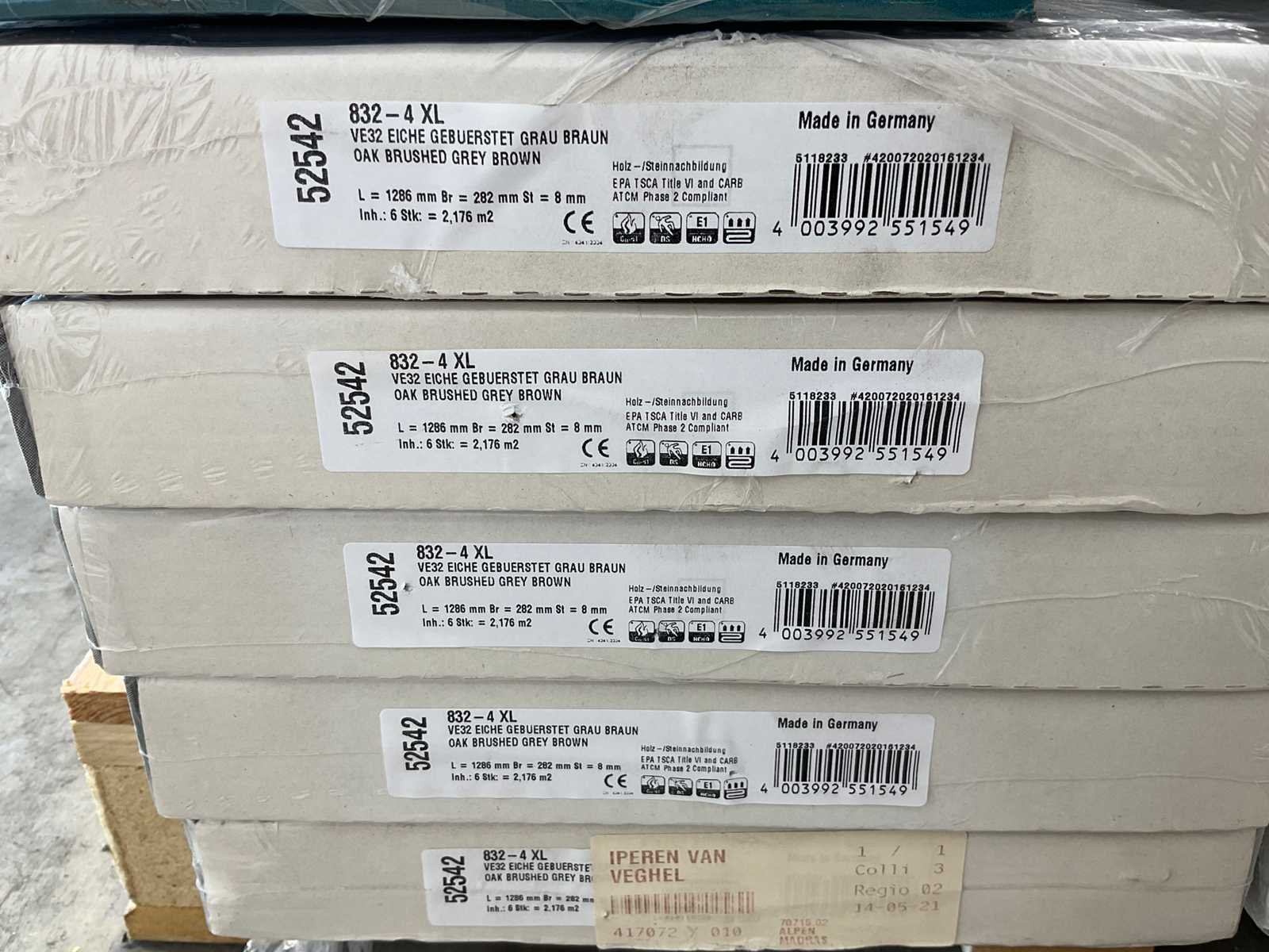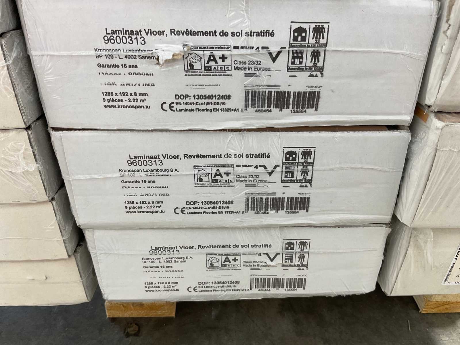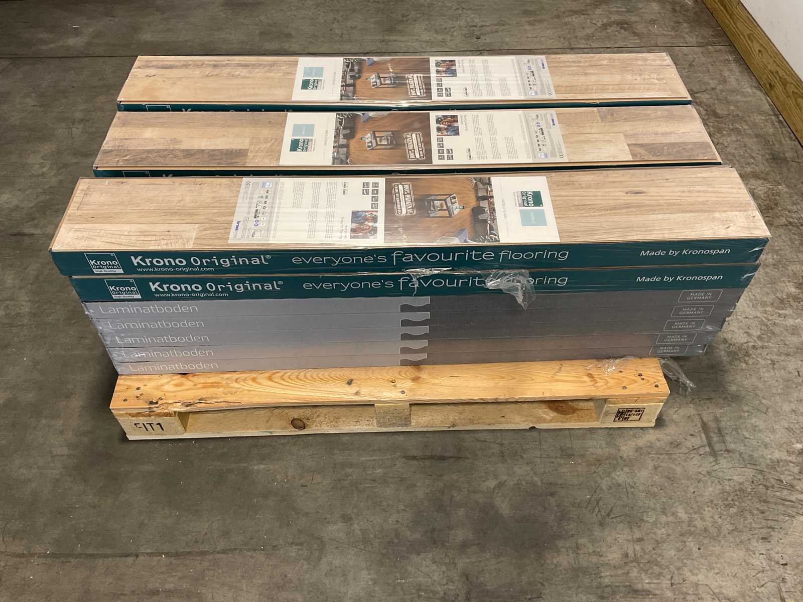 Mixpallet met diverse soorten laminaat – ongeveer 17 pakken, goed voor circa 38 m². Bekijk de foto’s voor specificaties en details.