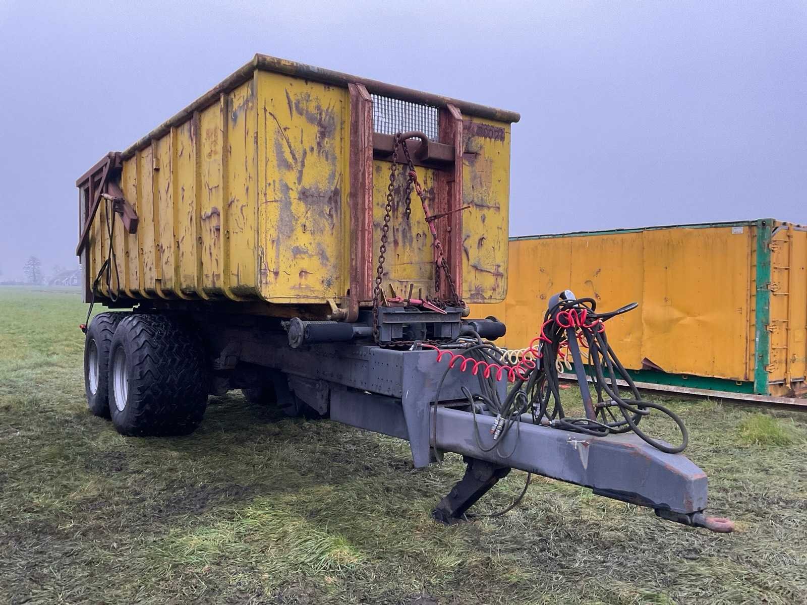 Inclusief afzetcontainer met inhoud circa 20m3 afmeting circa 600x220x160cm, container voorzien van hydraulische losklep, carrier voorzien van kabelsysteem, hydraulische kiepfunctie, hydraulische steunpoot, luchtremmen. Bandenmaat: 800/45R26.5 Aantal assen: 2 Totale afmeting L: 8600 Totale afmeting Breedte: 2400 Totale afmeting Hoogte: 3250