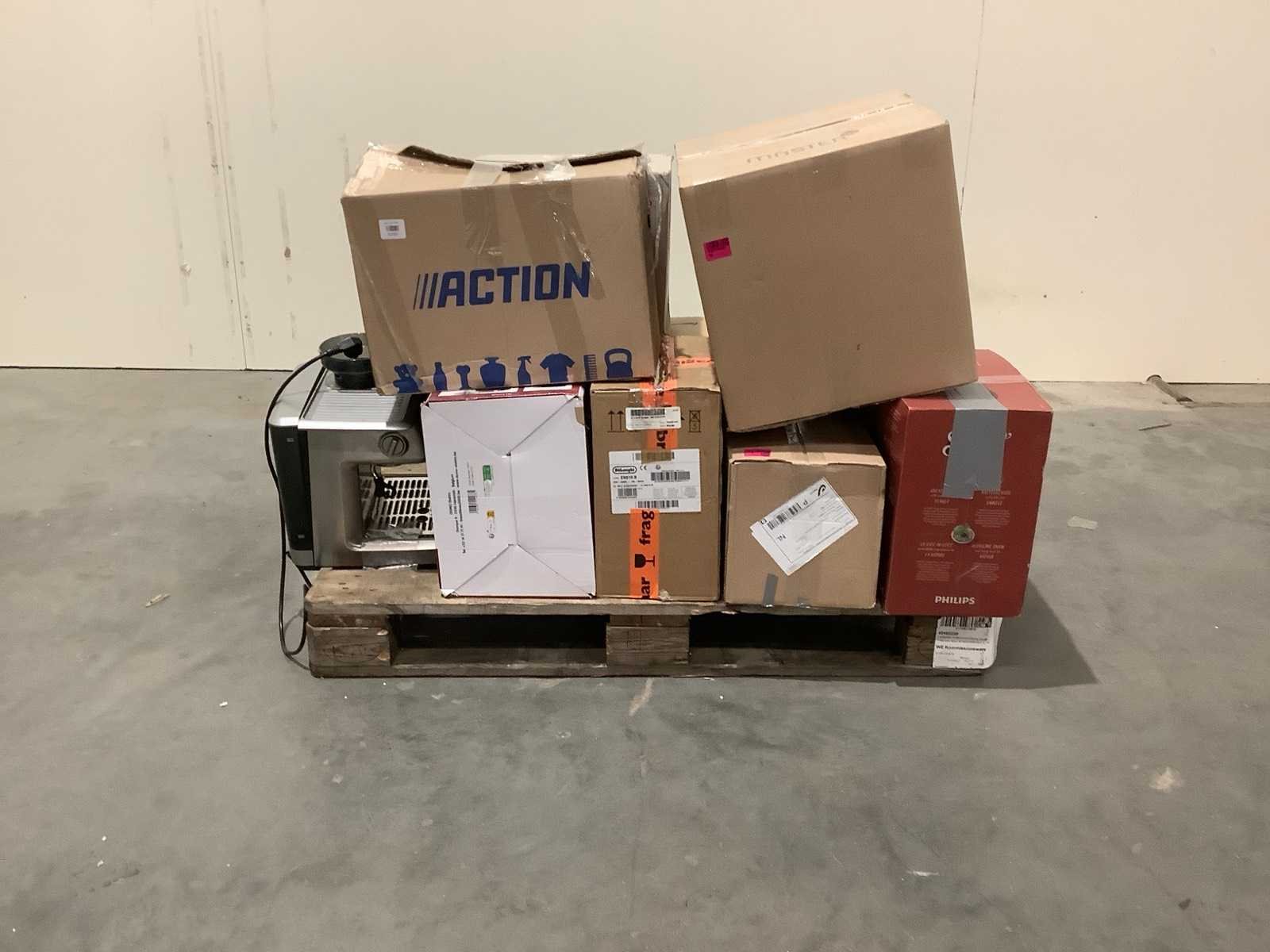 Dit betreft een partij retourgoederen van een grote online retailer. De goederen bestaan uit diverse productcategorieën. Ongecontroleerd: werking onbekend (mix van werkend, incompleet, beschadigd, te gebruiken voor onderdelen). Kom op de kijkdag om te om zo een goed beeld te krijgen van de reden van retour. Merk: Pallet