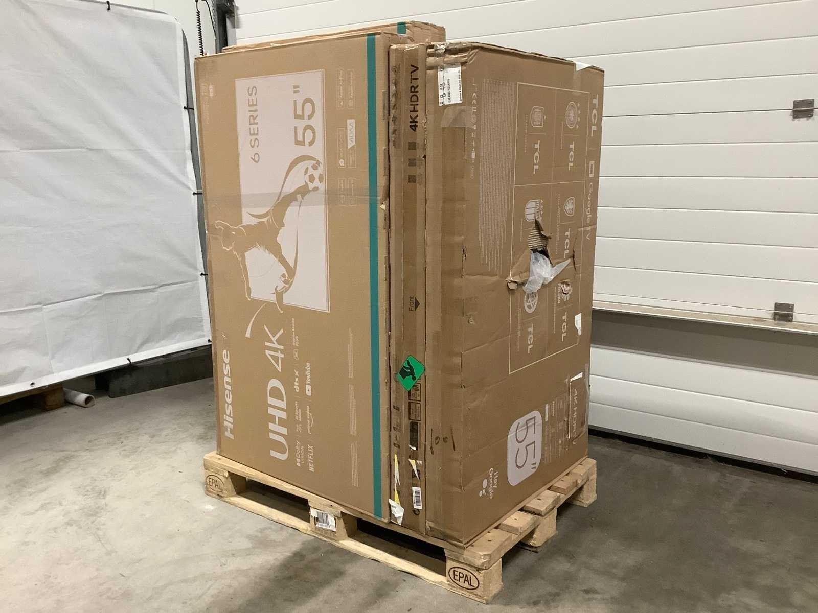 Dit betreft een partij televisies retourgoederen van een grote online retailer. De partij bestaat uit diverse diverse maten televisies. Aantal stuks: 8. Retailwaarde: €2652,- De televisies zijn niet werkend en zijn te gebruiken voor onderdelen. Kom op de kijkdag om te om zo een goed beeld te krijgen van de reden van retour. Zie foto's voor lijst met inhoud. Bezorgtermijn 14 dagen Merk: Pallet Retourgoederen - Televisies