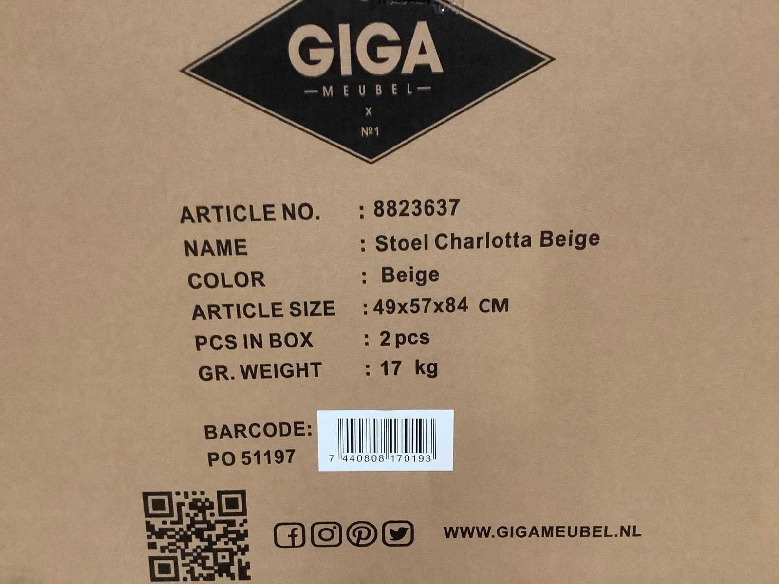 Let op: Dit betreft een kavel met een nieuw artikel in verpakking. Merk: Giga Meubel Model: Charlotta Product type: Stof/Metaal Kleur: Beige Zithoogte: 48cm