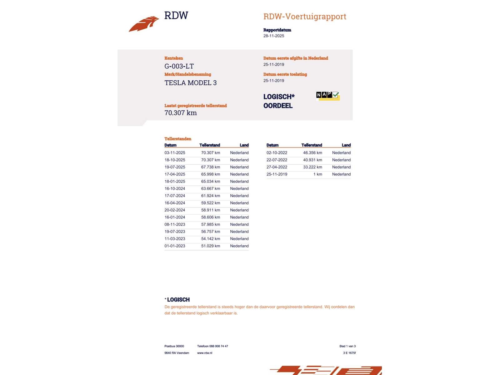 Kenteken: G-003-LT Merk: Tesla Model: Model 3 Type: Long Range AWD 75kWh Afgelezen kilometerstand: 70307km Brandstof: Elektrisch Chassisnummer: 5YJ3E7EB0KF520155 Datum eerste toelating: 2019-11-25 Datum eerste toelating (NL): 2019-11-25 APK vervaldatum: 2026-02-20 Vermogen (pk): 441hp Aandrijving: Vierwielaandrijving Aantal zitplaatsen: 5 Kleur: rood Transmissie: Automaat Stuurwiel: Links Emissieklasse: Z Aantal deuren: 4 Ledig gewicht: 1831kg Carrosserie: sedan Nationaliteit documenten: Nederlandse kentekendocumenten