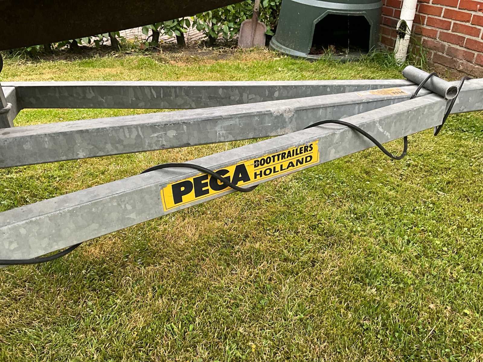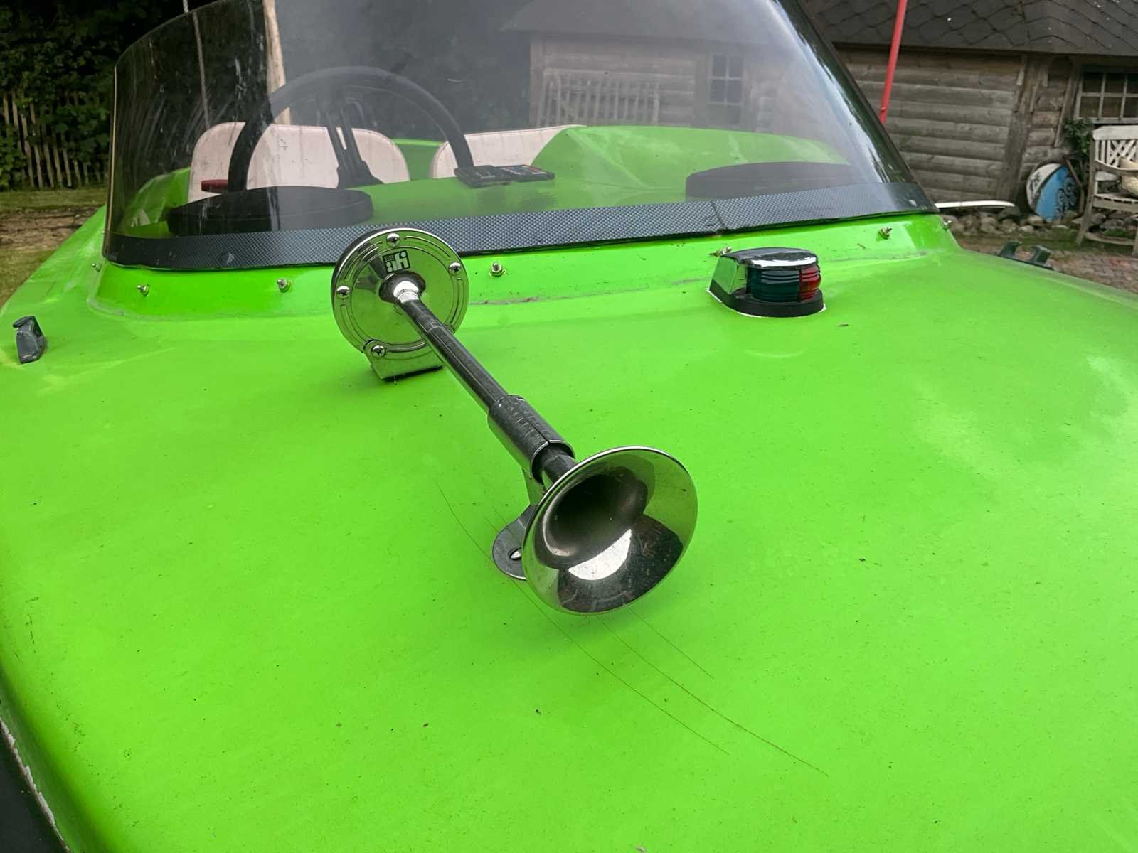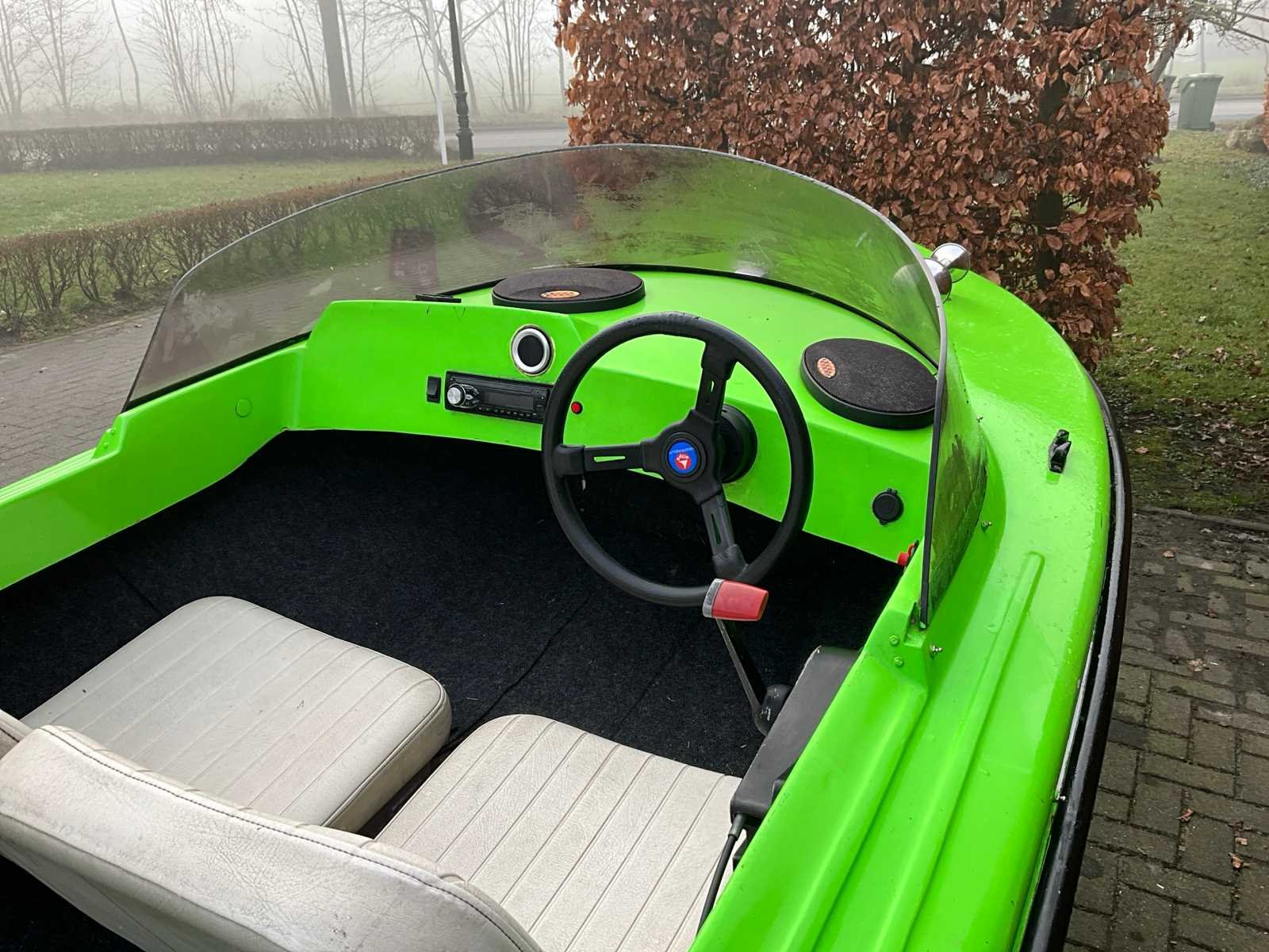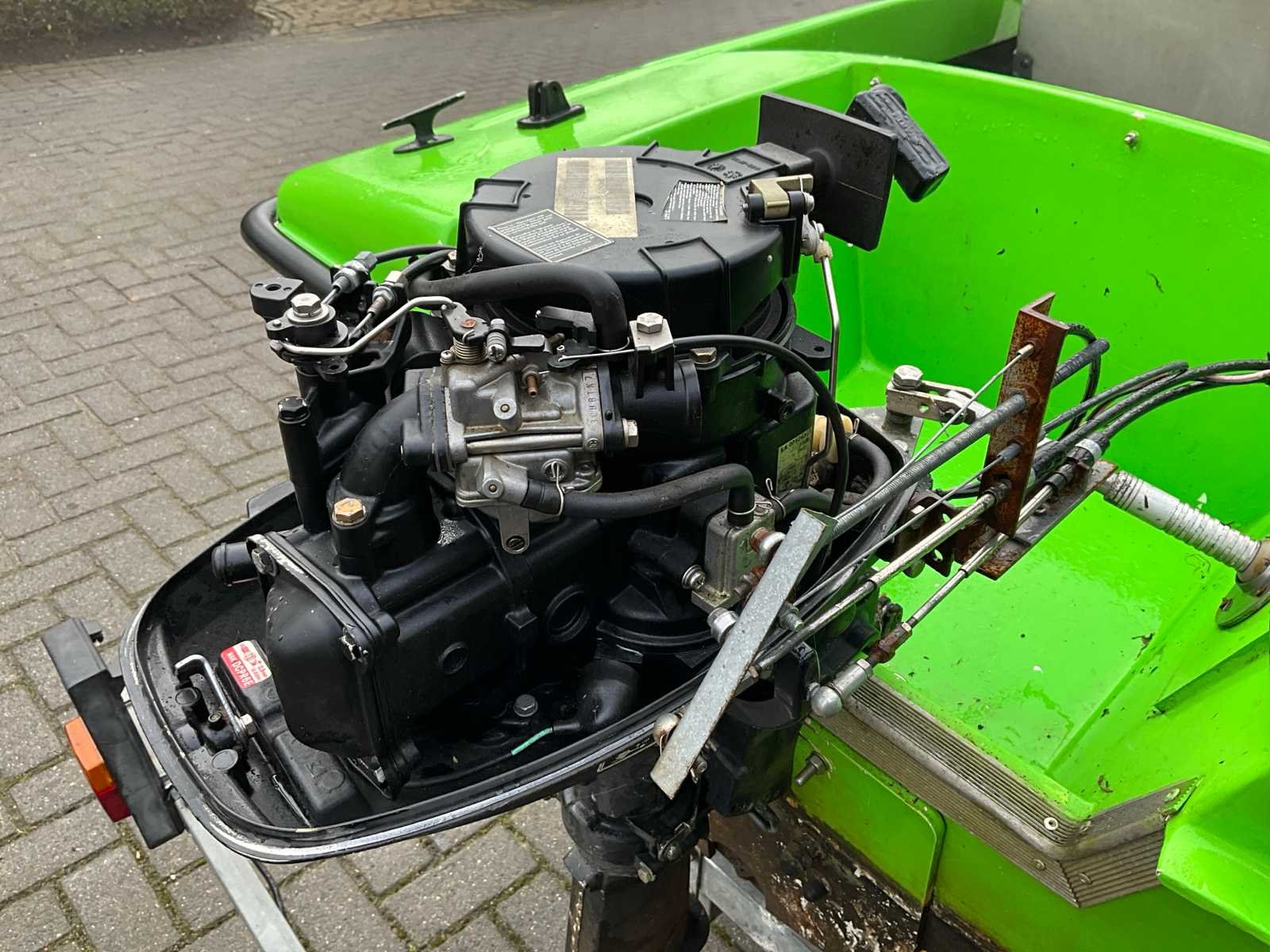 Stijlvolle groene boot met 2 zitplaatsen, ideaal voor recreatief varen of vissen; 5pk Mercury buitenboordmotor; met trailer: Degelijke boottrailer inbegrepen, klaar voor transport /vaarklaar; op maat gemaakt zeil voor bescherming tegen weersinvloeden; Werkende radio met 2 speakers voor muziek onderweg; Verlichting volledig functioneel, ideaal voor varen in schemer of ’s avonds; Accu inbegrepen, zodat alles direct klaar is voor gebruik; reddingsvest brandblusser vaarklaar Deze boot staat op een trailer en kan achter een auto gekoppeld worden. Na de sluiting van de veiling wordt er contact met u opgenomen om een afspraak te maken voor het afhalen. Merk: Speedboot Type: Pega boottrailer + 5 pk mercury Rompmateriaal: Polyester Brandstof: Benzine Breedte formaat: 1500m Type motor: 5 pk mercury Trailer merk + type: Pega ELG 4.5 450 kg Chassisnummer trailer: 09210 Lengte: 3850 Breedte: 1500
