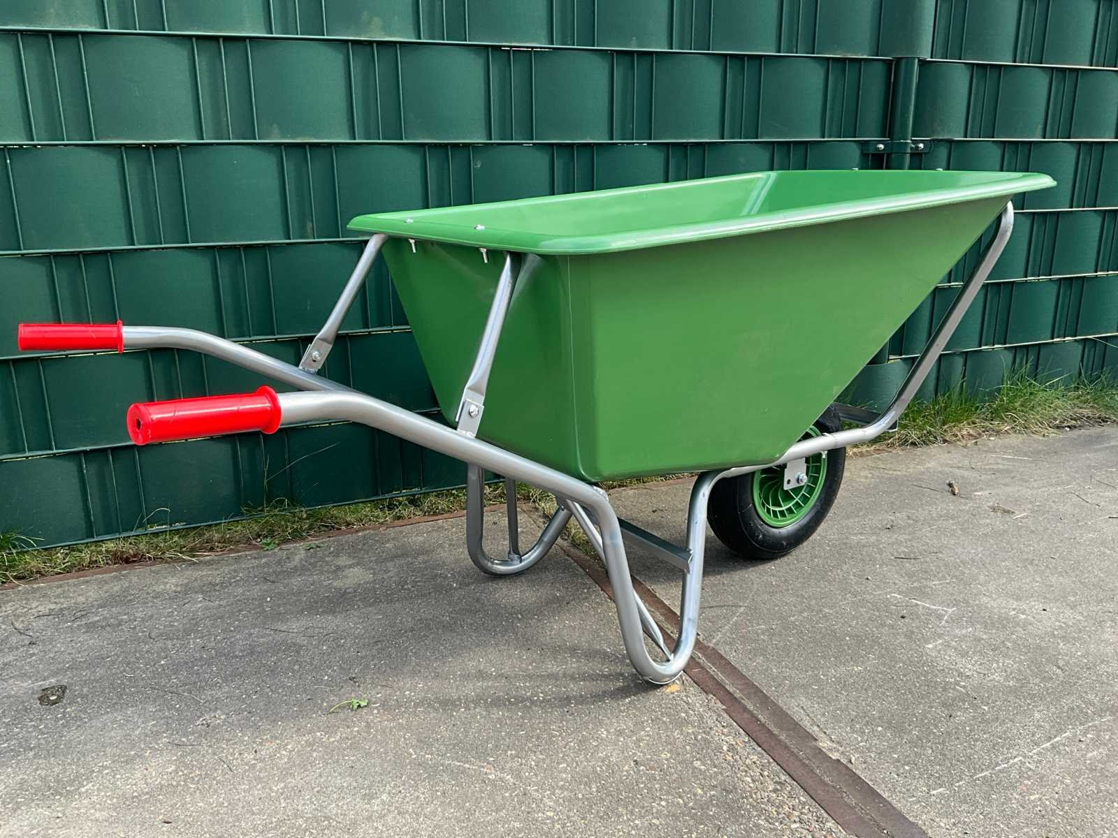 Kruiwagen met een kunststof bak met een inhoud van 160 liter. Het verzinkt onderstel is stevig uitgevoerd en de kruiwagen is voorzien van een velg met luchtband; 4.80/4.00-8; nylon tube; max inflation 2.0 bar maz snelheid 20 KM/H; Kenmerken kruiwagen 160 liter; Stevig verzinkt frame; Extra zwaar uitgevoerde kunststof bakinhoud bak 160 liter; Geleverd als bouwpakket zie laatste foto's Merk: HH Model: Poly 160 liter 1 wiel Kleur: Groen Gewicht: 18kg Lengte: 165cm Breedte: 71cm Hoogte: 80cm Materiaal: Kunststof / metaal