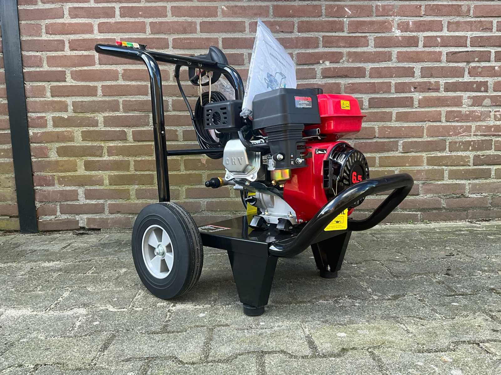 Hogedrukreiniger met een Benzine motor; nominale druk 2200psi; toegestane druk 2500psi; nominale stroom 8,5lpm; maximale stroomsnelheid 9lpm; vermogen 6,5 pk; nominale snelheid 3400 tpm; Merk: HH Type: 170B Bouwjaar: 2025 Totale afmeting L: 1000mm Totale afmeting Breedte: 500mm Totale afmeting Hoogte: 750mm