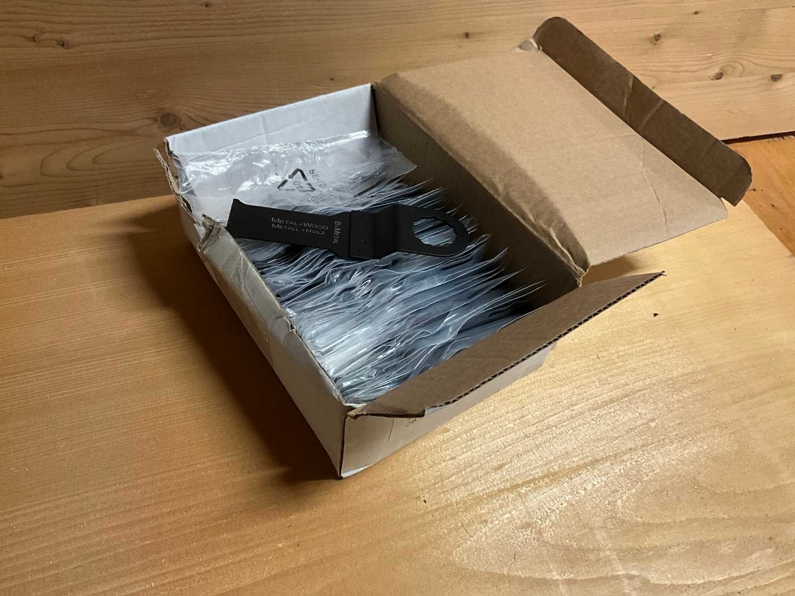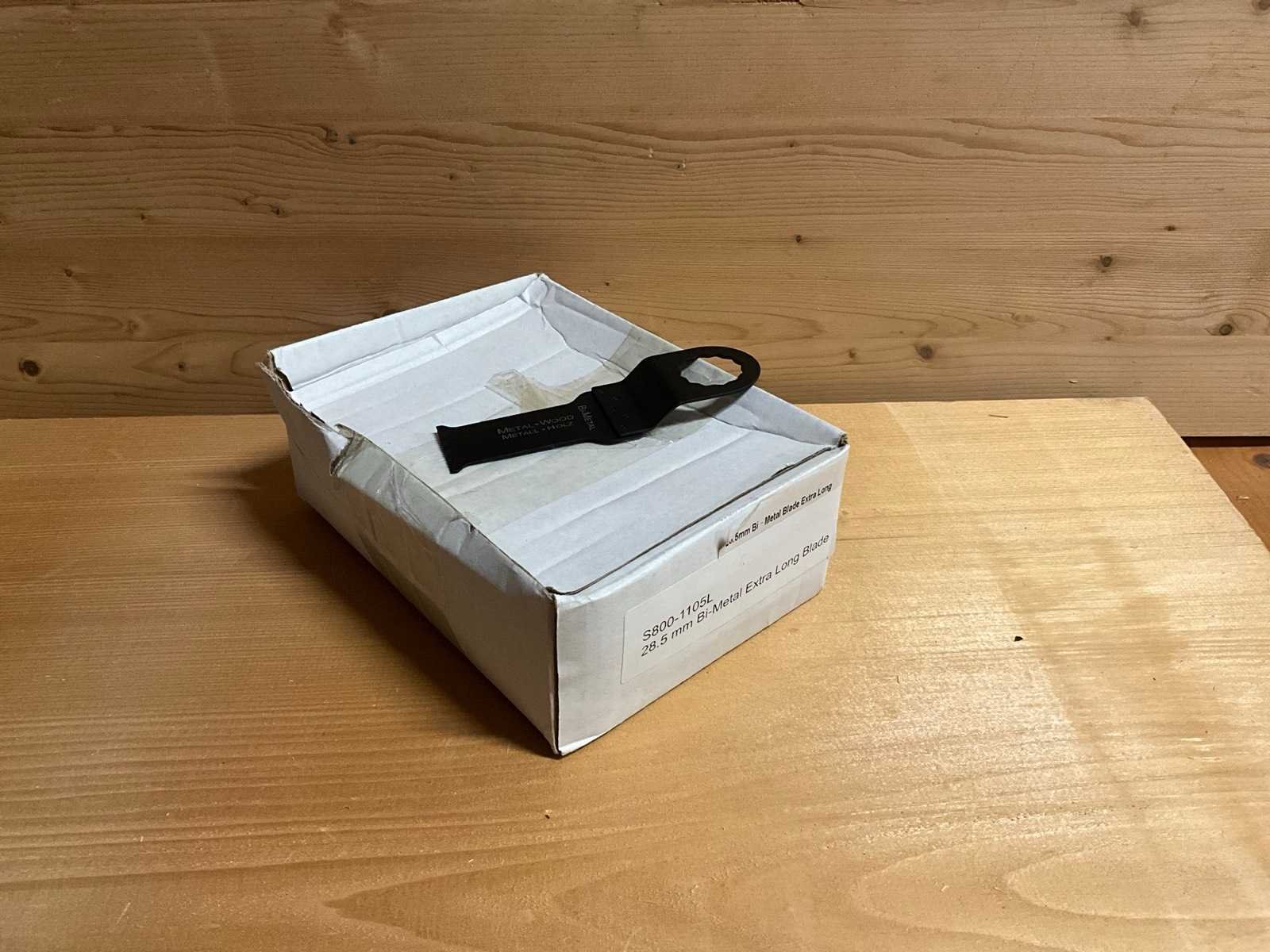V.v. Supercut fitting; karton doos /verpakking; doos a 50 stuks; passend op fein Merk: Ostar Model: S800-1105L Type: 28,5mm bi-metal extra Long Blade Supercut fit Lengte: 110 Breedte: 29 Materiaal: Bi-metaal GS Code: 8202391000