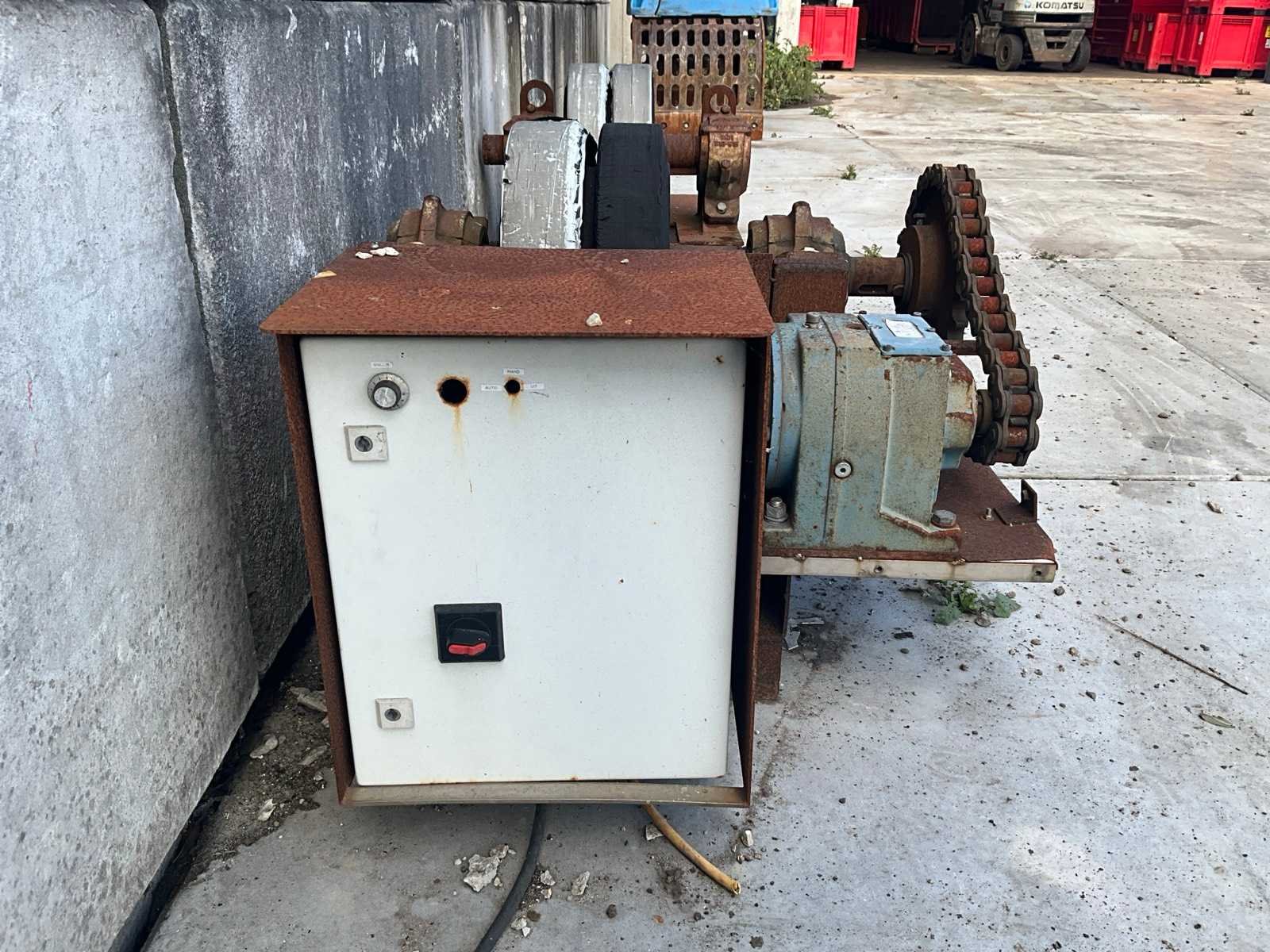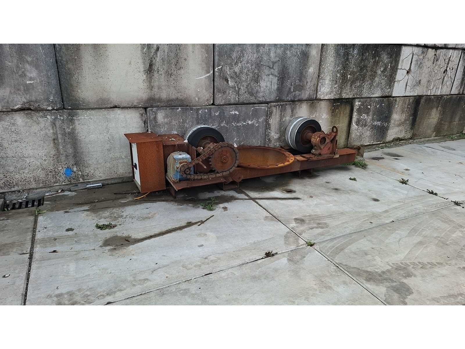 Werking onbekend. Heeft wat aandacht nodig met de elektra aansluiting. Dit kavel bestaat uit 2 onderdelen, afmeting van onderdeel 1 met motor: LxBxH 3350mm x 1000mm x 750mm; afmeting omderdeel 2 zonder motor: LxBxH 2400mm x 600mm x 750mm Type: Lasmanipulator