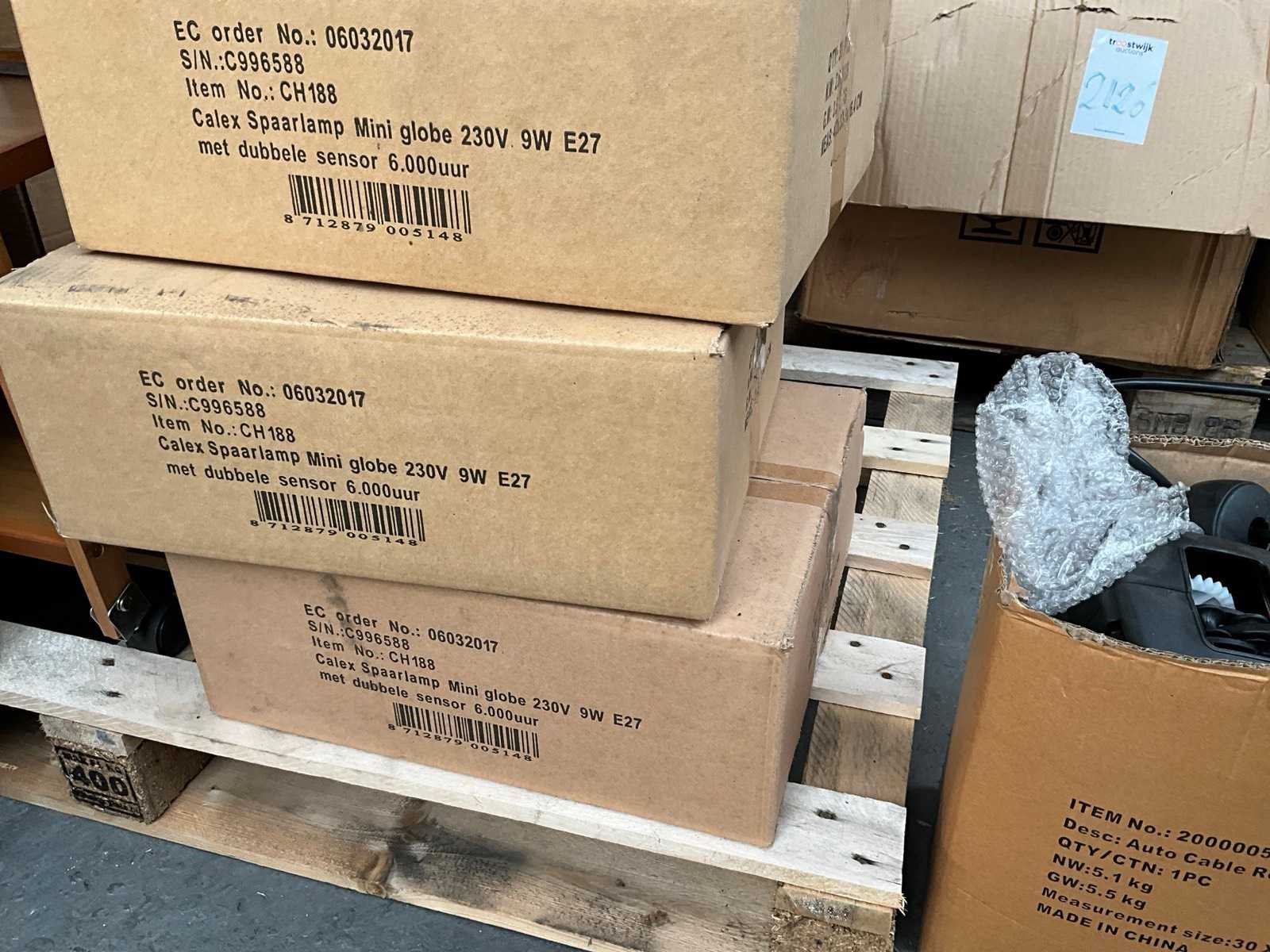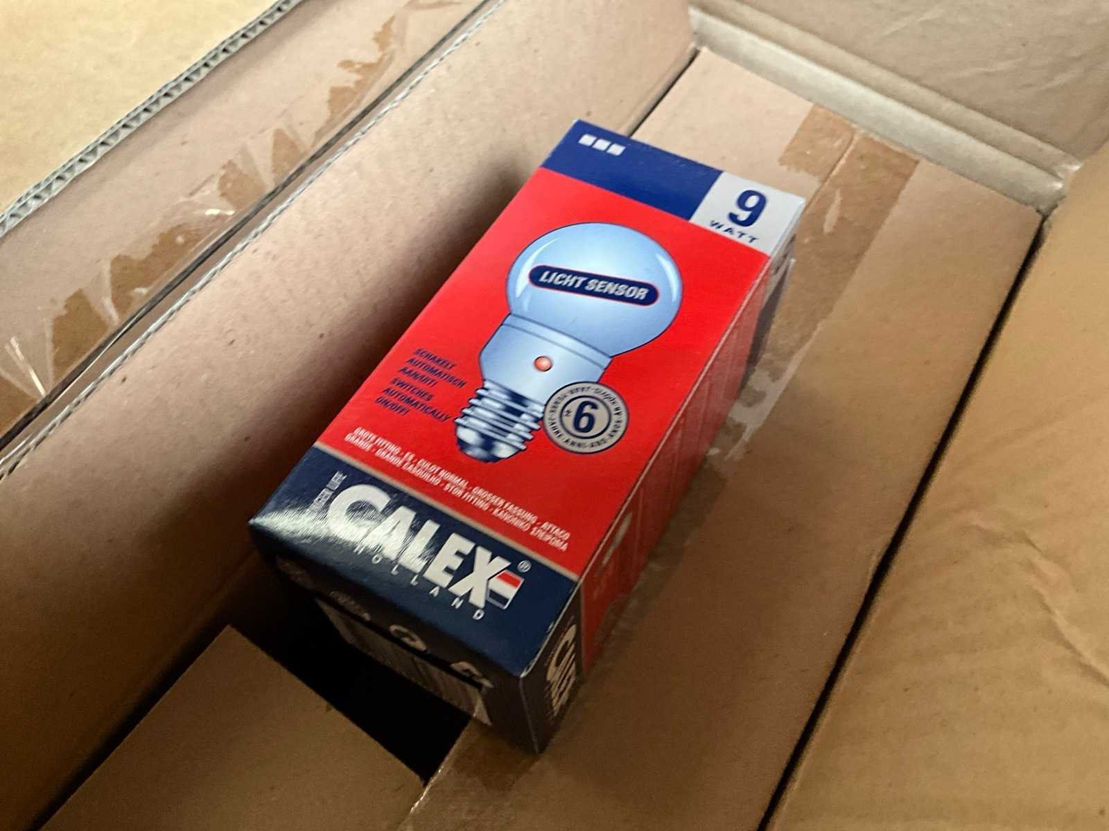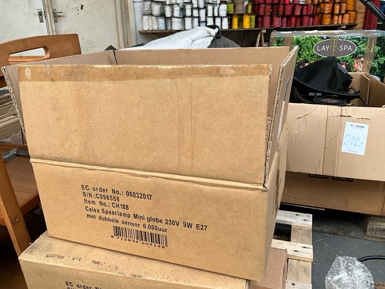 Verpakt in 3 grote dozen, circa 90 stuks E27 Fitting, met sensor Merk: Calex Model: Mini globe Product type: Spaarlamp