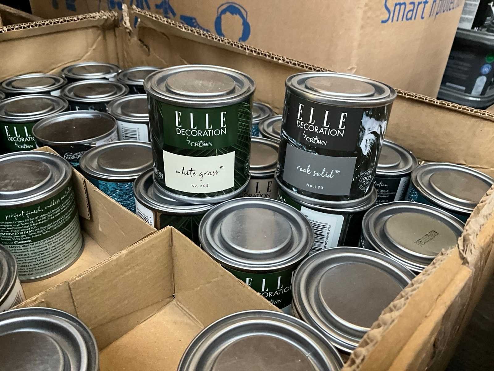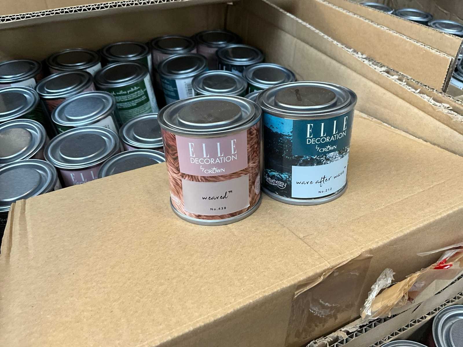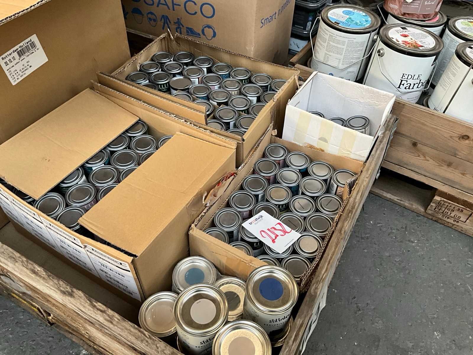 Pallet niet bij kavel inbegrepen; ongeopend met seal; nieuw; Diverse soorten, kleuren en maten verf;