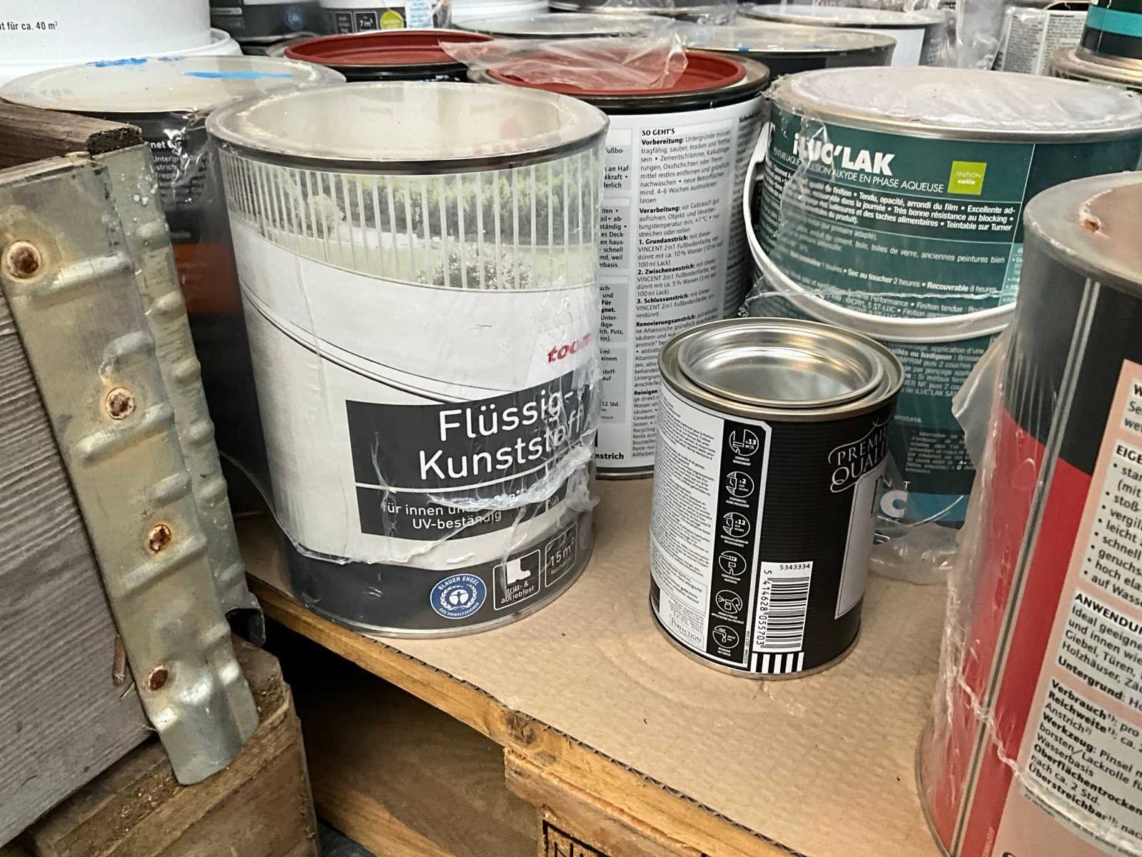 Pallet niet bij kavel inbegrepen; ongeopend met seal; nieuw; Diverse soorten, kleuren en maten verf;