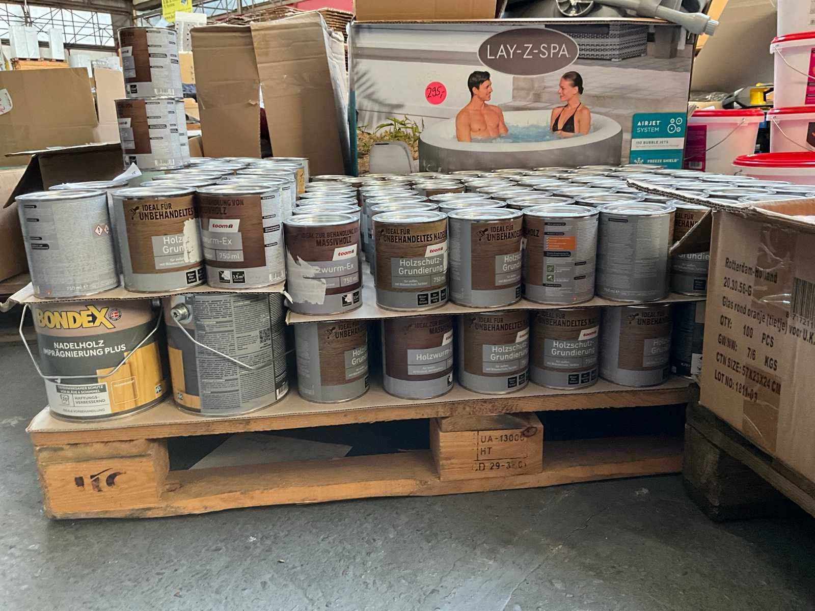Pallet niet bij kavel inbegrepen; ongeopend met seal; nieuw; Diverse soorten, kleuren en maten verf;
