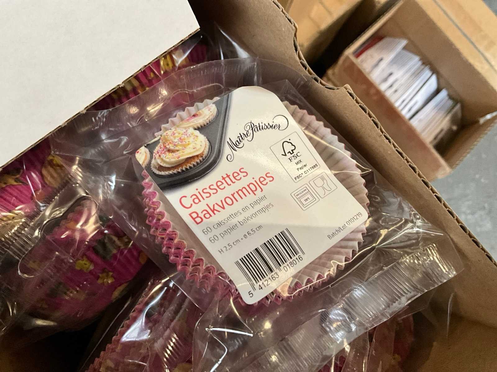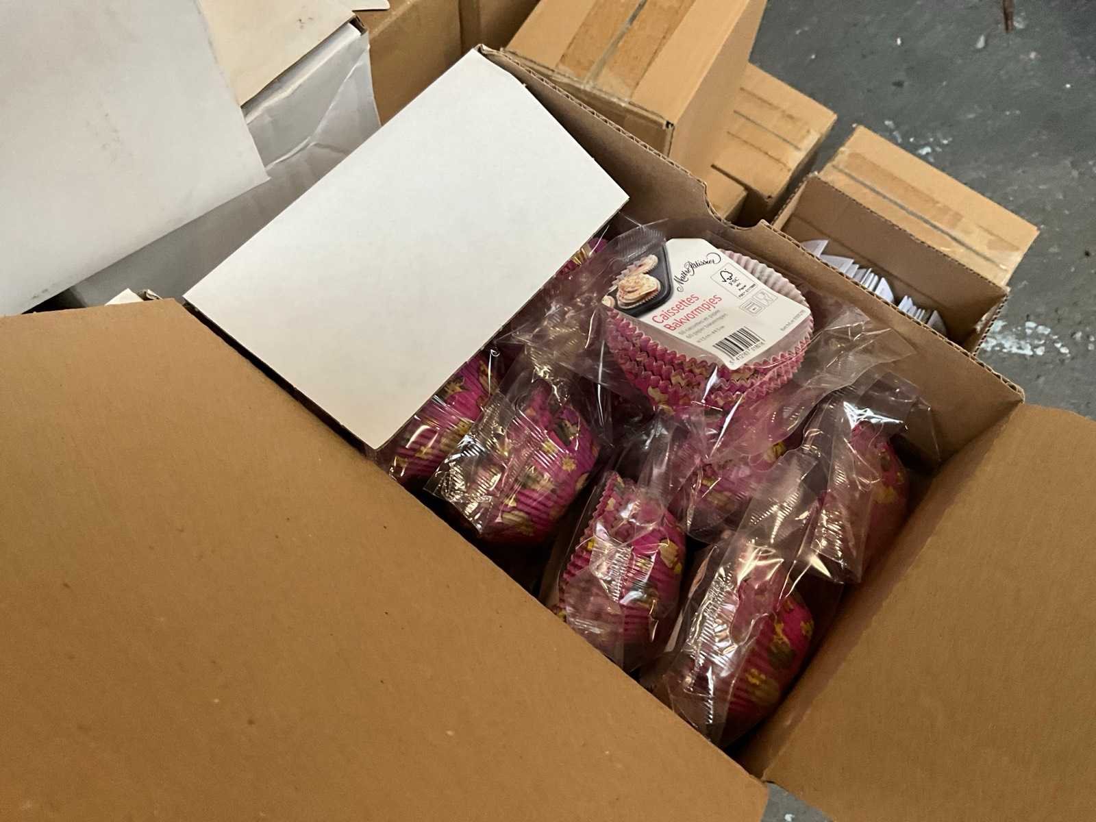 Diverse dozen met cup-cakevormen en dekseldoekjes