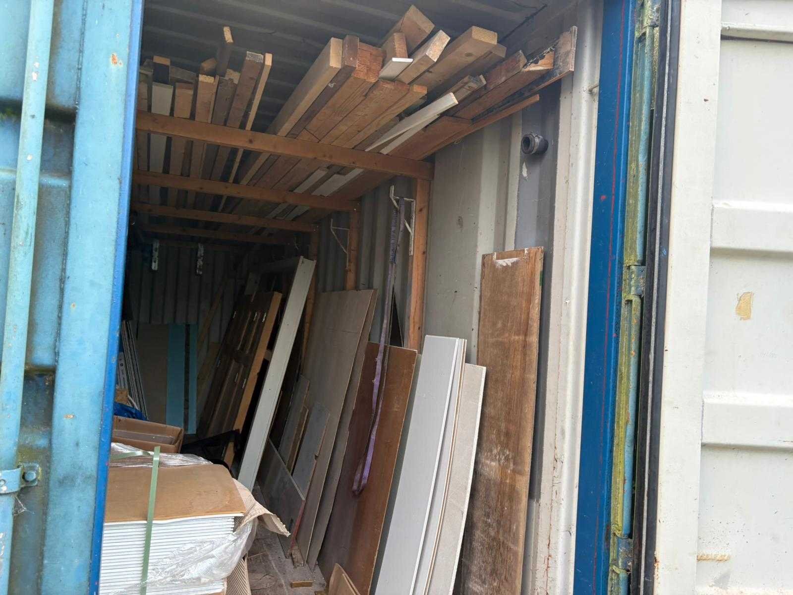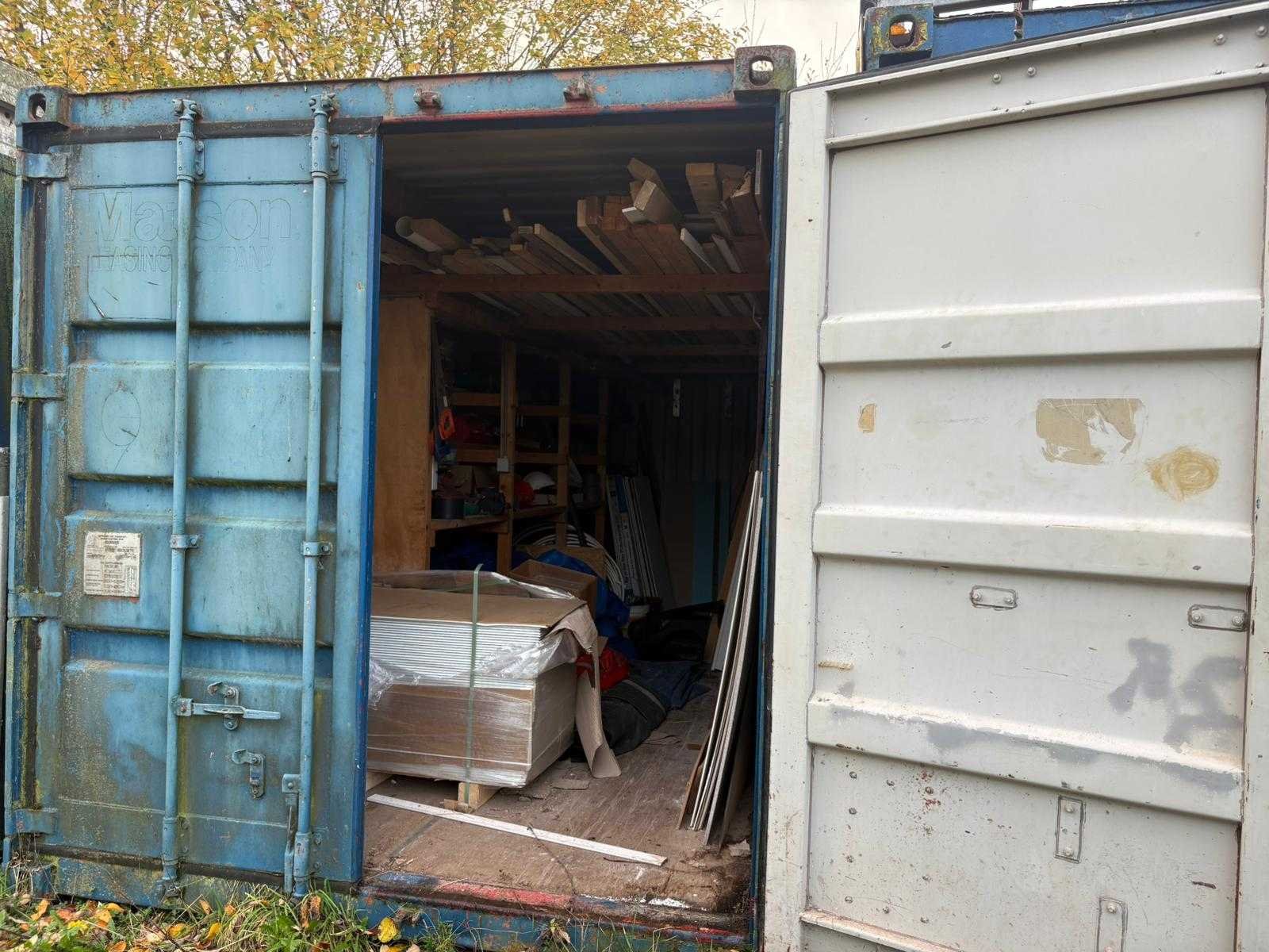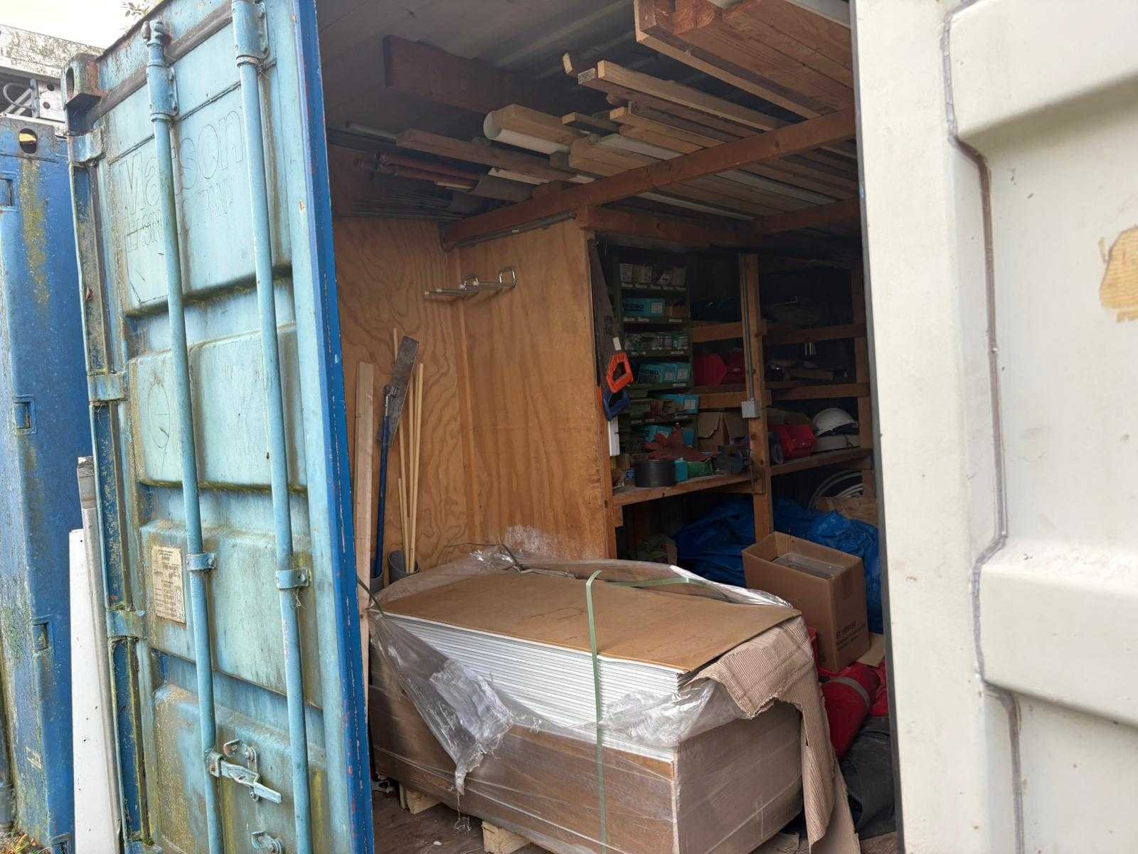 Container inclusief inhoud en stelling; Bouwplaatsopruiming; voorzien van pak agnes on step plafondplaten schoeven houtvoorraad: etc. etc i.v.m. einde bouwproject; alles wat in de container aanwezig is Merk: 20ft zeecontainer Type: Inclusief inhoud Opslagcontainer: true Totale afmeting L: 6080mm Totale afmeting Breedte: 2440mm Totale afmeting Hoogte: 2590mm