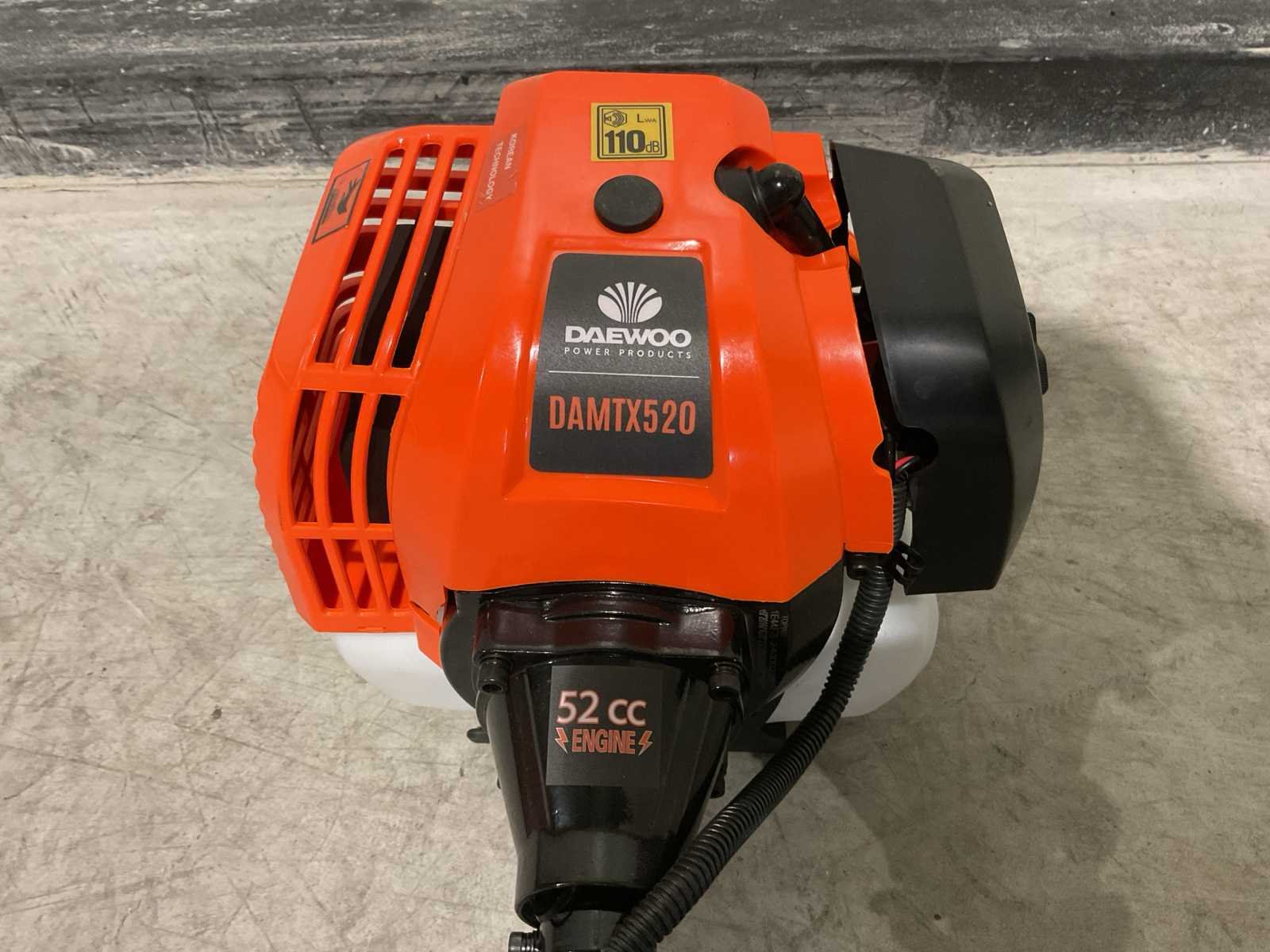 Voorzien van nylon lijn; heggen trimmer; ketting zaag; trim blad; Ongebruikt in doos (Afmeting transport verpakking 325x1095x305 mm lxbxh, gewicht 15 kg) Merk: Daewoo Type: DAMTX520 Bouwjaar: 2025 Brandstofmotor aangedreven: true Brandstof: Benzine Motorvermogen (kW): 1.45kW Eigen gewicht: 14.7kg Totale afmeting L: 325mm Totale afmeting Breedte: 1095mm Totale afmeting Hoogte: 305mm