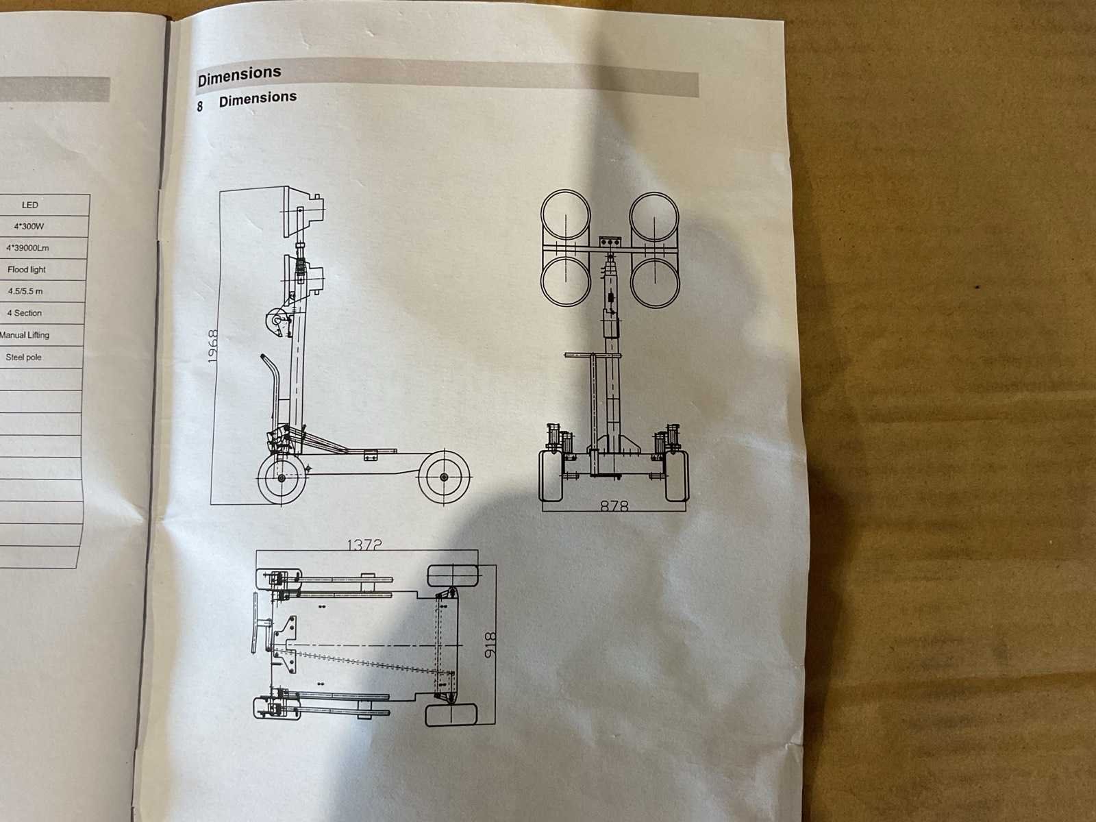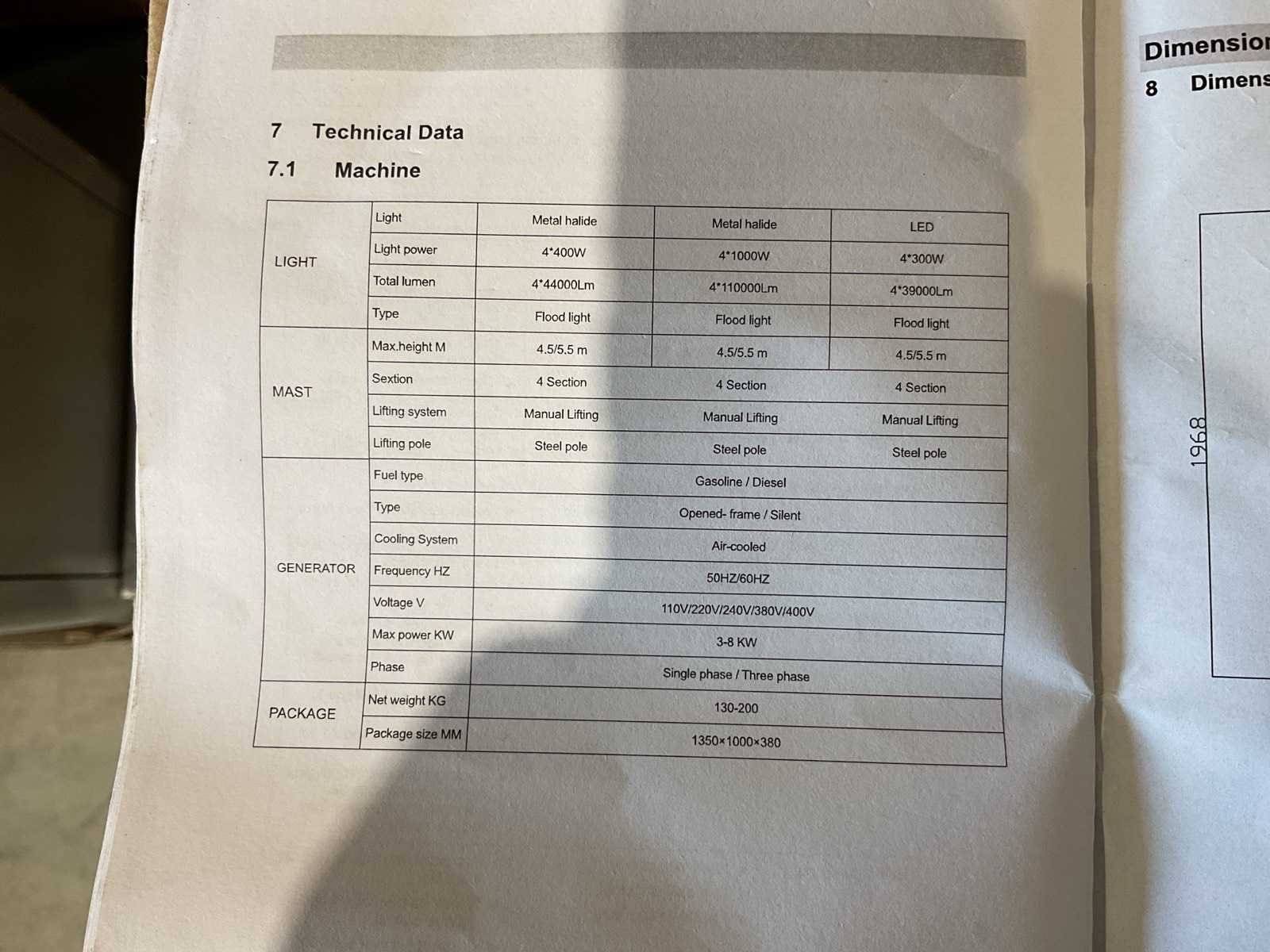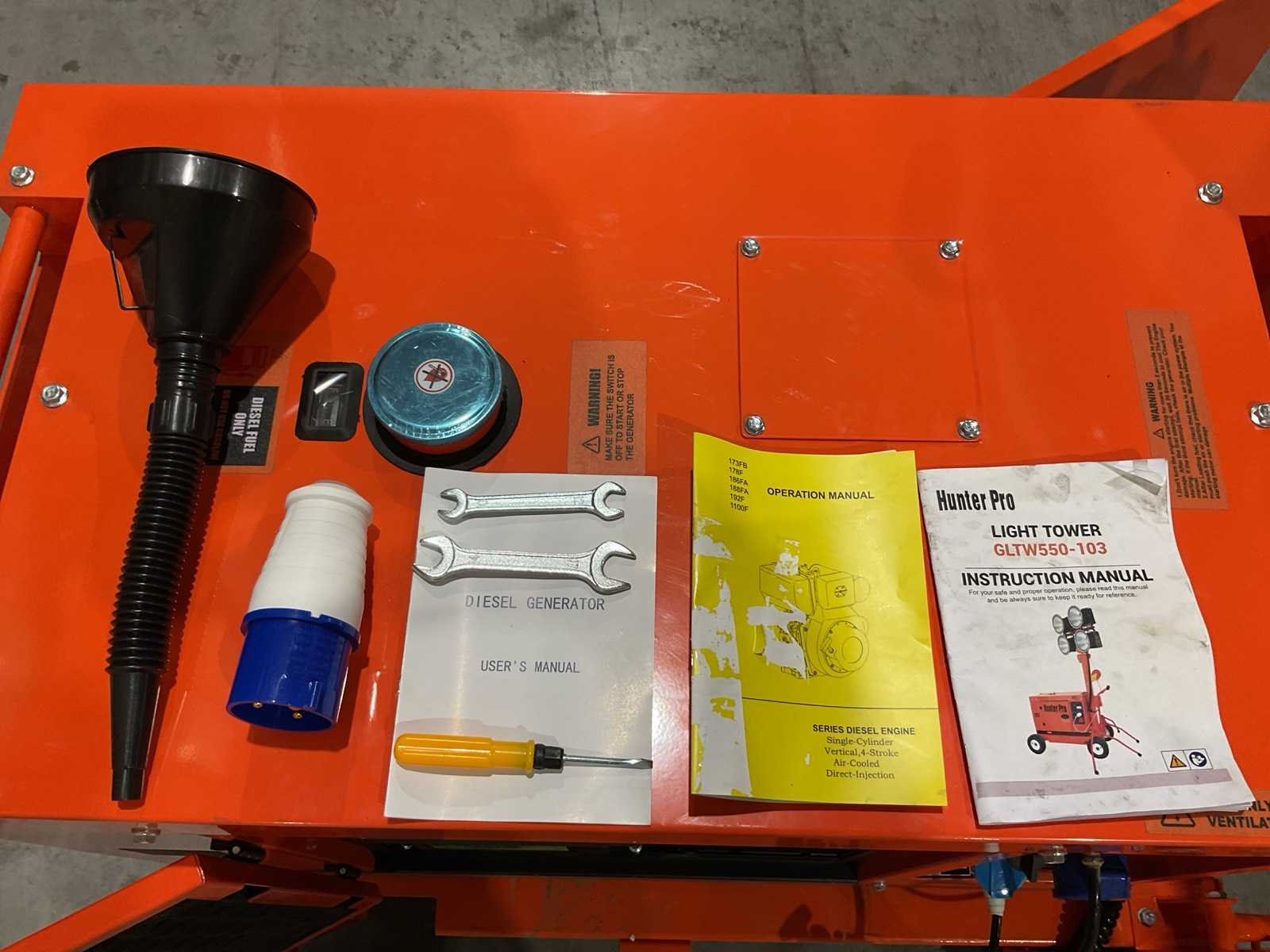 1 cilinder diesel aggregaat; 4 lampen; LED; ongebruikt Merk: Hunter Pro Type: GLTW550-130 Bouwjaar: 2025 LED: true Eigen gewicht: 200kg Totale afmeting L: 1350mm Totale afmeting Breedte: 1000mm Totale afmeting Hoogte: 380mm