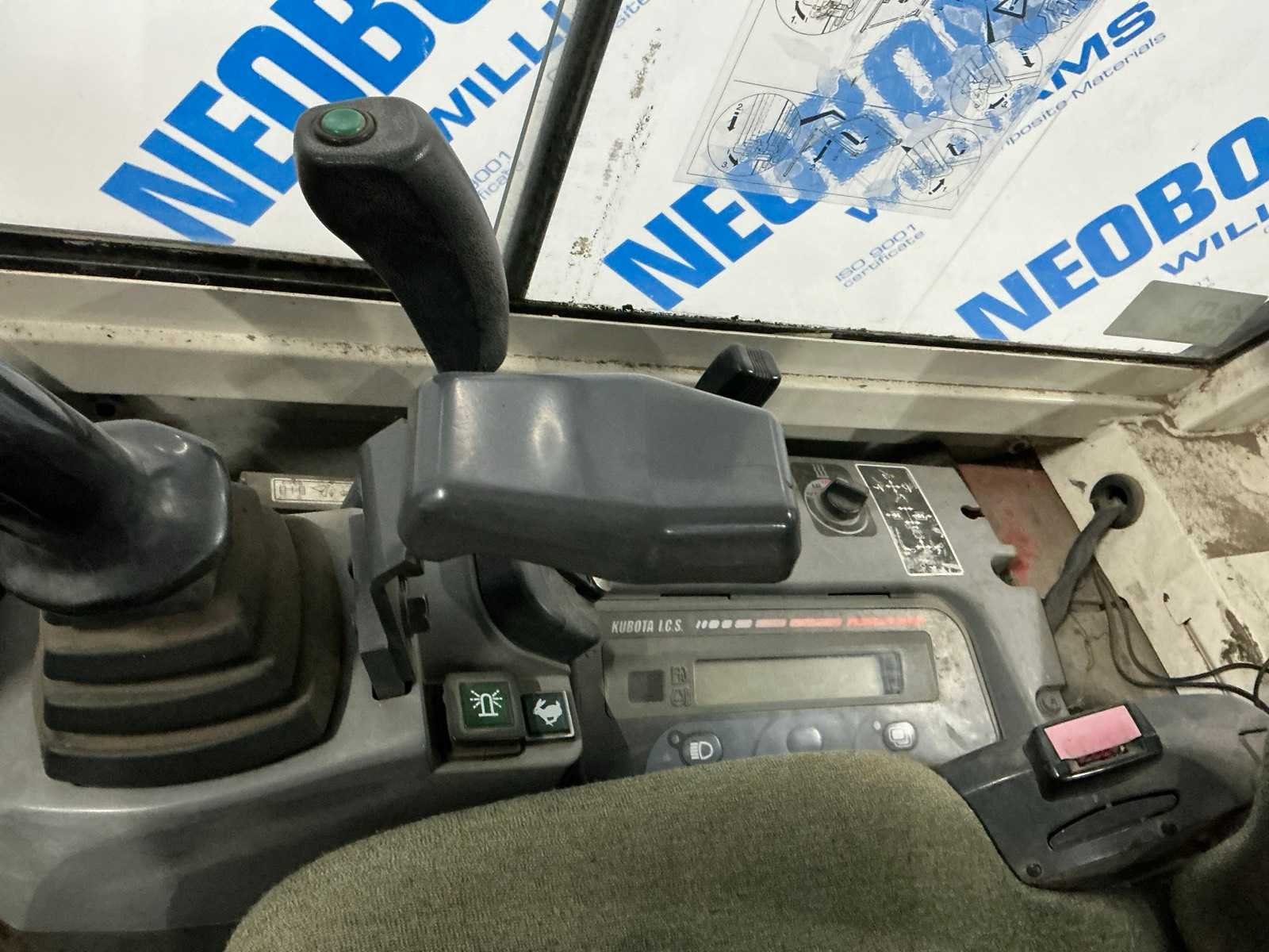 Merk: Kubota Type: K4 41-3v Bouwjaar: 2009 Serienummer: 80283 Merk motor: Kubota Motorvermogen (kW): 11.8kW Aantal cilinders: 2 Brandstof: Diesel Gieklengte: 1750mm Max. werkbereik: 3100mm Max. graafdiepte: 1900mm Inclusief graafbak: 3 Graafbak afm. l: 1000mm Graafbak afm. b: 300mm Graafbak afm. h: 300mm Rups breedte: 230mm Afgelezen urenstand: 2690 Eigen gewicht: 1630kg Totale afmeting L: 3000mm Totale afmeting Breedte: 1040mm Totale afmeting Hoogte: 2250mm